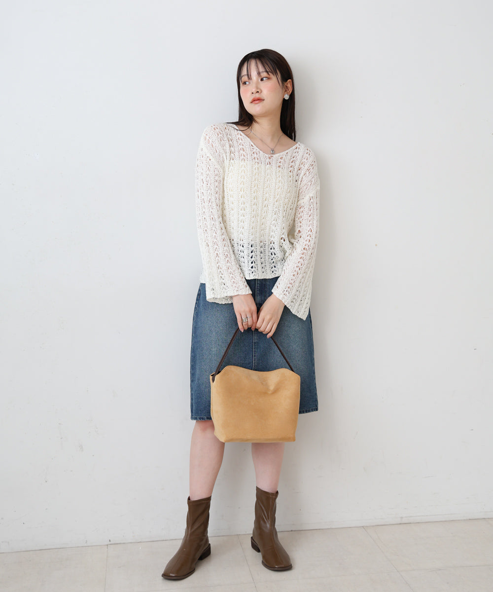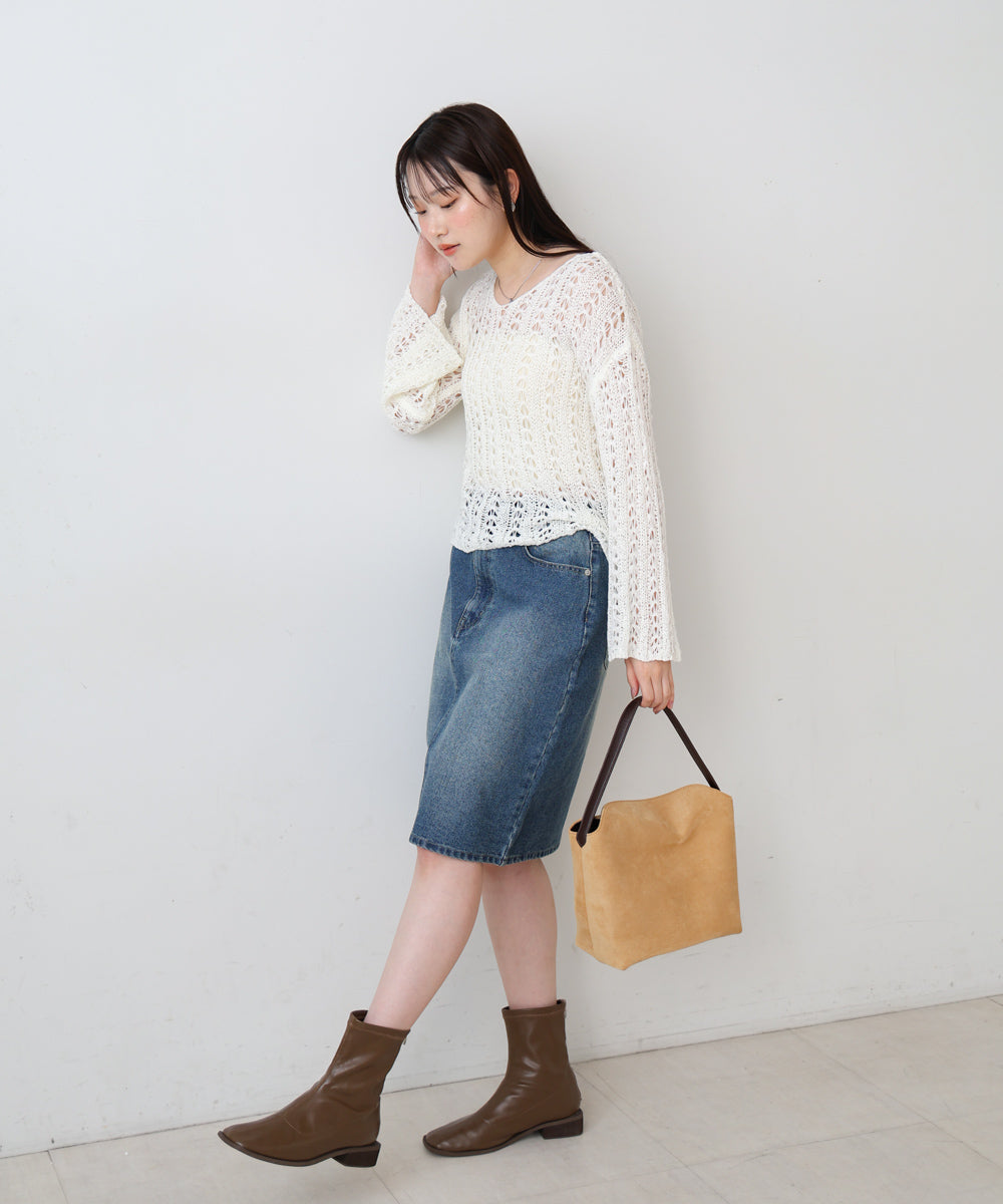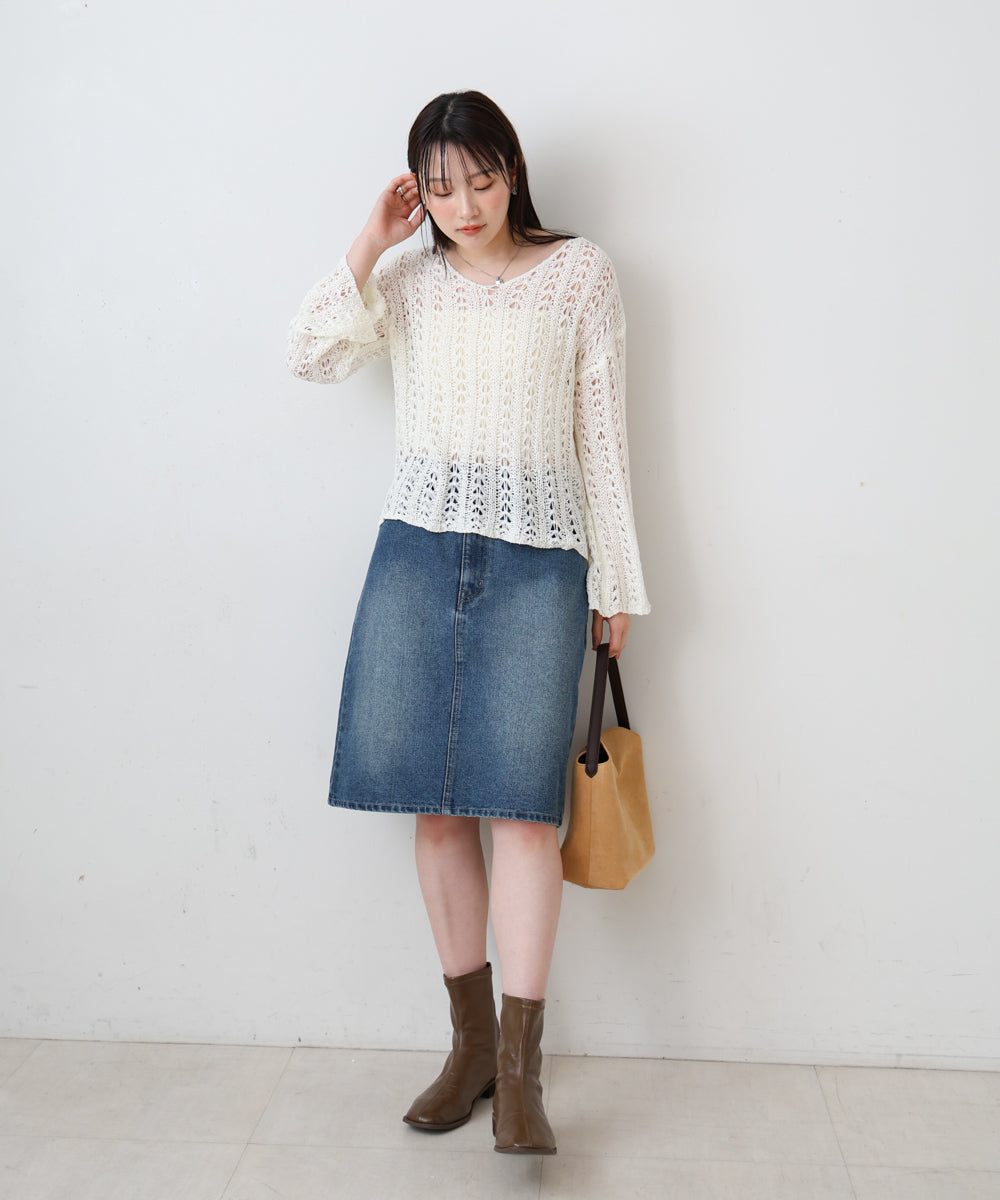ストレッチ性のきいているニットトップスになっているので着心地よくご着用いただけます。