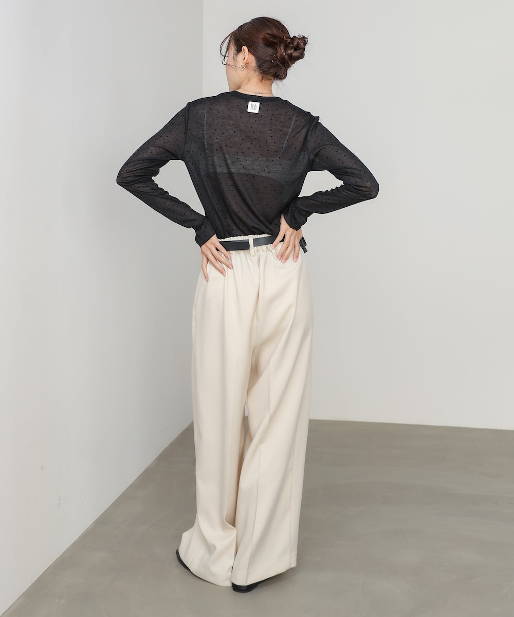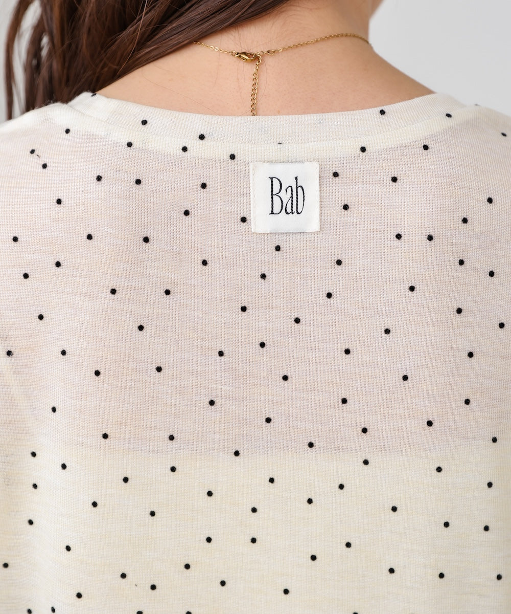 トレンドの繊細なドット柄とシアー感が女性らしい、シアードットフリルカットソー。袖口にあしらったフリルがさりげないアクセントになり、甘さを抑えた大人フェミニンな印象に。バックスタイルにはBabの新しいロゴを施し、後ろ姿まで抜かりなく仕上げた一枚です。