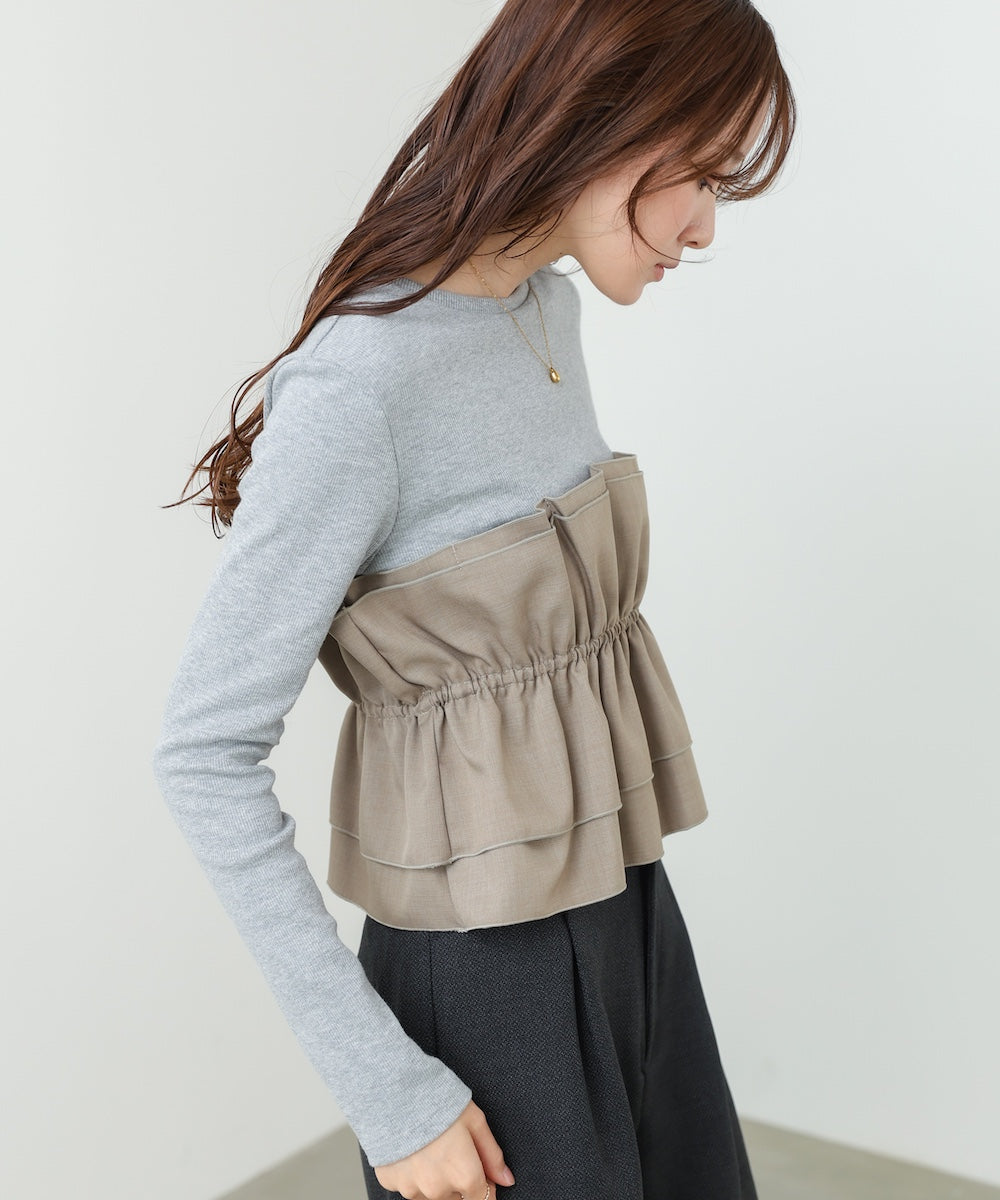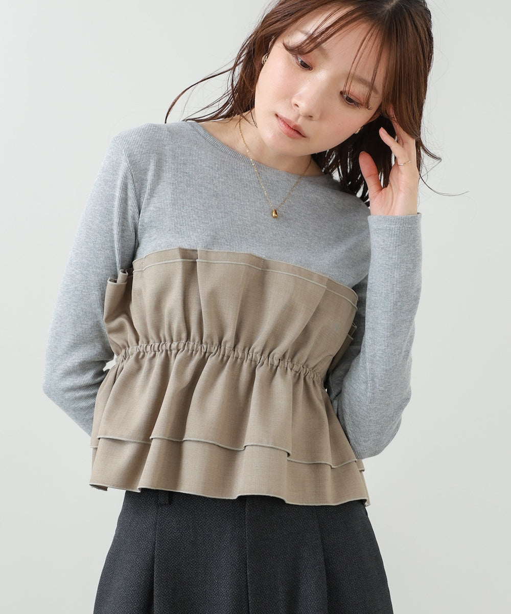 フリル切替リブニットトップス