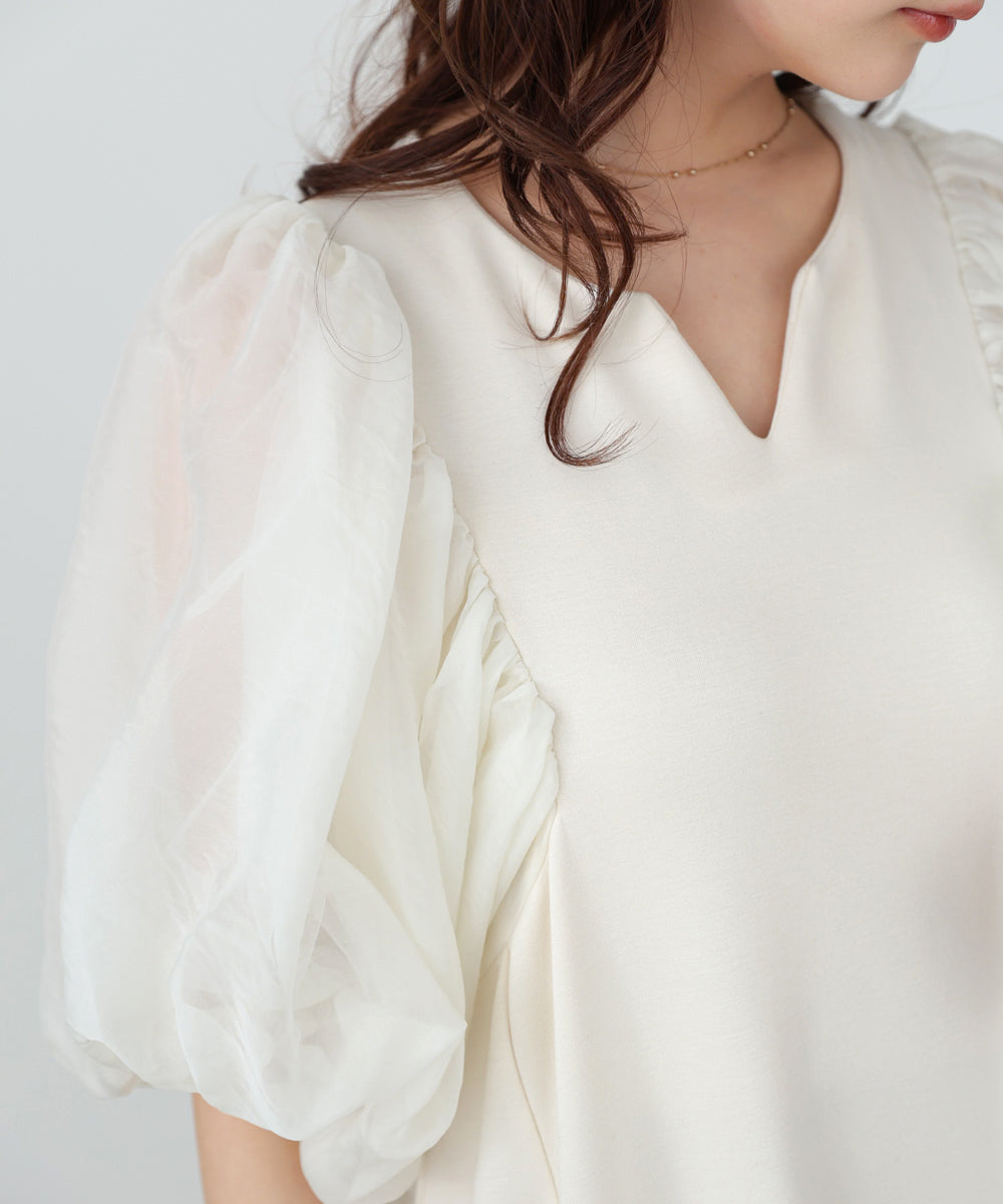 レース袖ボリュームブラウス