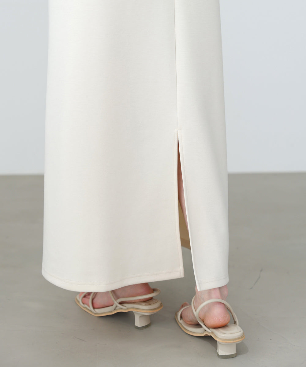 ハリ感のあるポンチ素材を使用。伸縮性のある素材使いと体のラインを拾わないゆったりとしたシルエットで着心地は抜群です。シワになりにくく、お洗濯も可能なのでデイリー使いにおすすめです。