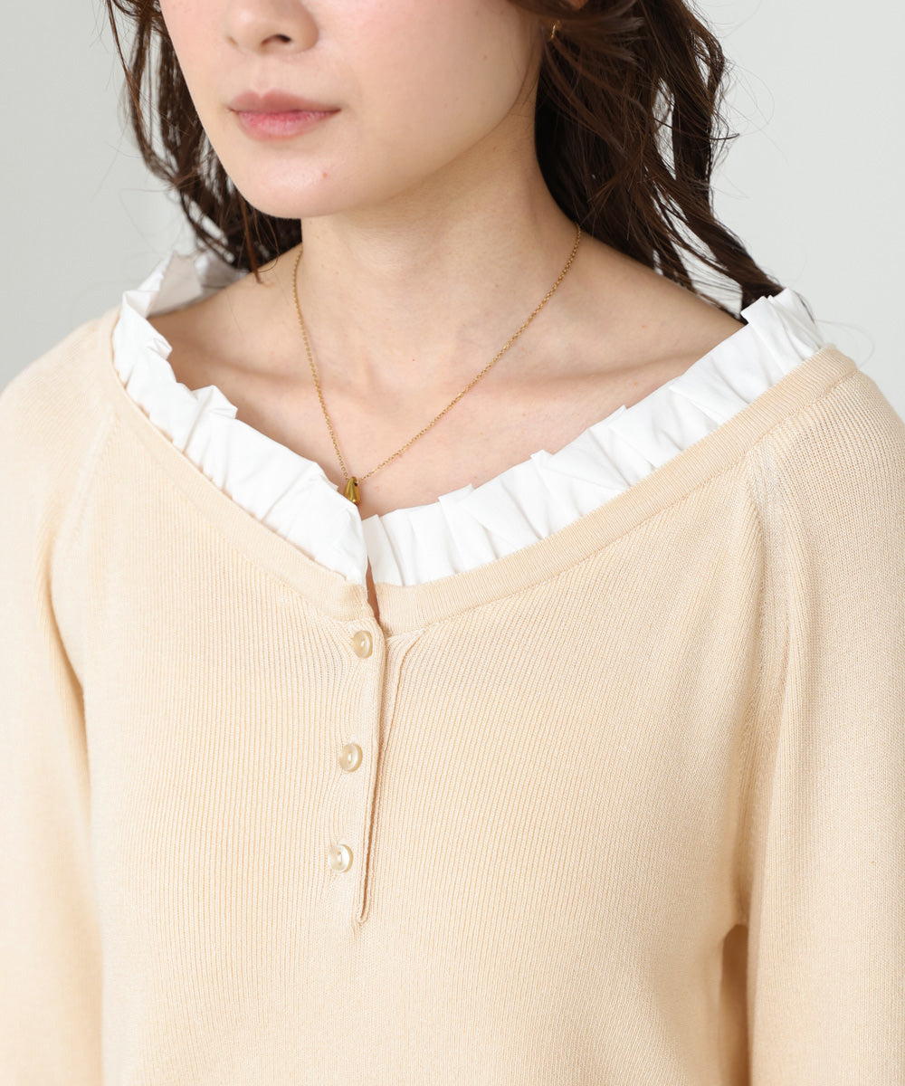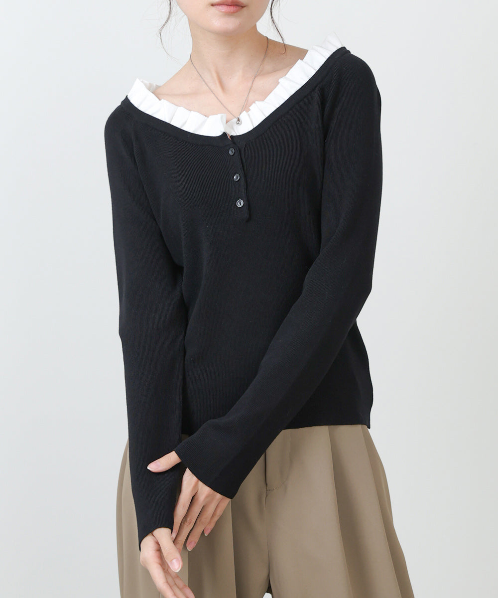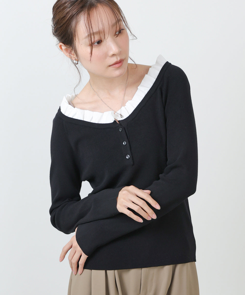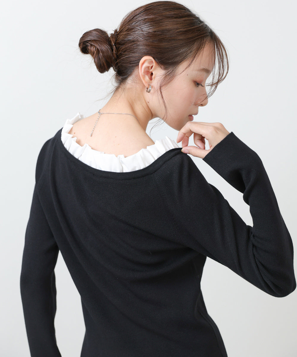衿フリルニットトップス