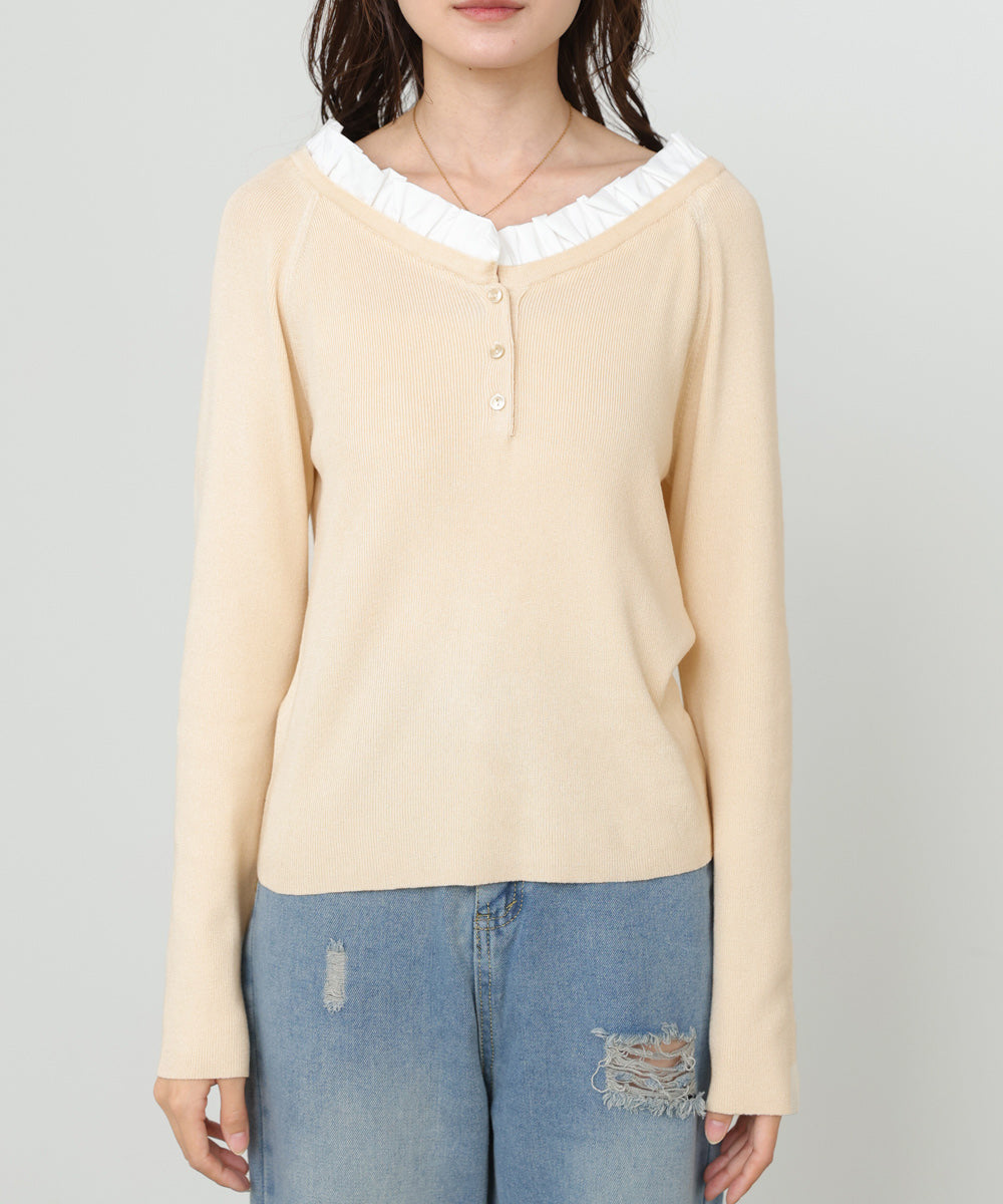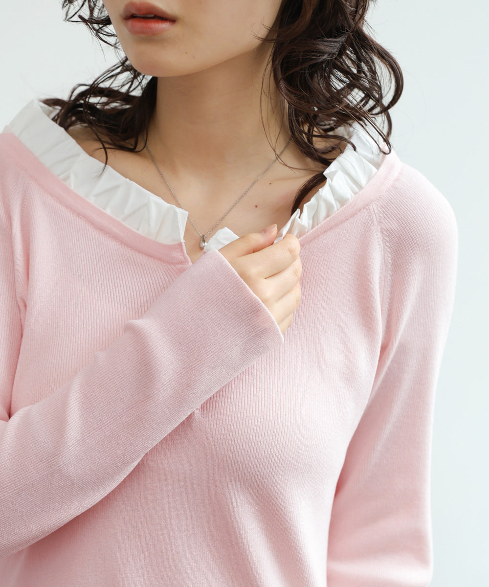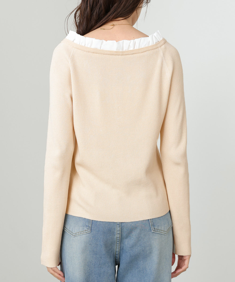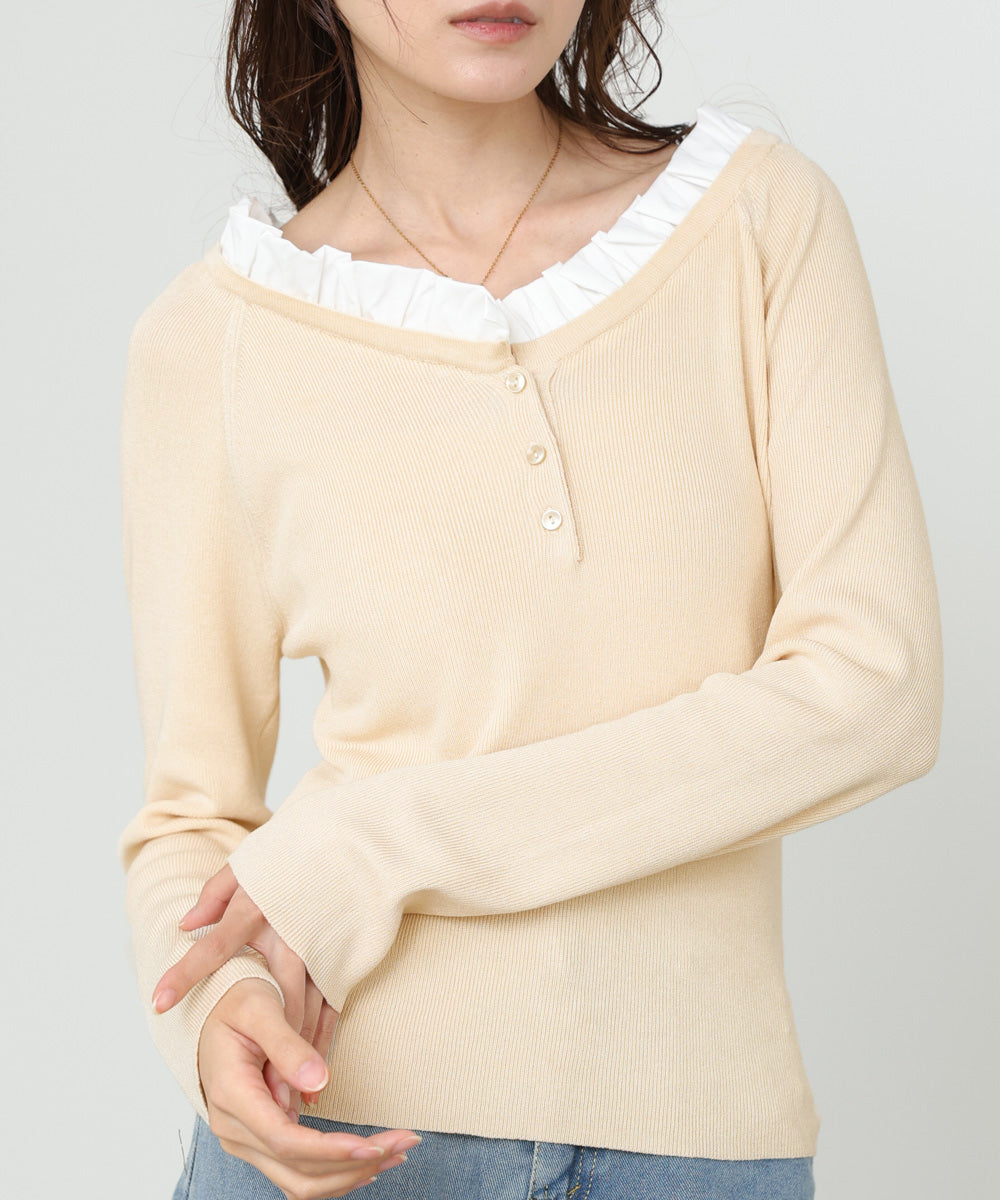 衿フリルニットトップス