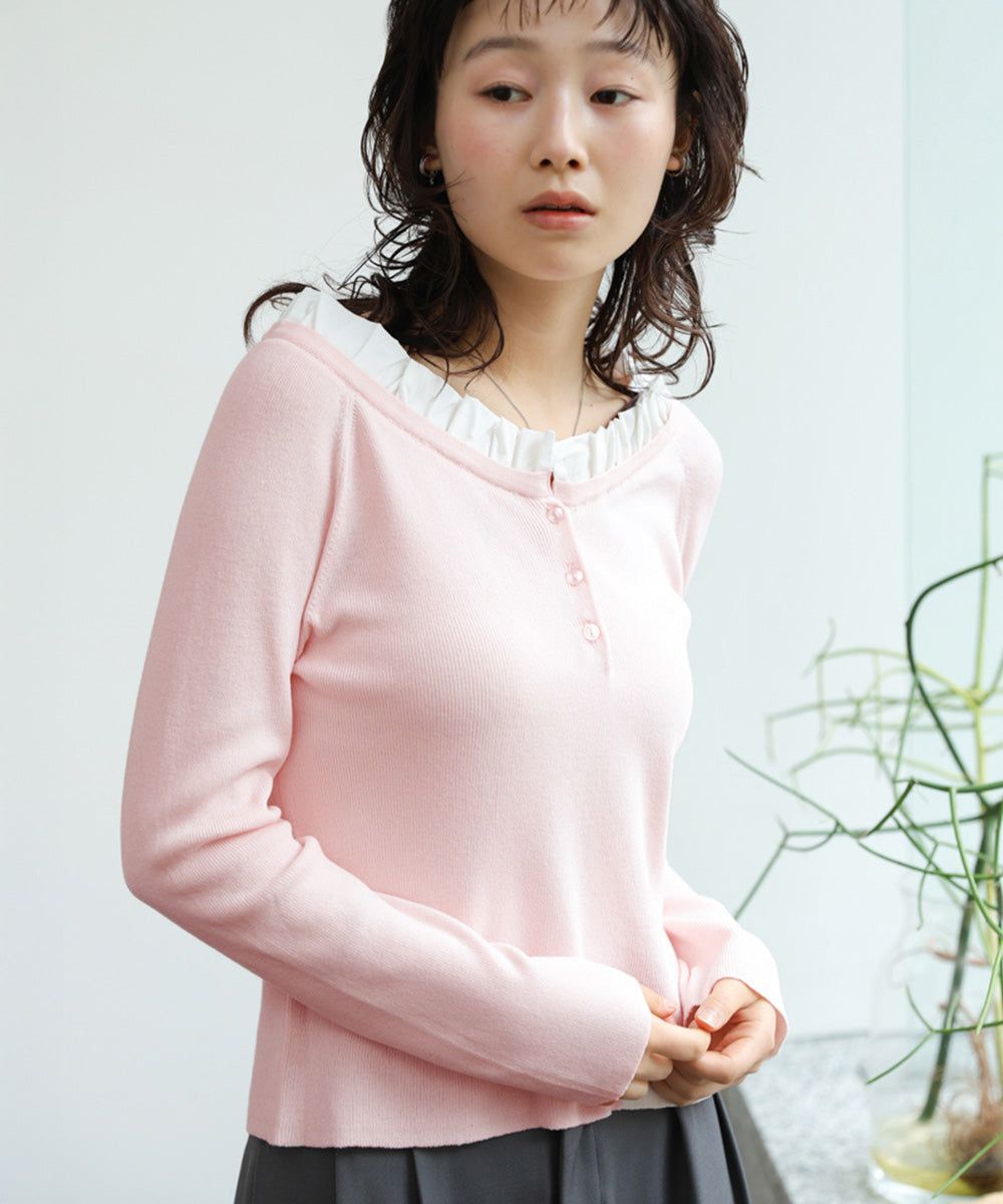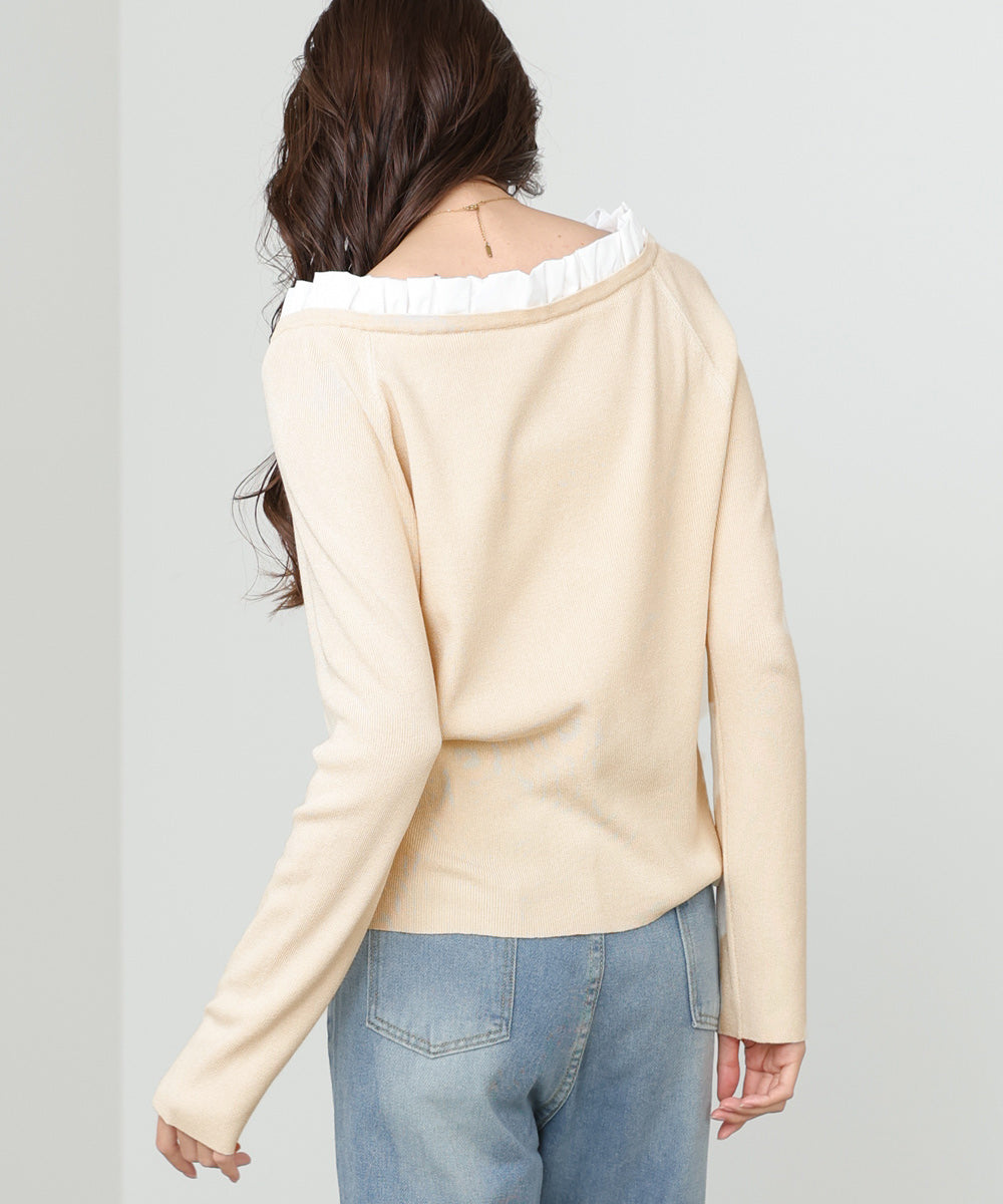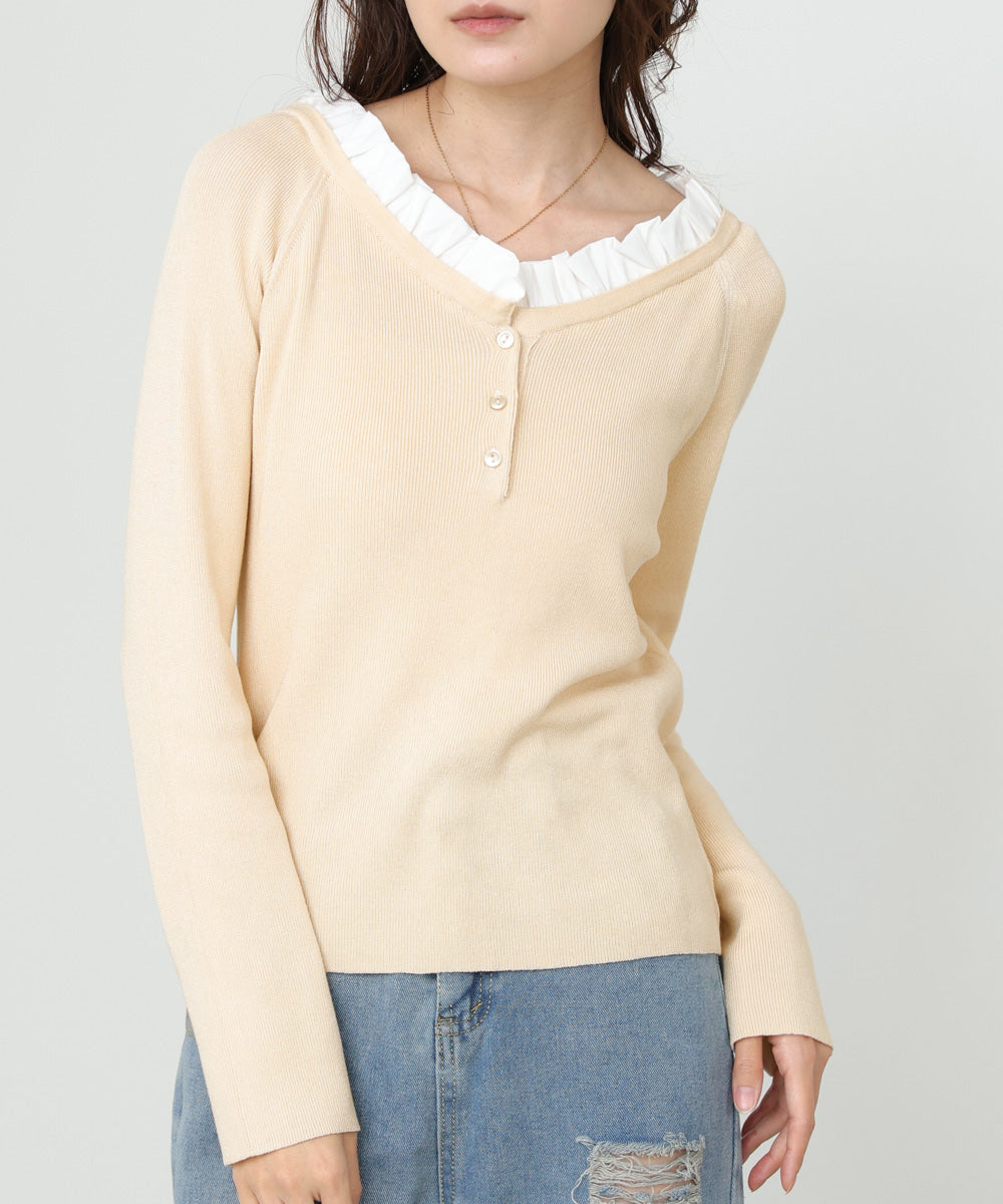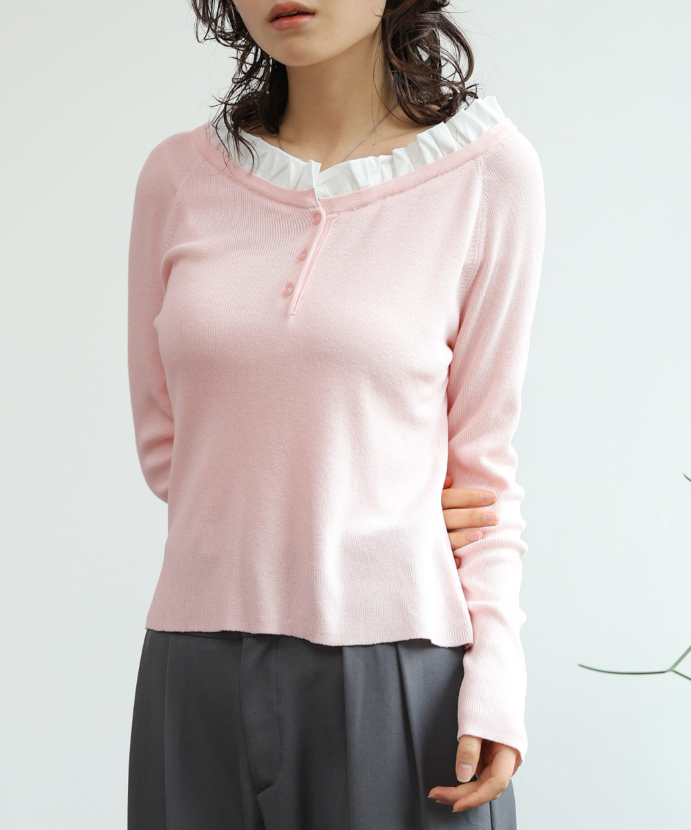 衿フリルニットトップス
