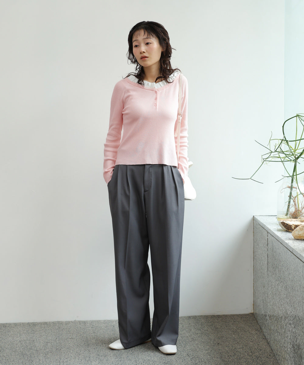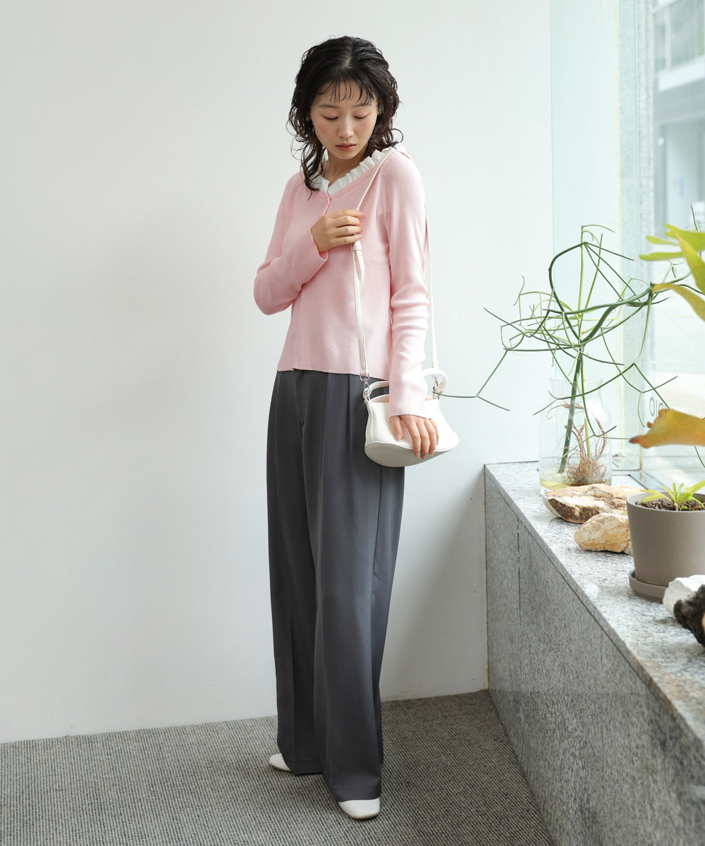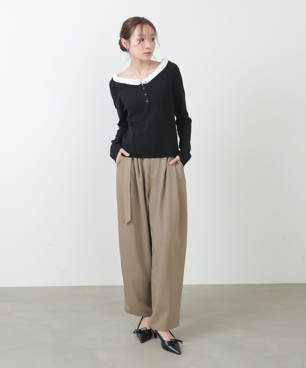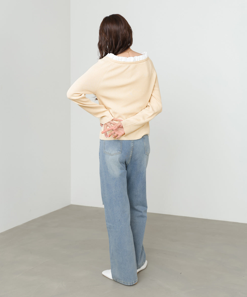 衿フリルニットトップス