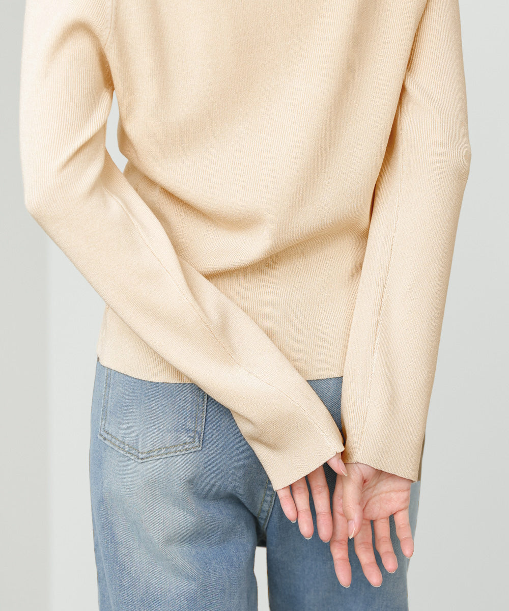 【選べるネック】シアー使いリブニットトップス