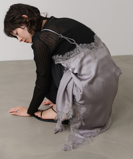 【選べるサイズ展開】レース切り替えフレアキャミワンピース