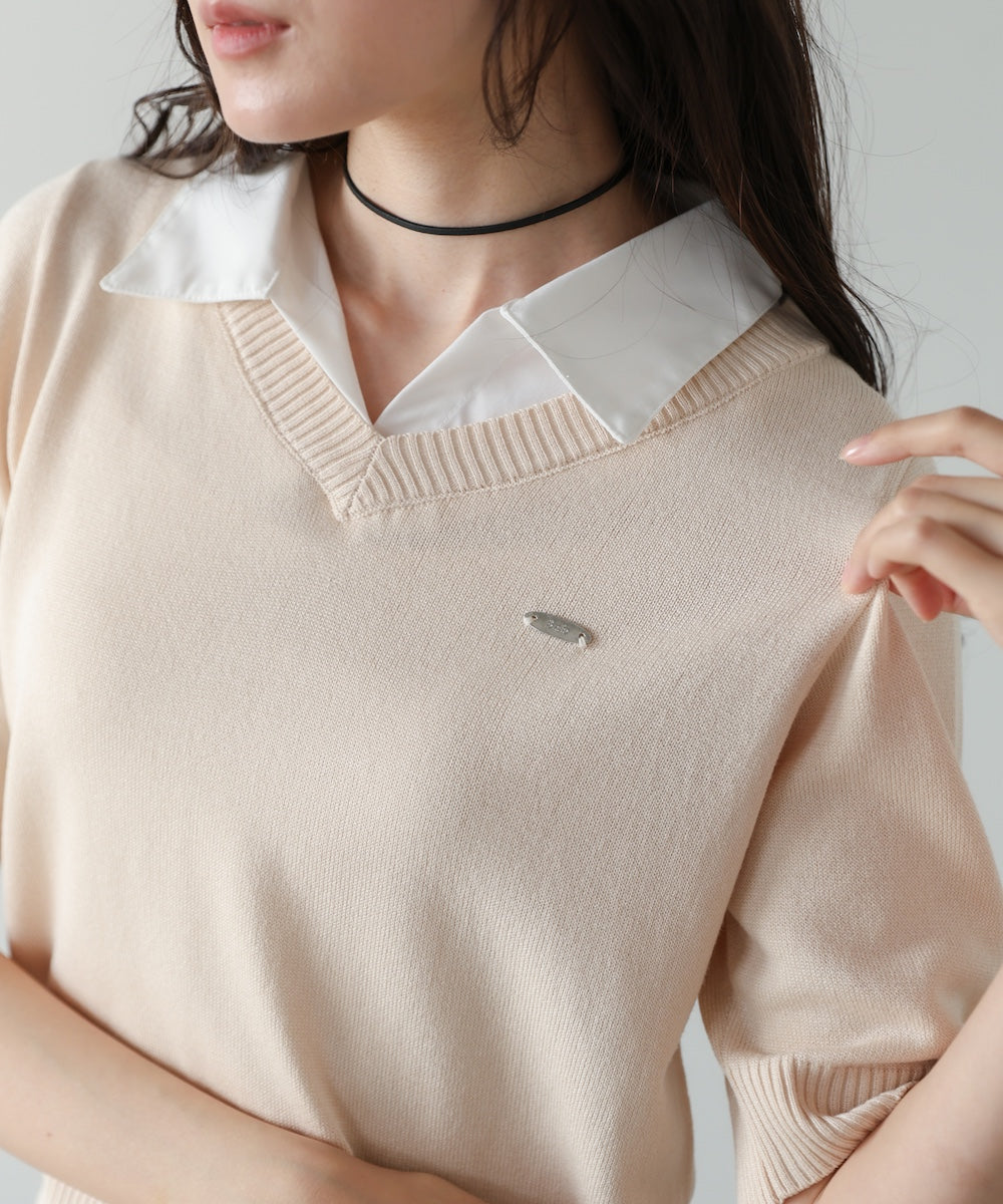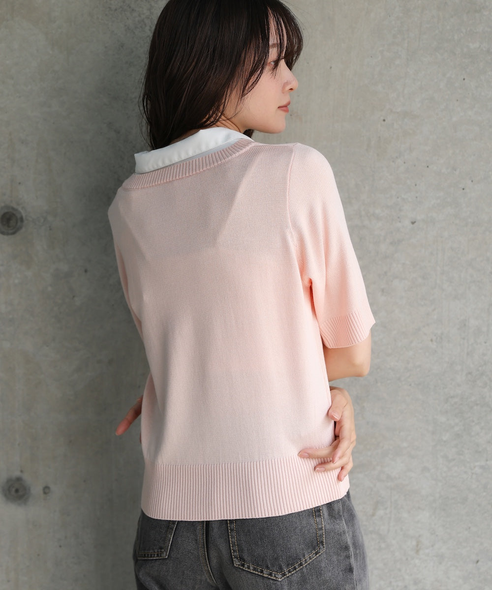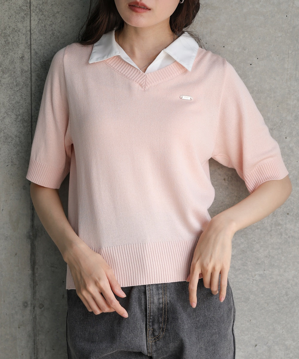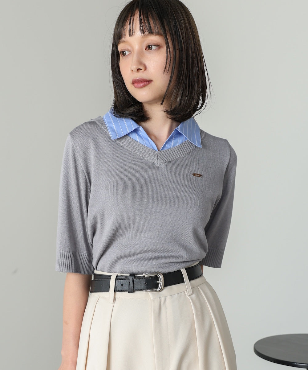 シャツレイヤードライクニットトップス