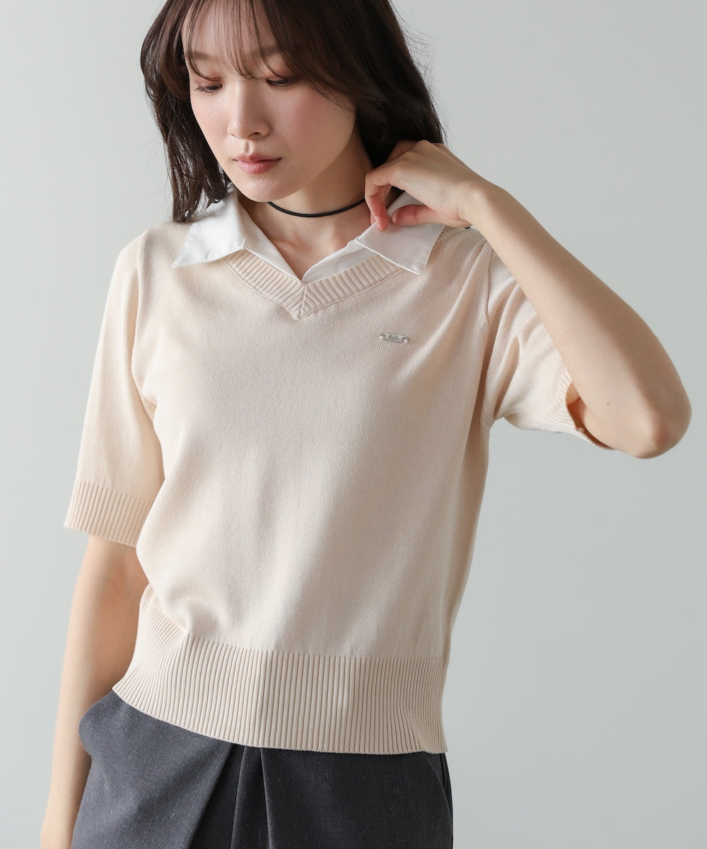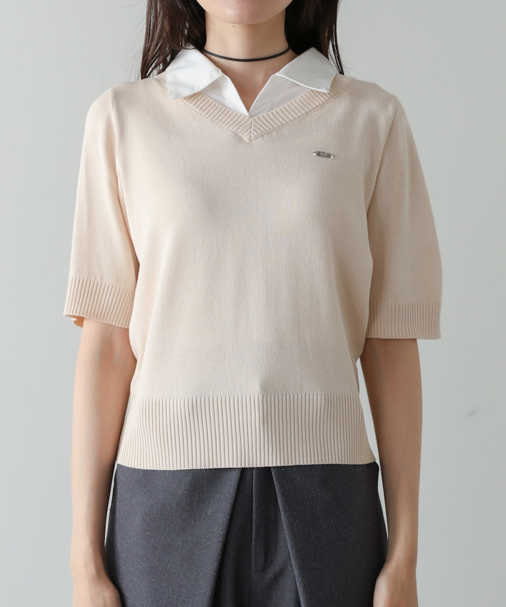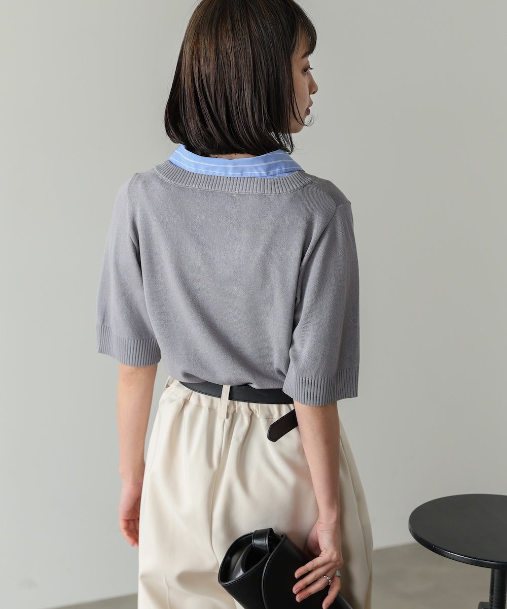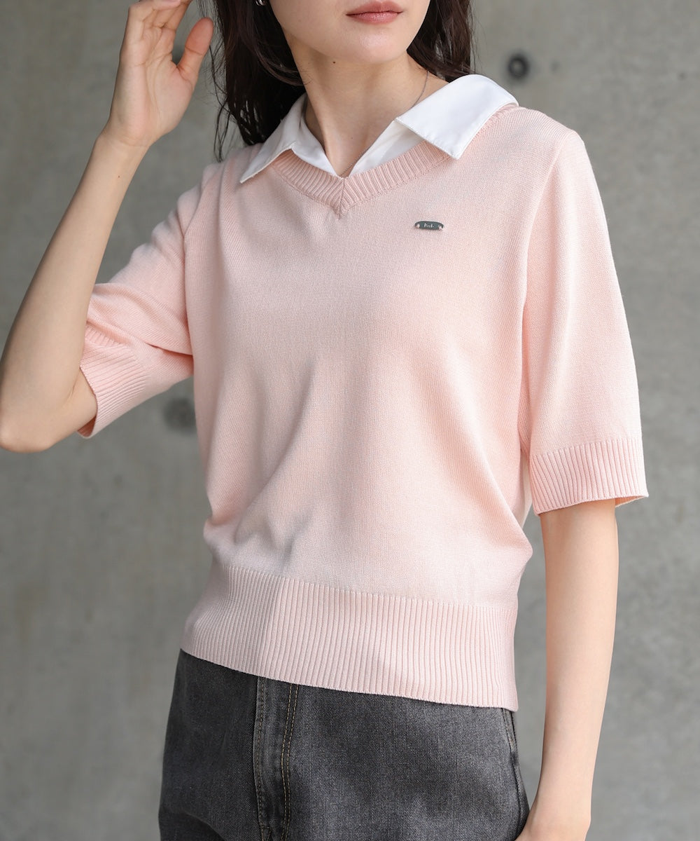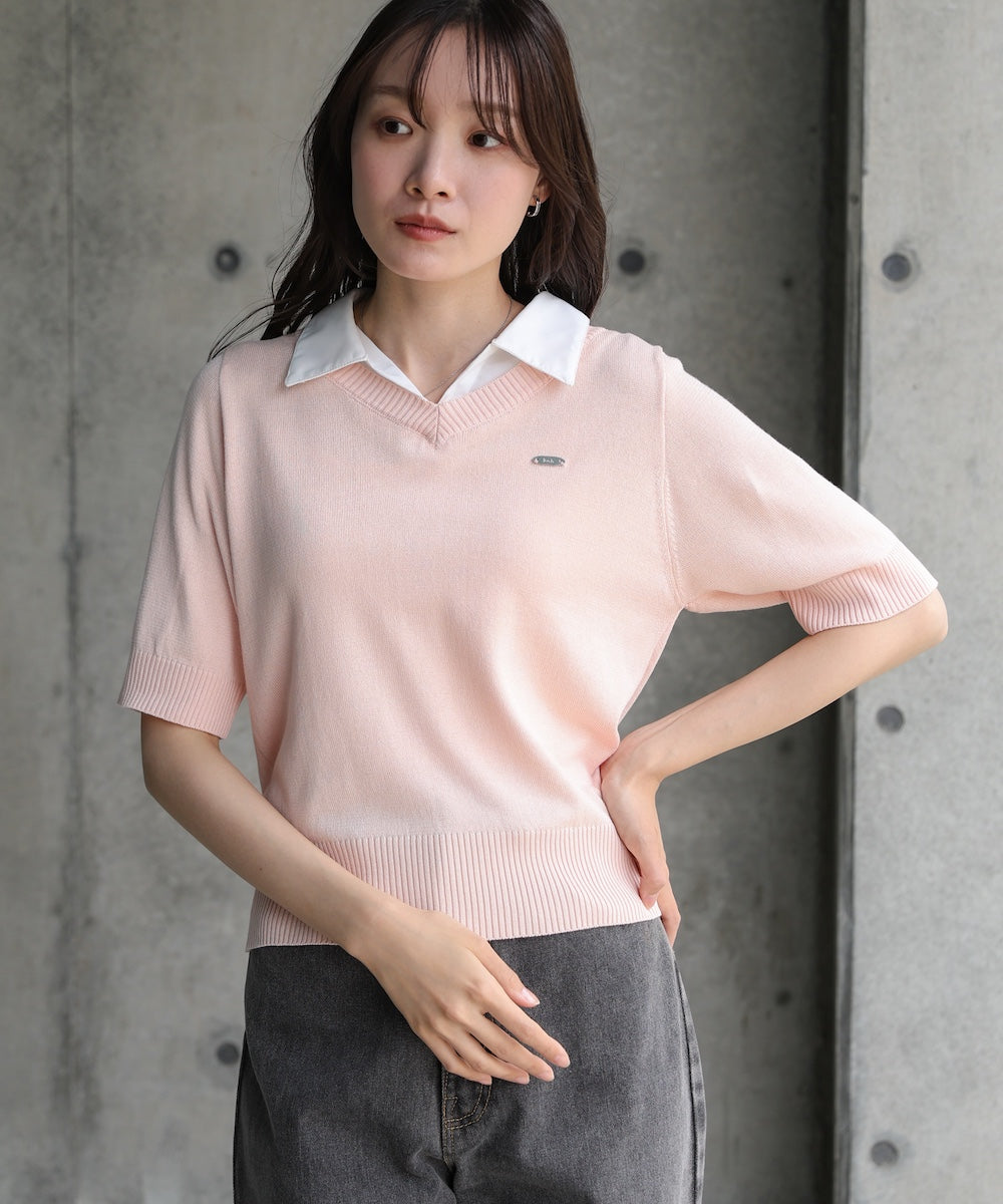 シャツレイヤードライクニットトップス