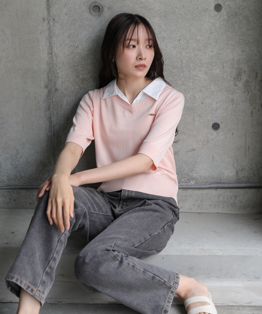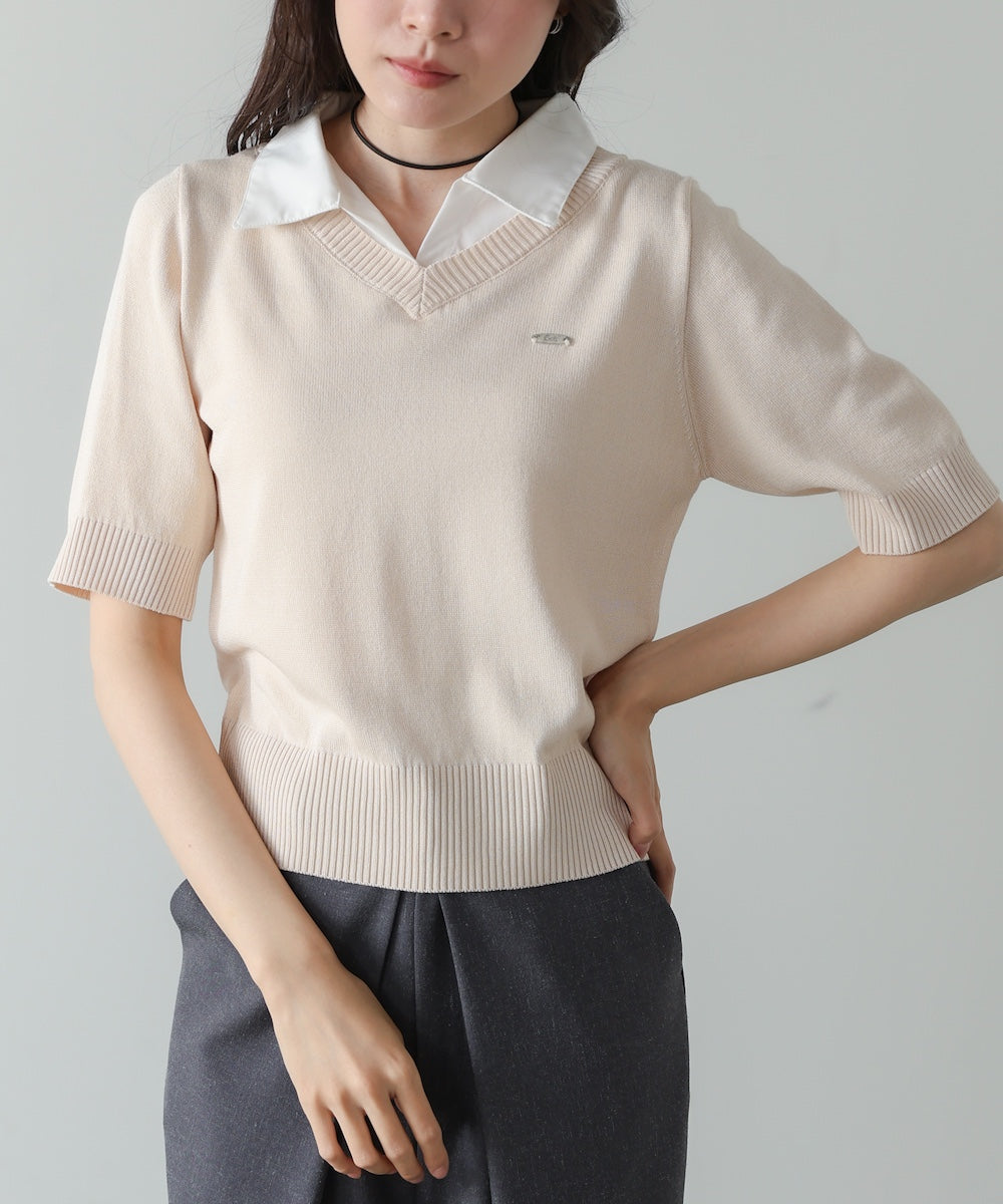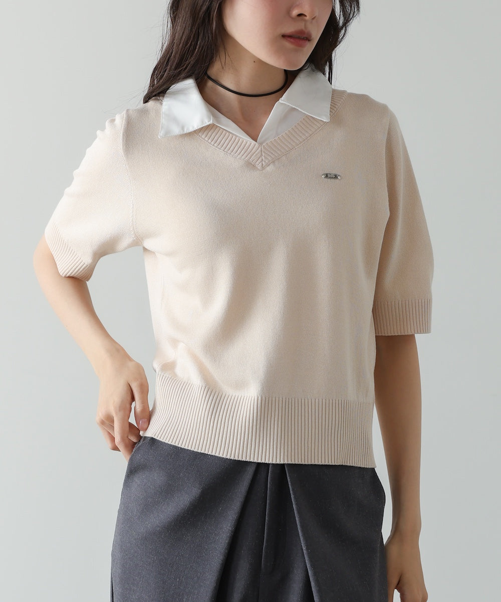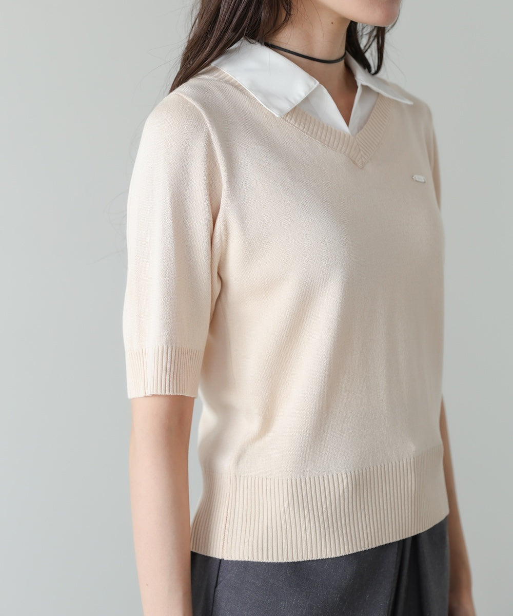シャツレイヤードライクニットトップス