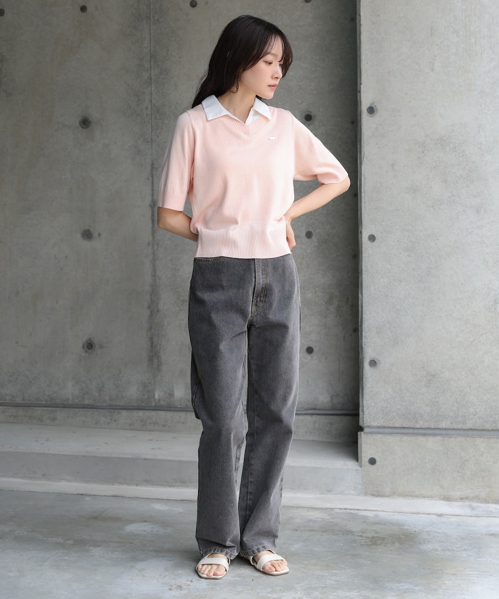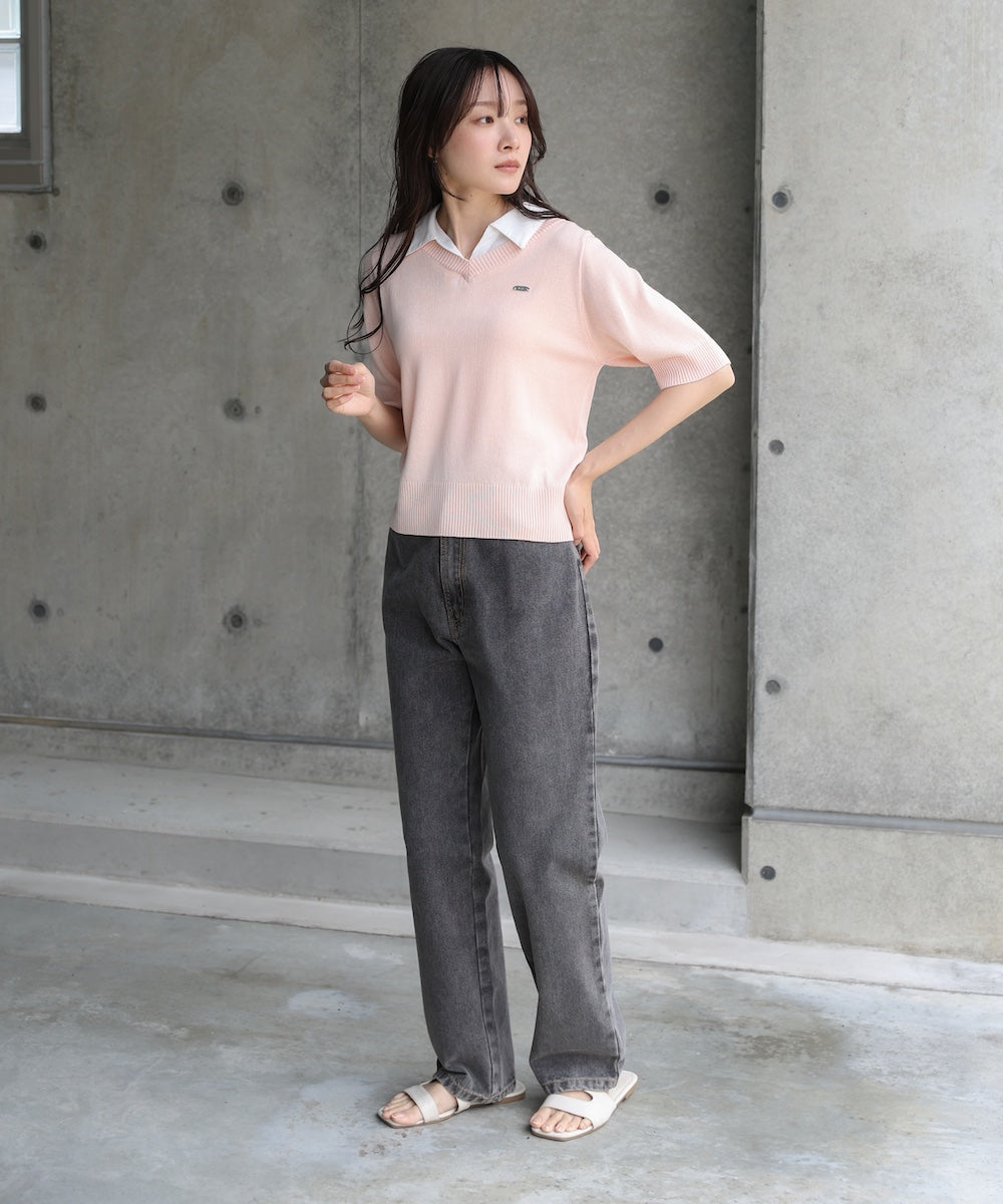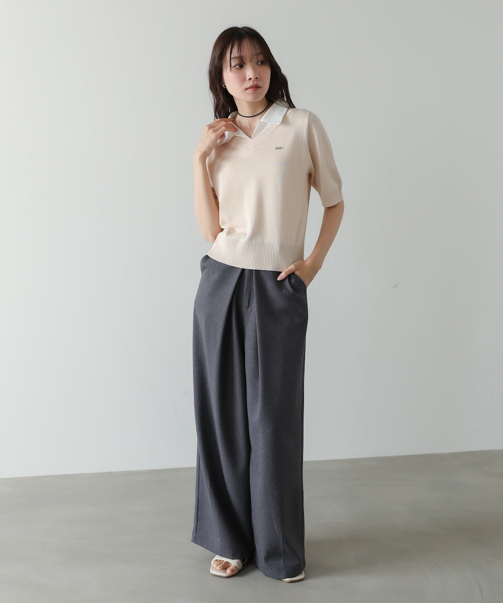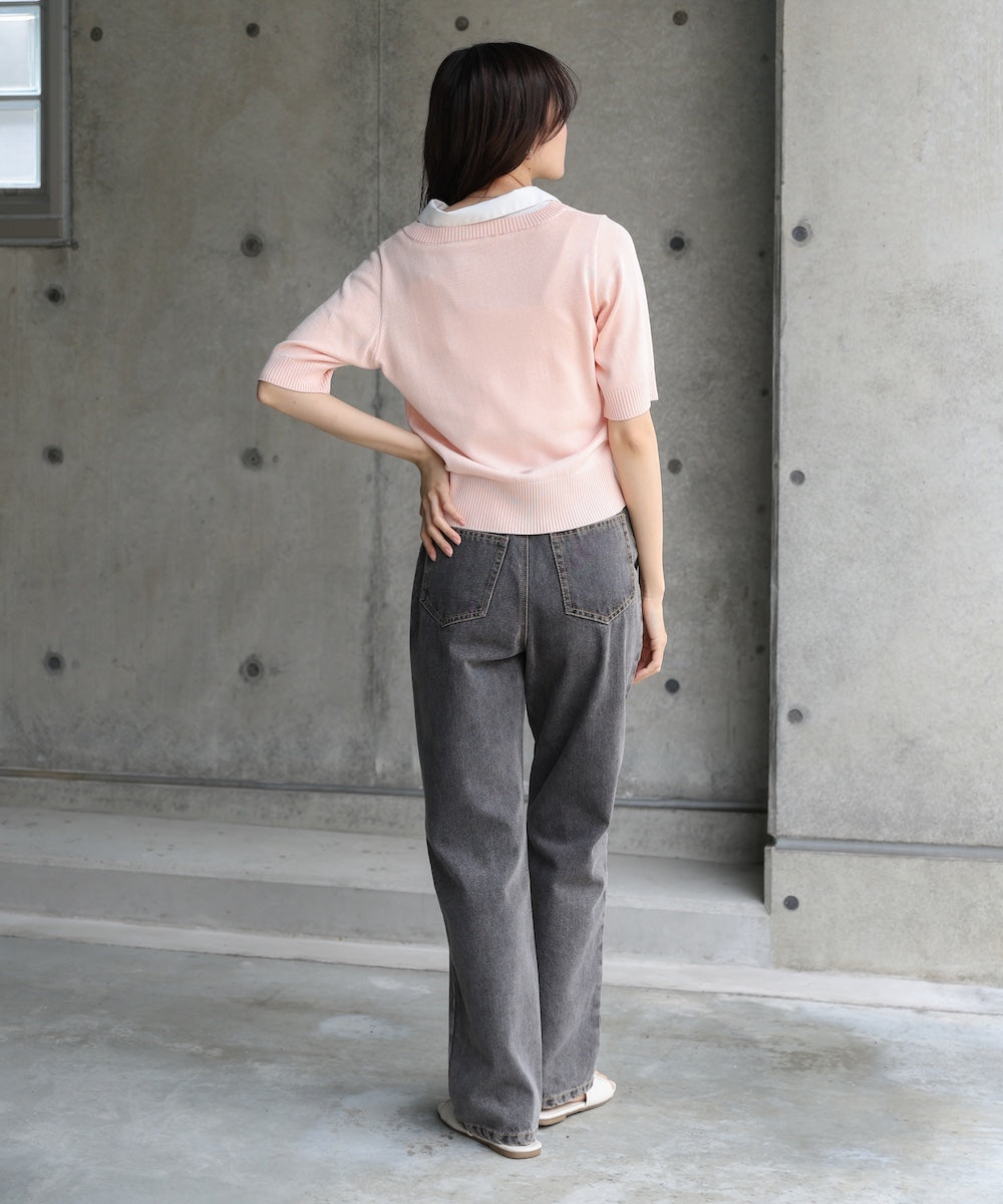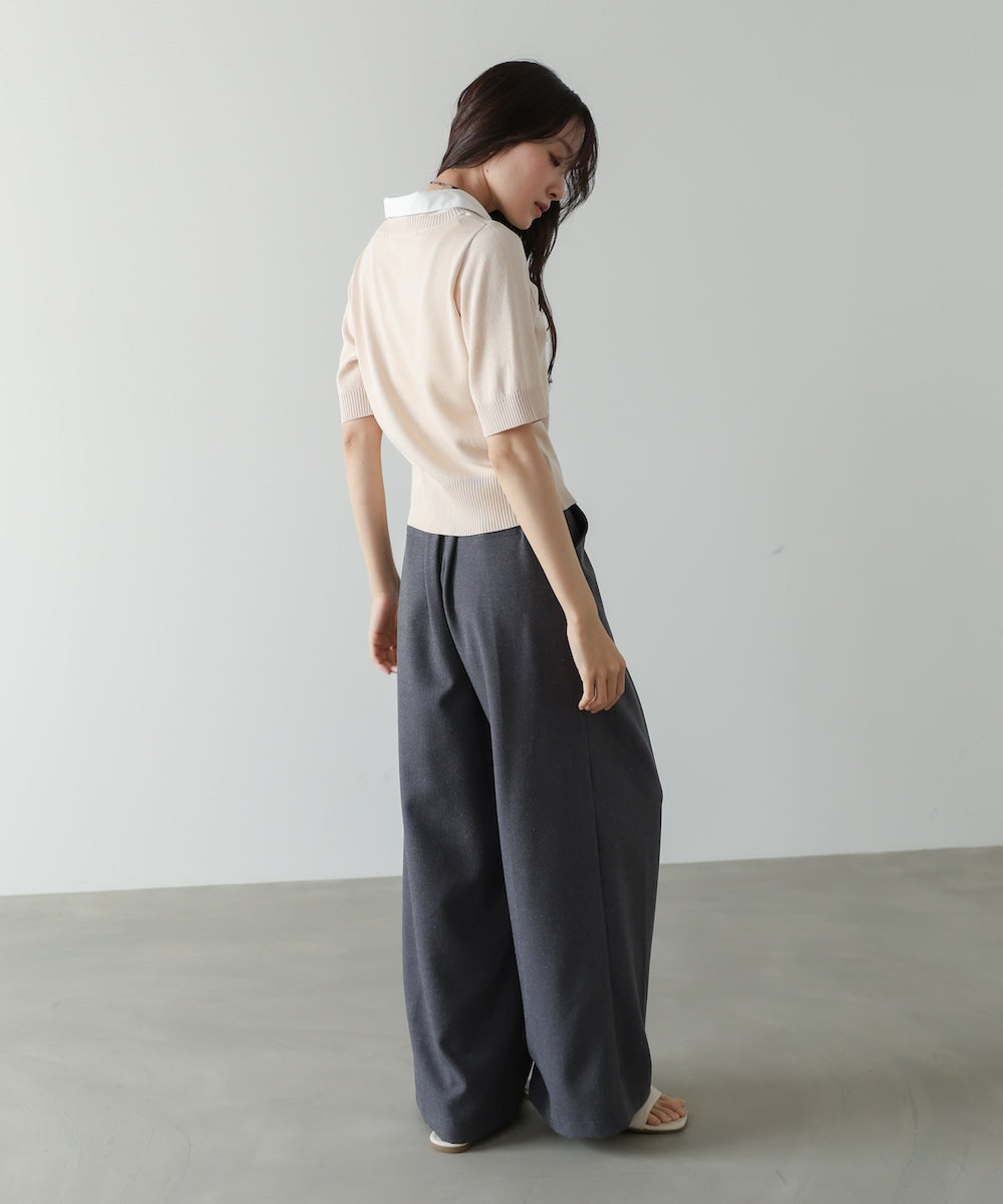 シャツレイヤードライクニットトップス