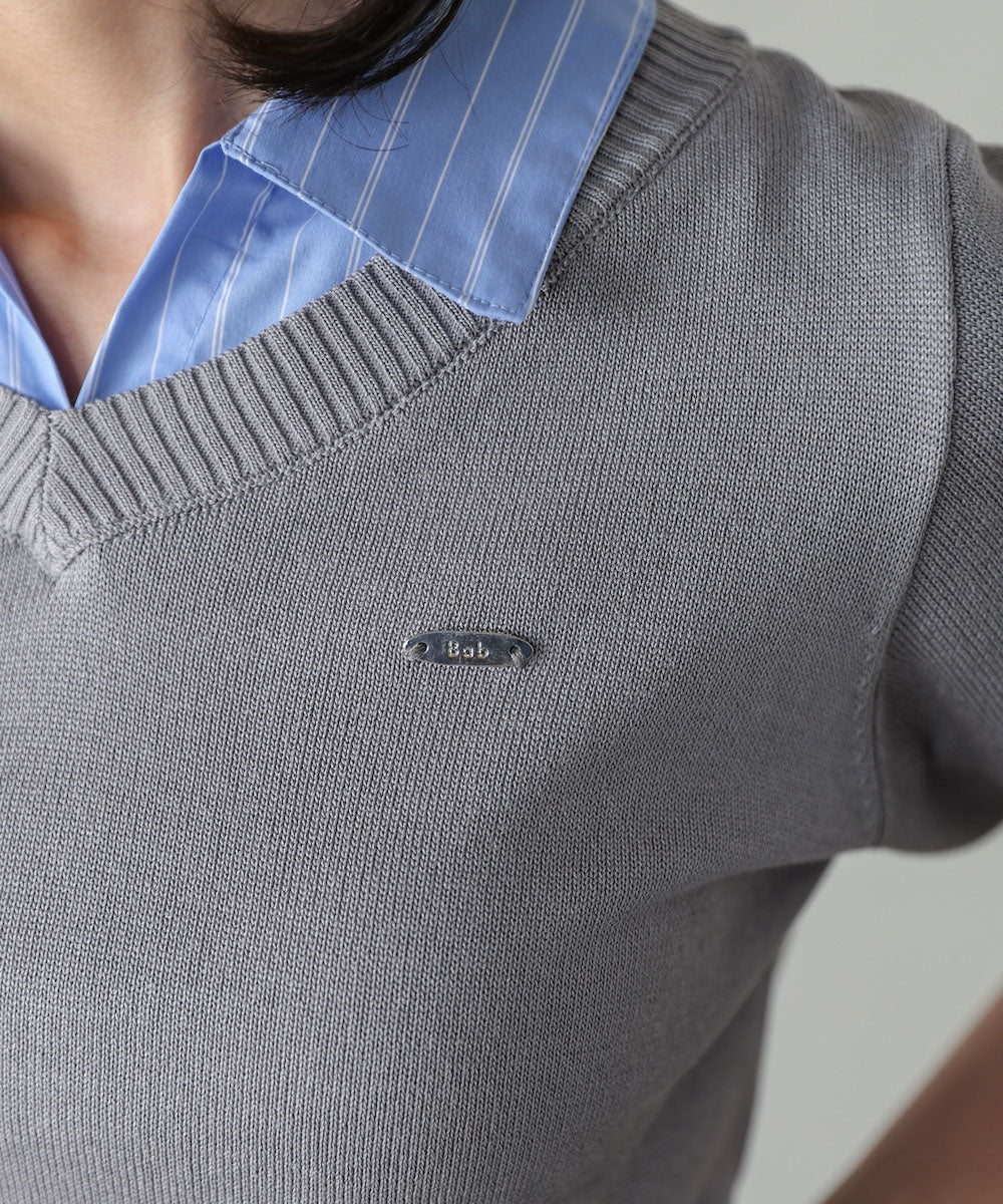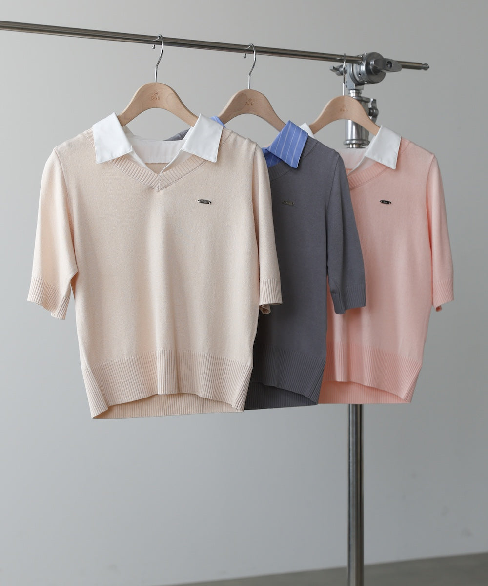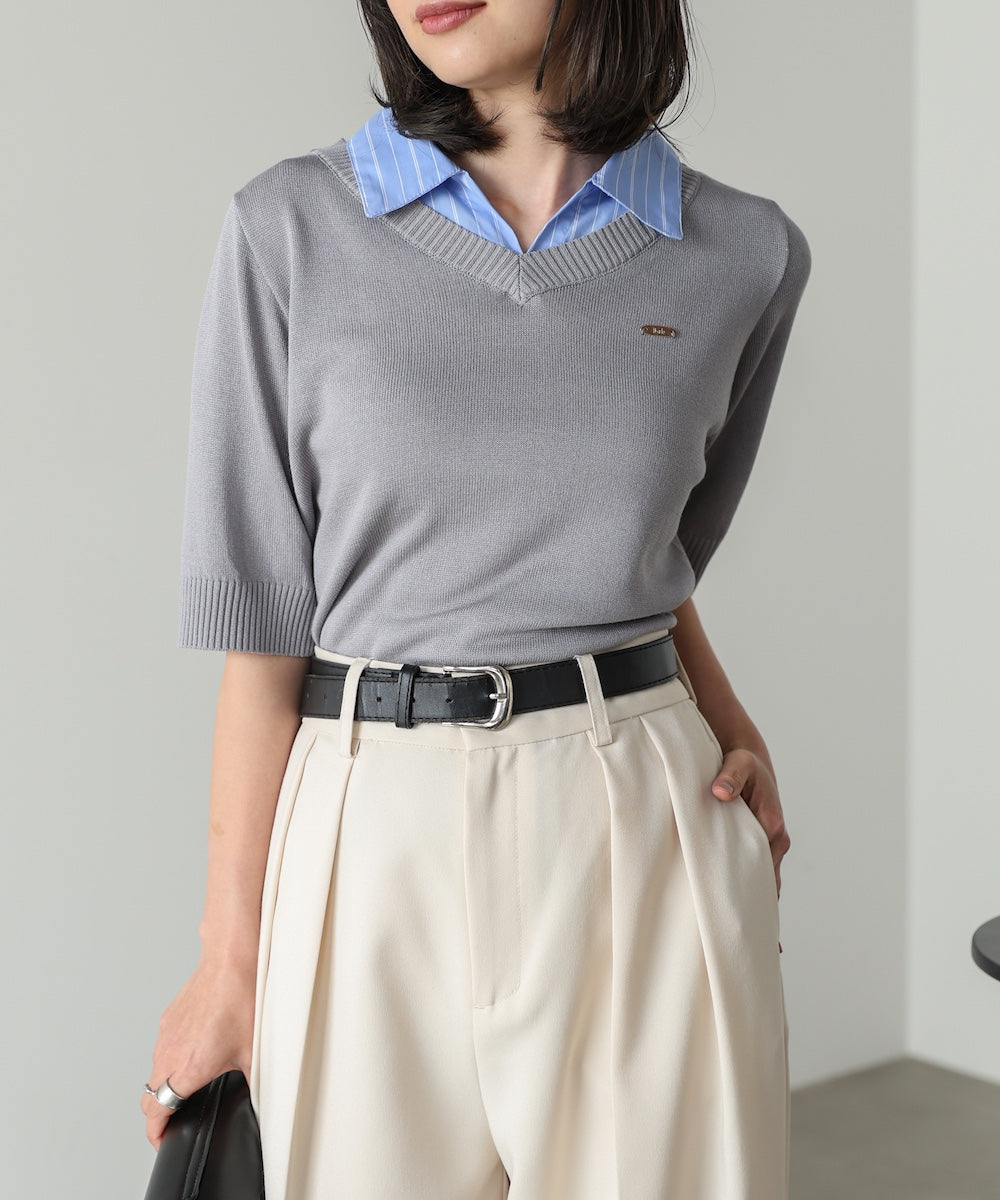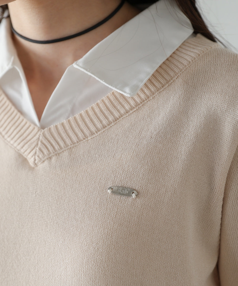 シャツをレイヤードしたようなデザインが魅力のニットトップス。一枚でスタイリングが決まる、きちんと感と抜け感を兼ね備えた優秀アイテムです。胸元にはBabオリジナルのミニプレートを施し、さりげないアクセントに。オンオフ問わず活躍する、大人のワードローブに取り入れたい一枚です。