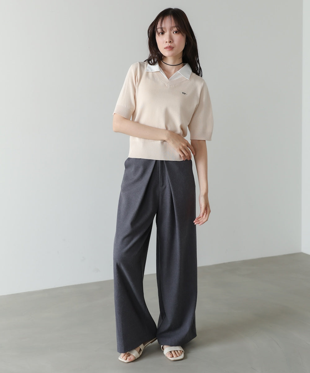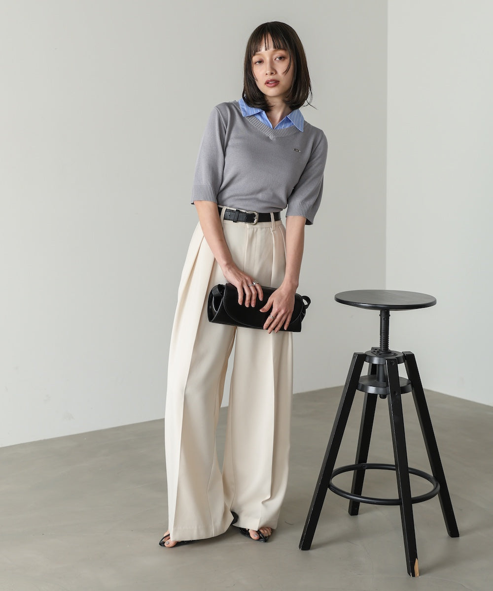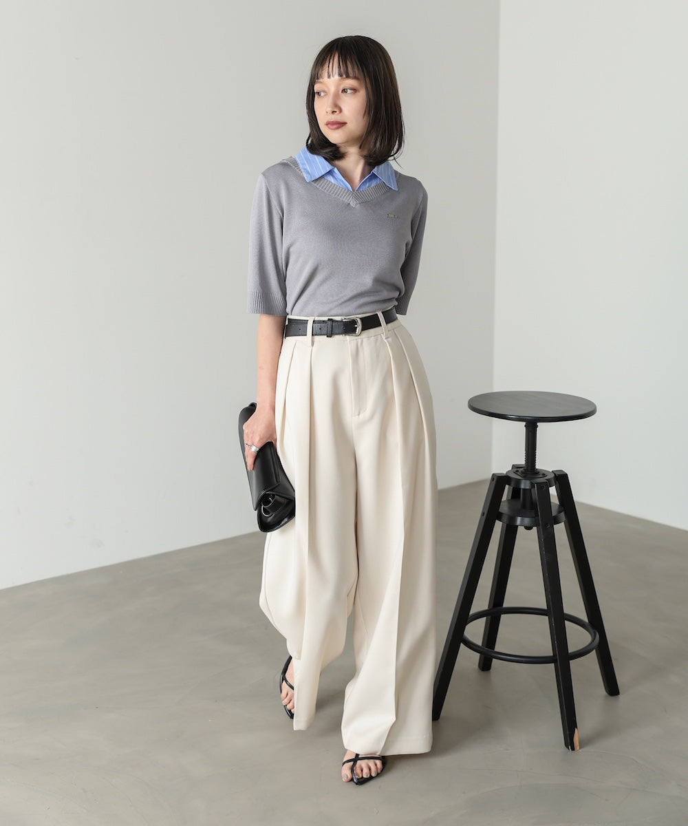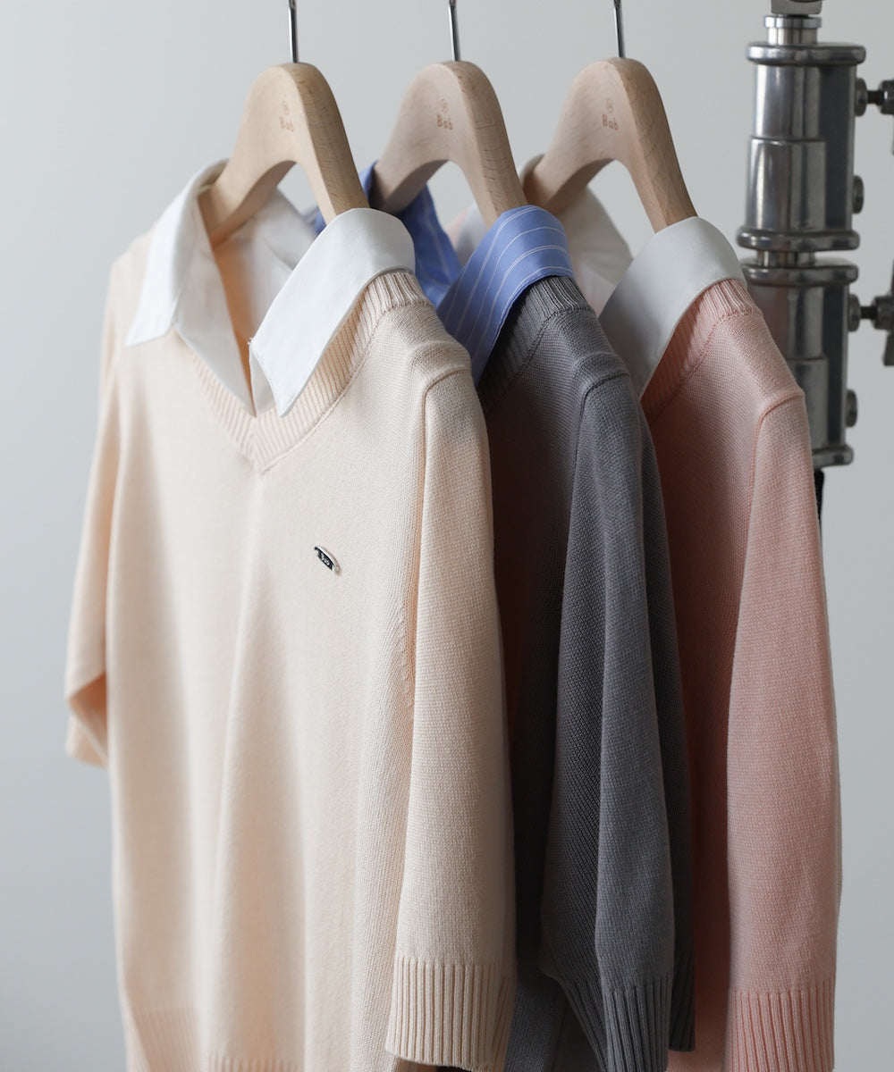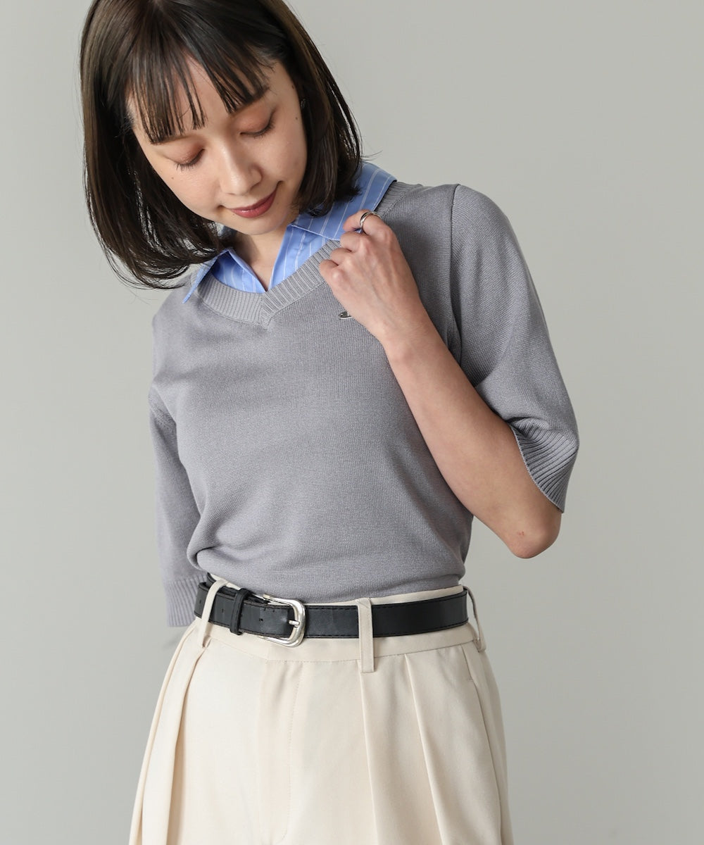 シャツをレイヤードしたようなデザインが魅力のニットトップス。一枚でスタイリングが決まる、きちんと感と抜け感を兼ね備えた優秀アイテムです。胸元にはBabオリジナルのミニプレートを施し、さりげないアクセントに。オンオフ問わず活躍する、大人のワードローブに取り入れたい一枚です。