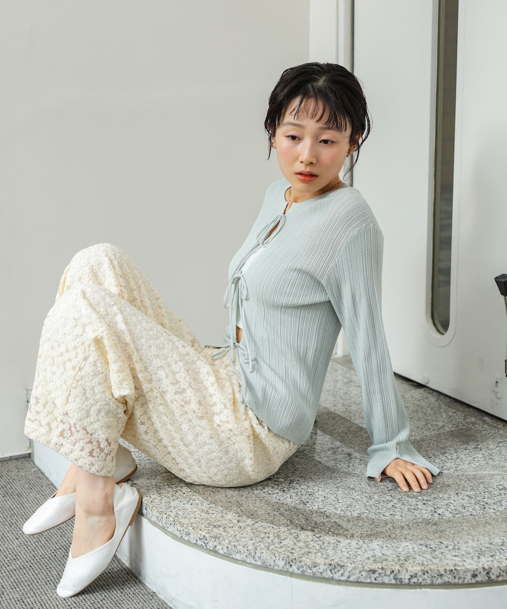 前後2WAYリボン付ニットカーディガン
