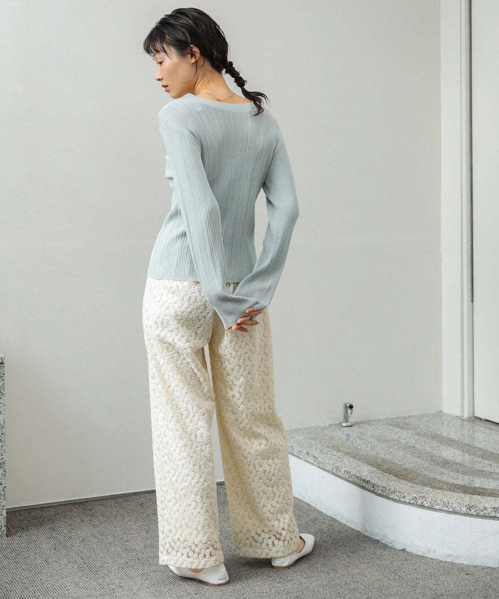 MIX編みラインニットトップス