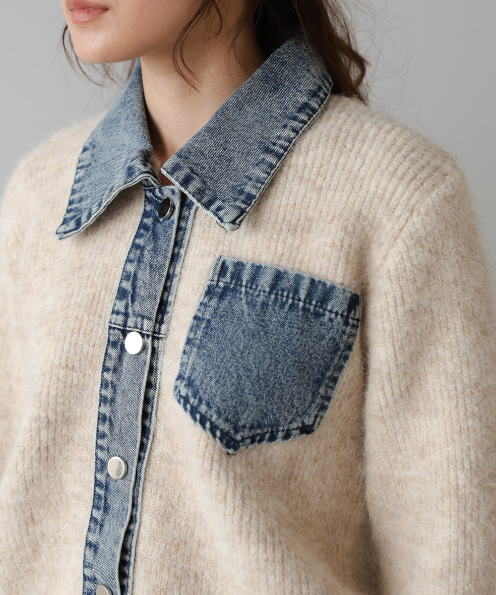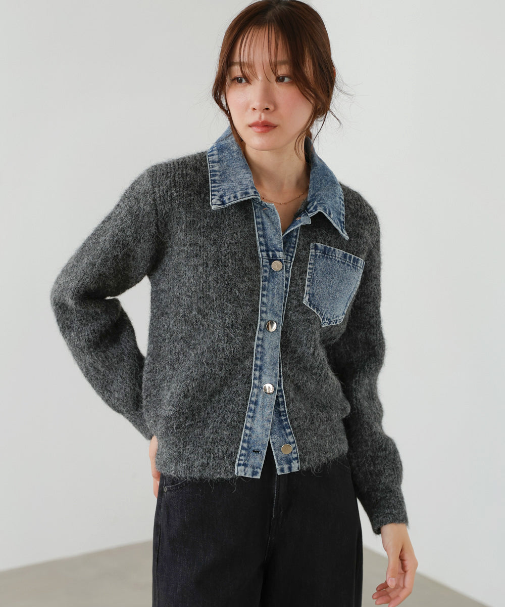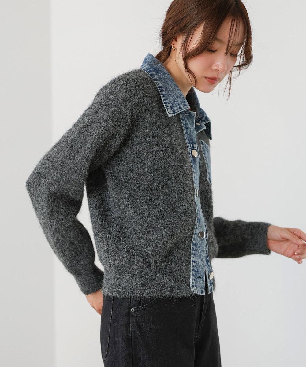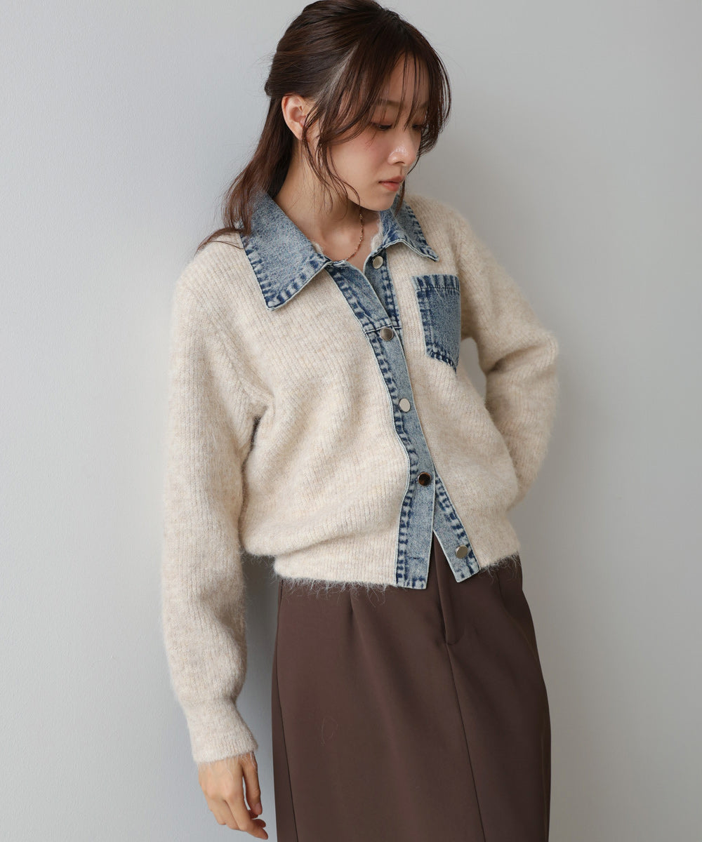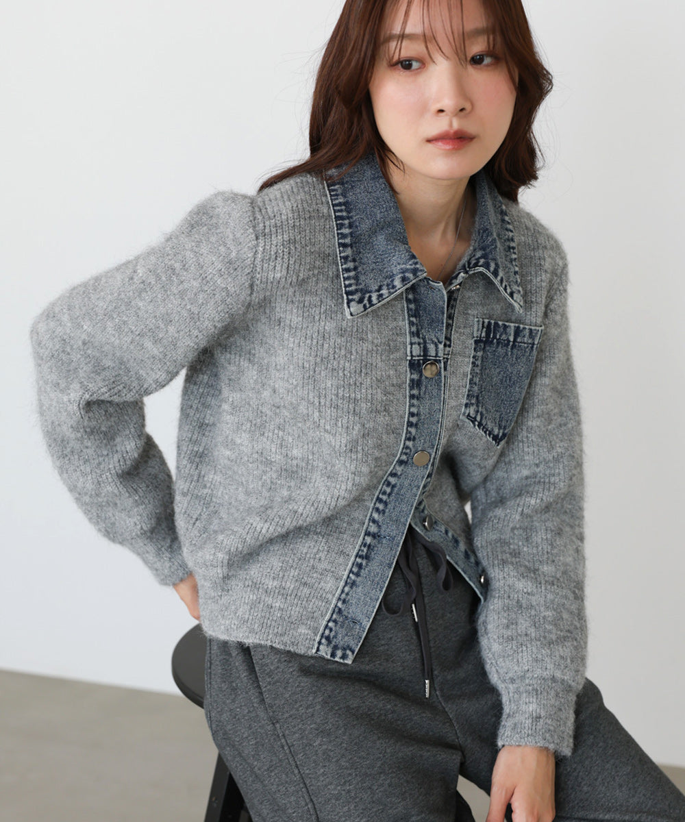 デニム切替ニットカーデ