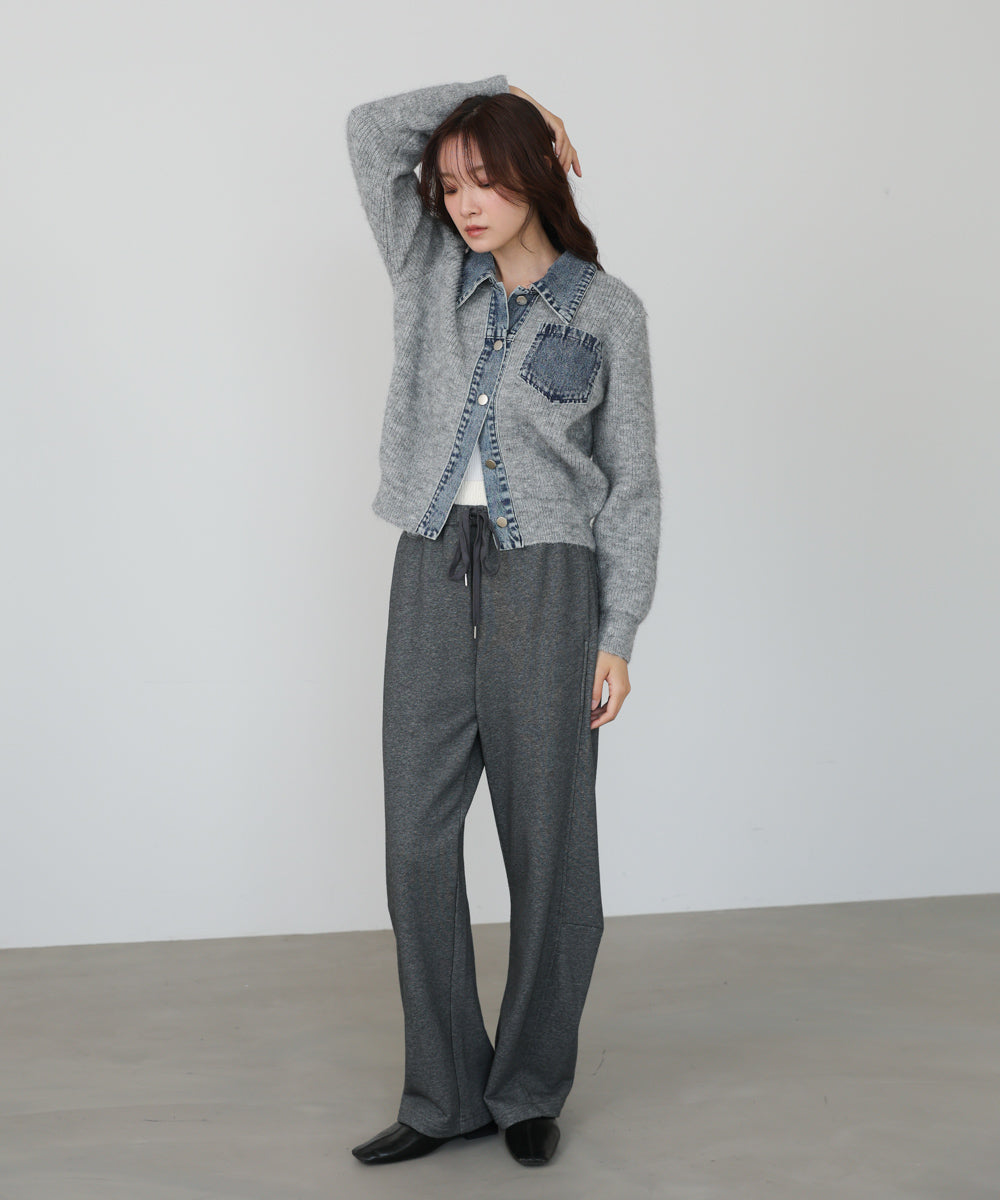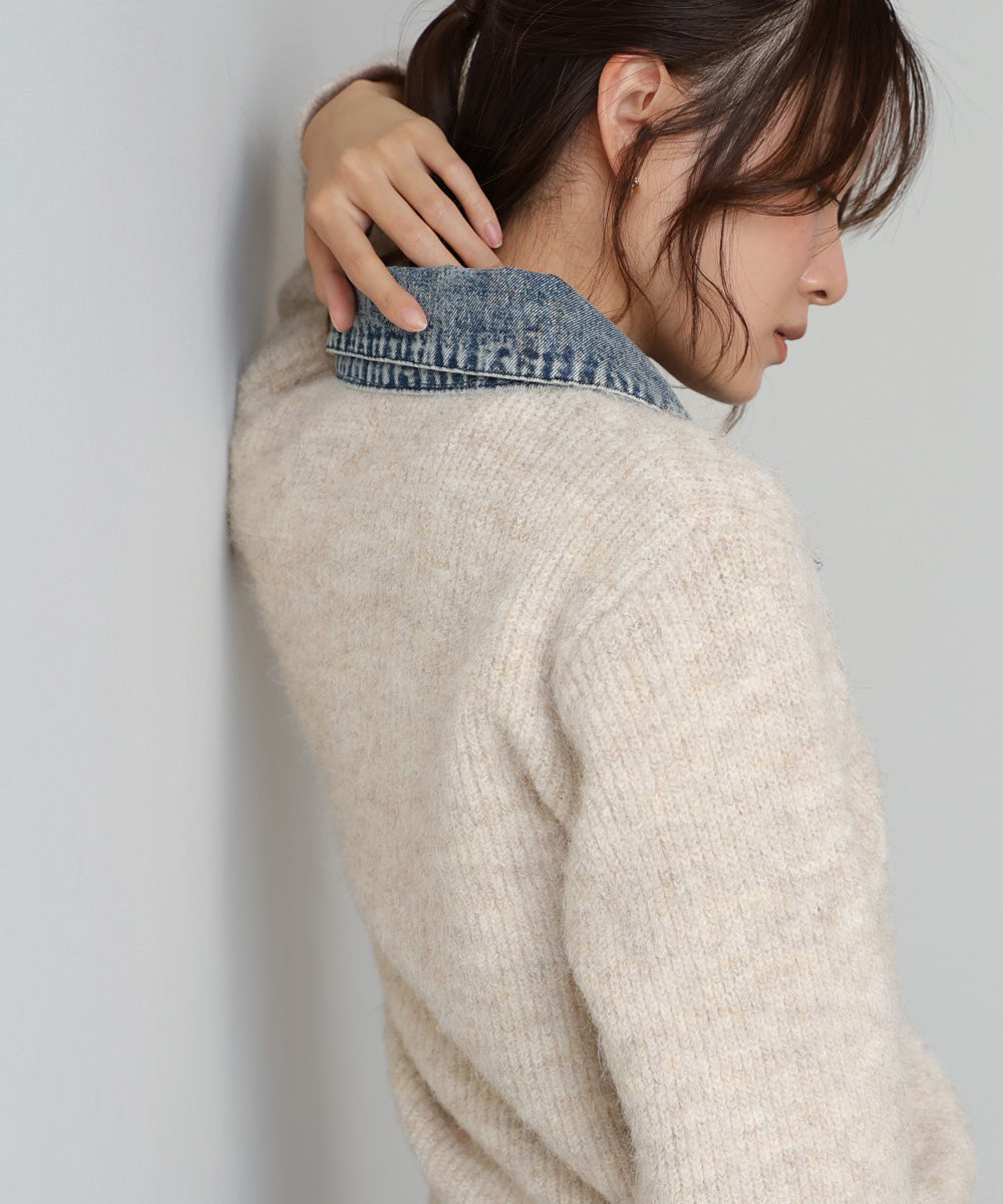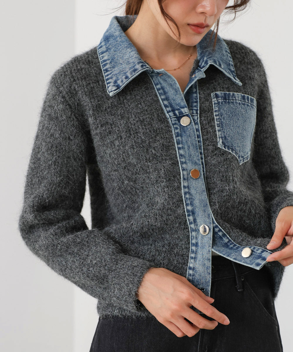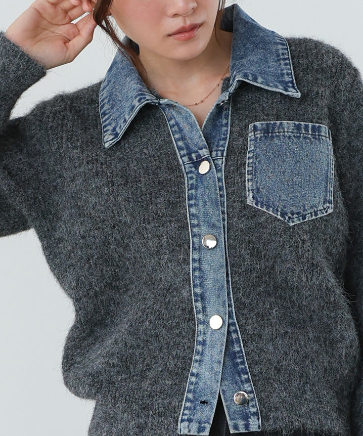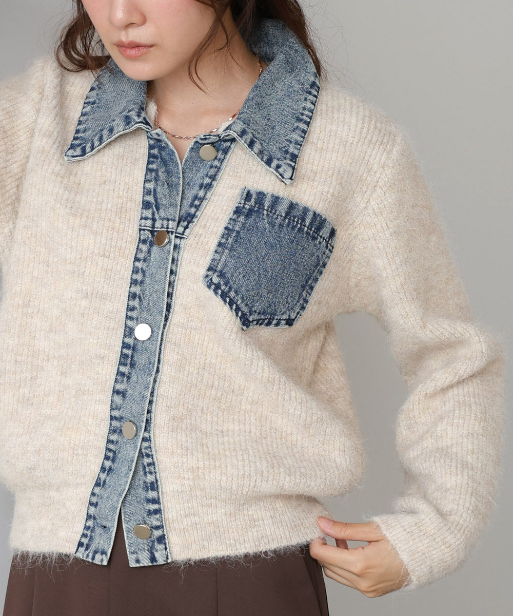 デニム切替ニットカーデ