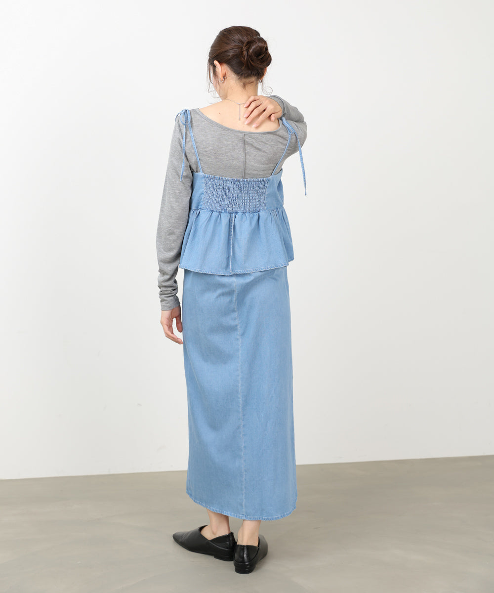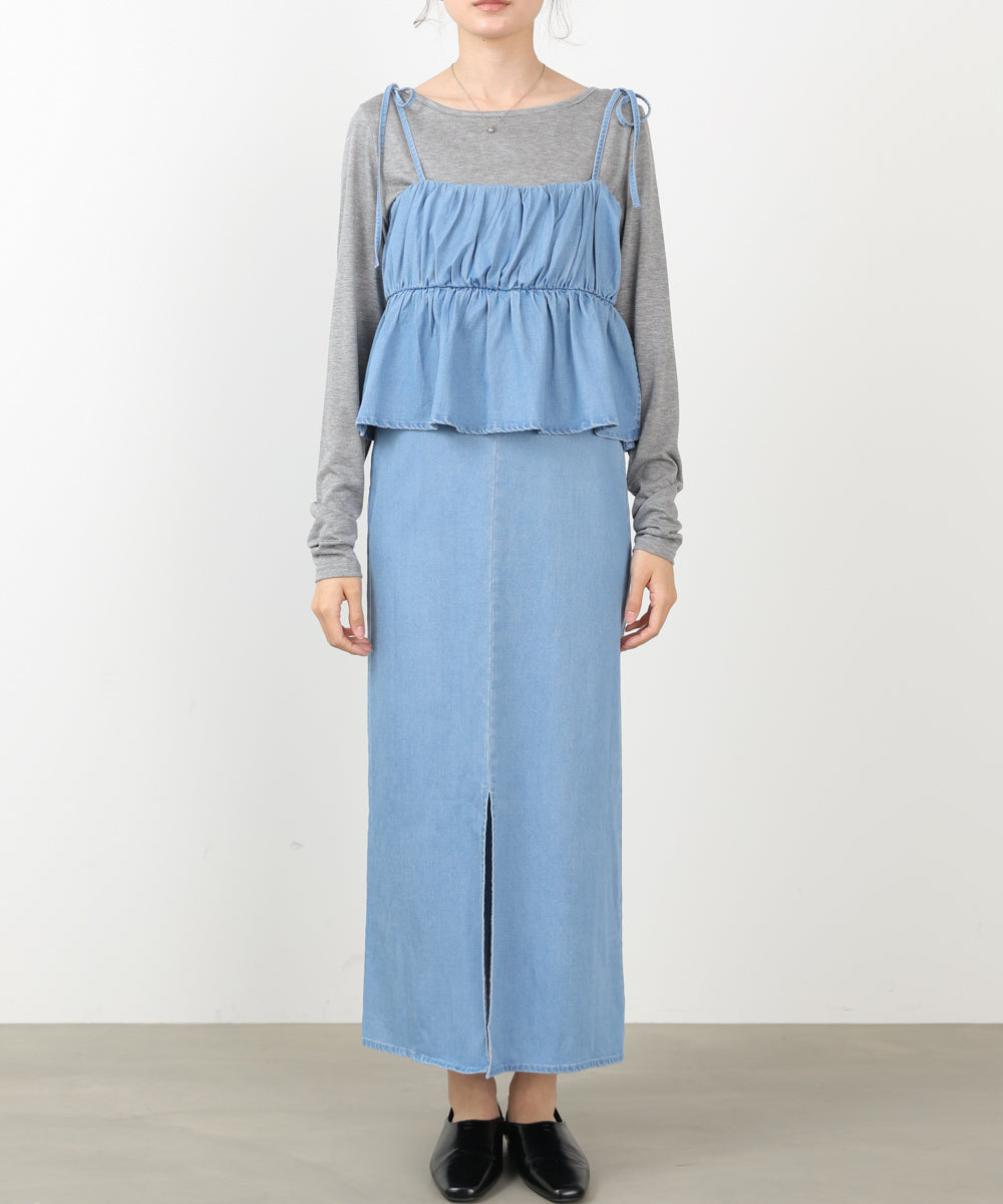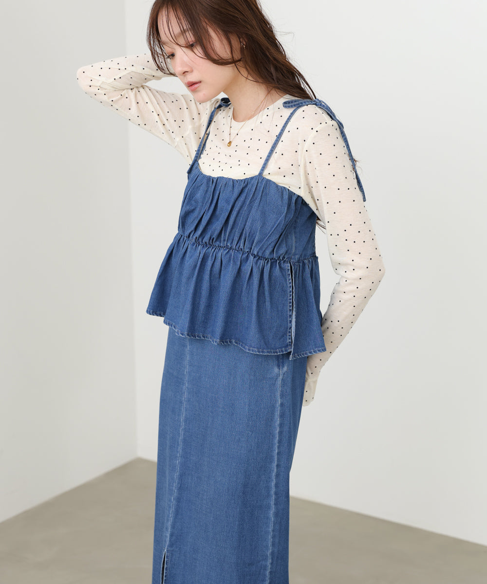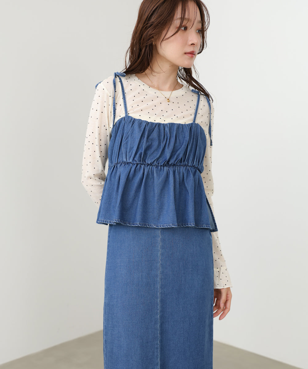 デニムペプラムギャザーキャミワンピース