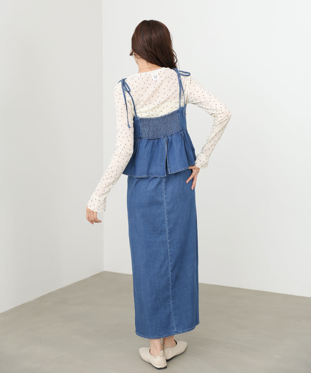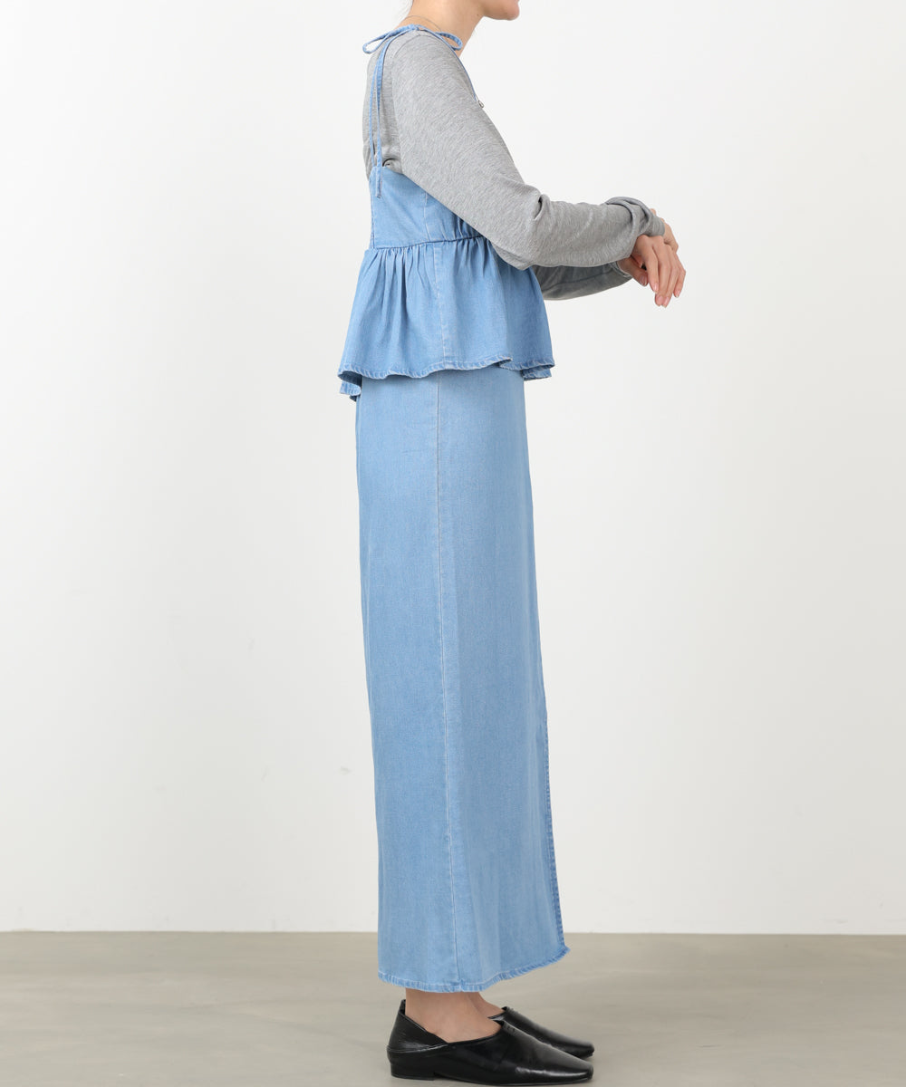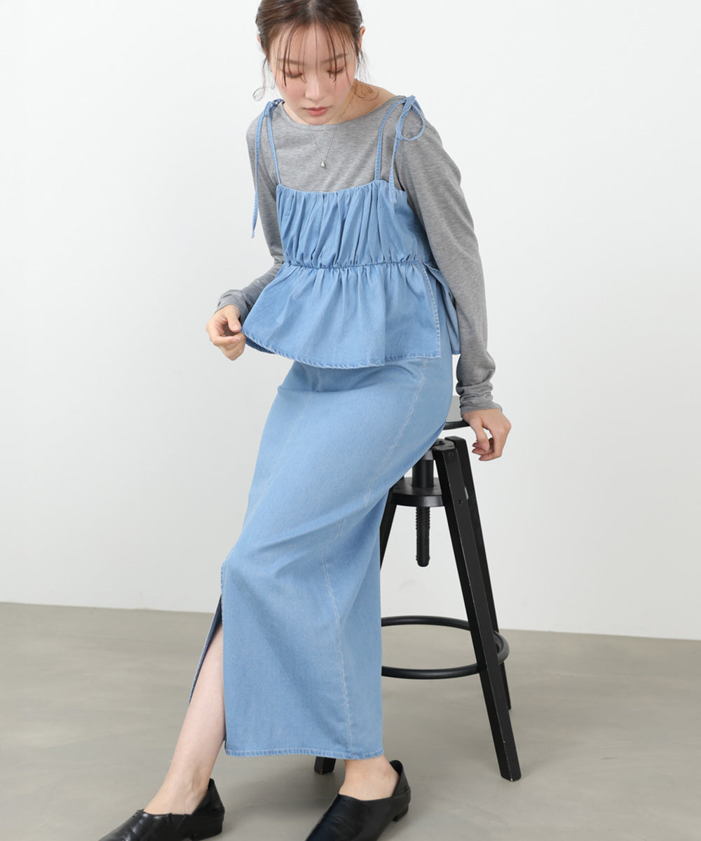 デニムペプラムギャザーキャミワンピース
