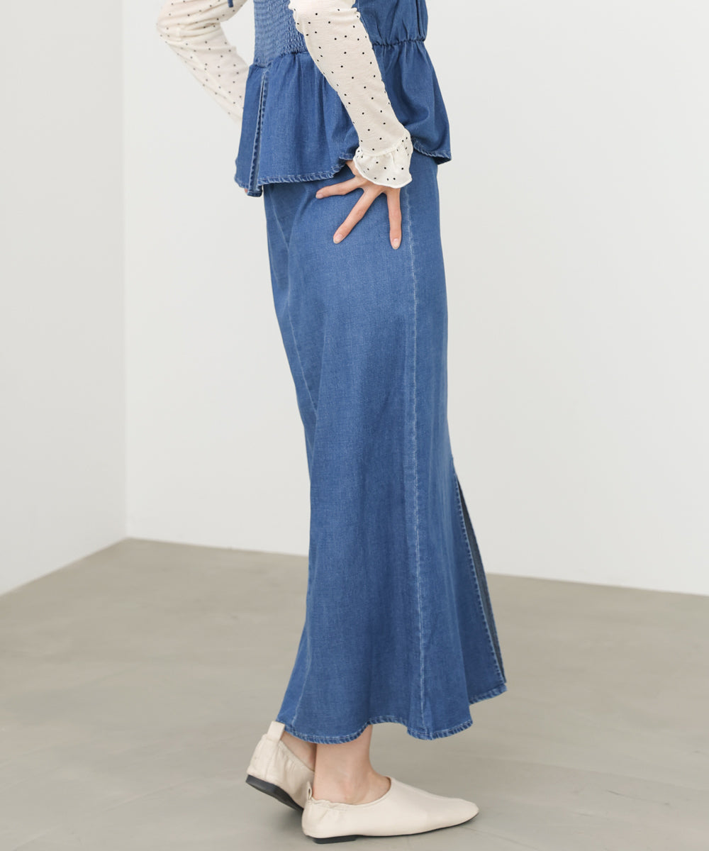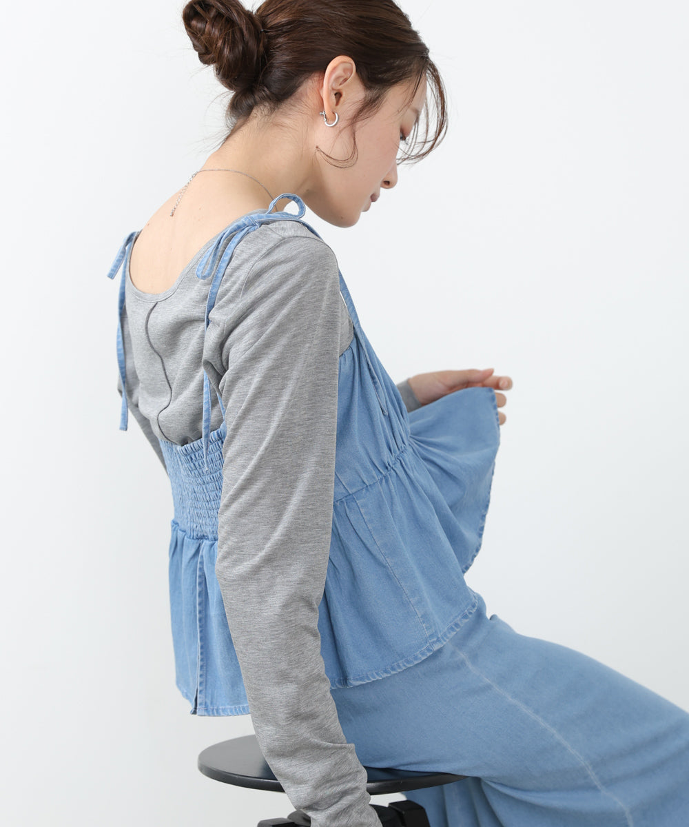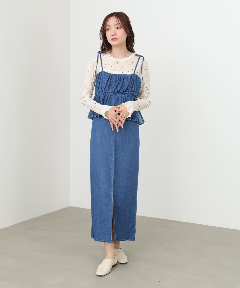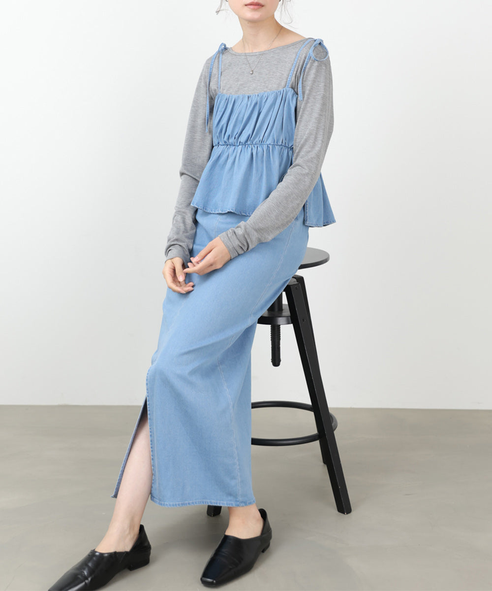 デニムペプラムギャザーキャミワンピース
