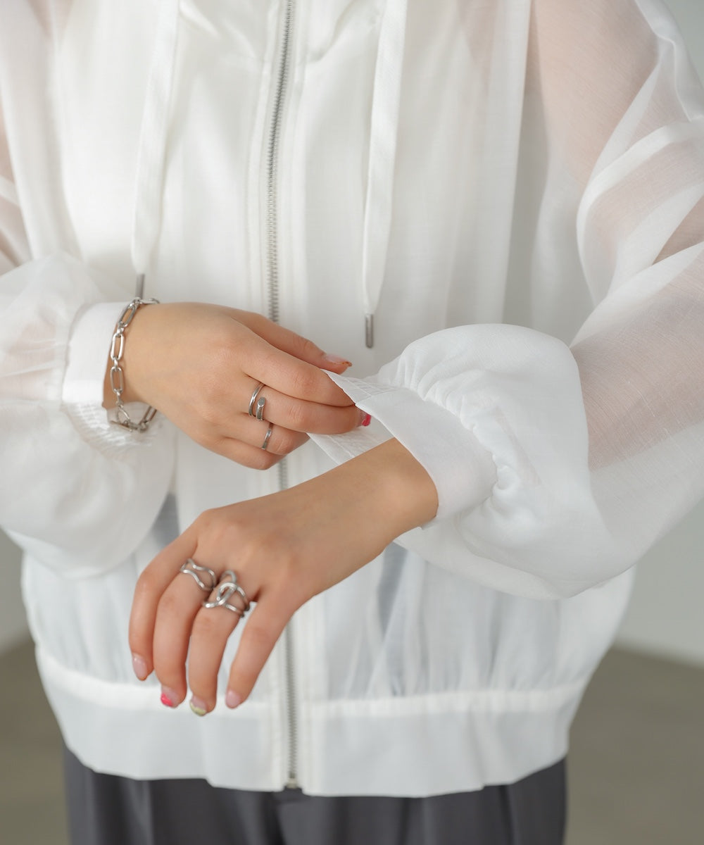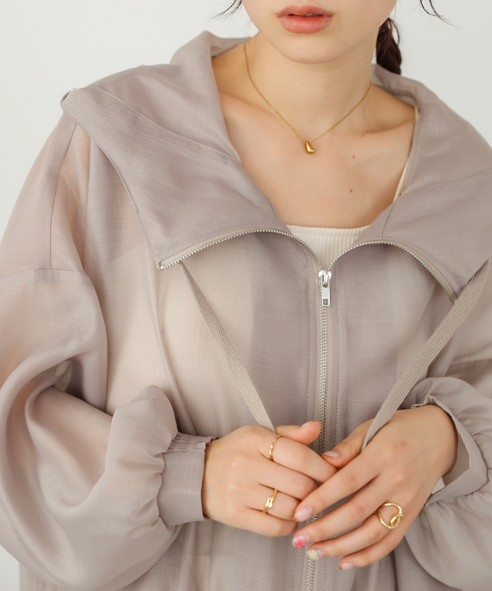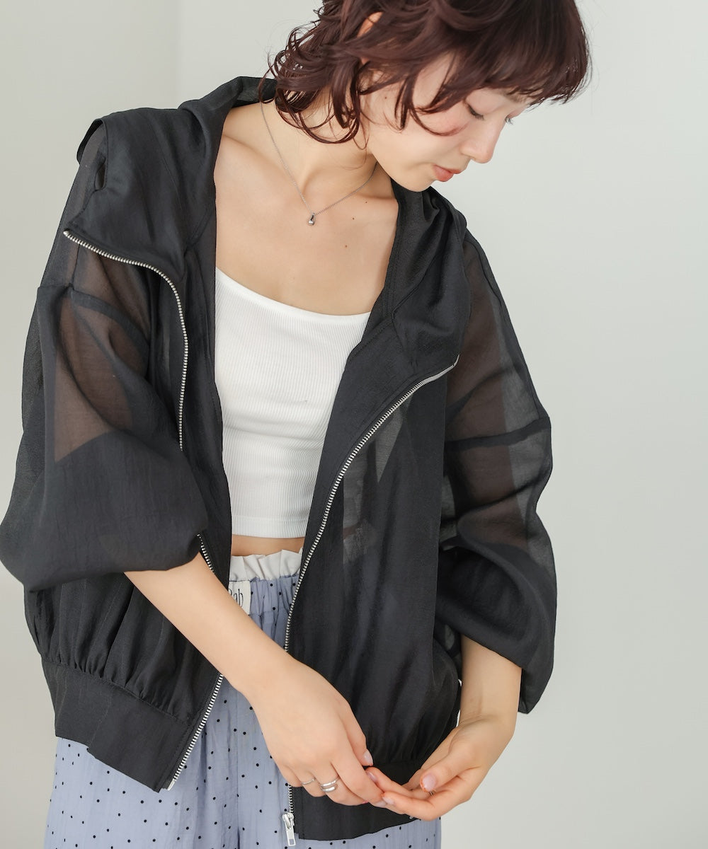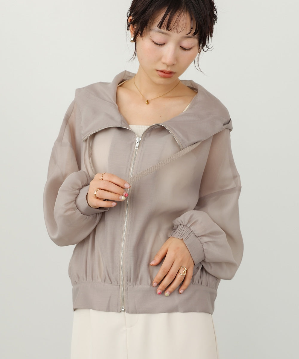 昨年春秋ともに人気だったさらっとしたマットな程よい透け感のシアーブルゾンが再登場です!ふんわりとしたボリューム袖とゆったりとしたリラックスシルエットが、中に着る物も問わずに着用いただけます。これからの季節~秋先まで活躍すること間違いなしのブルゾンです。