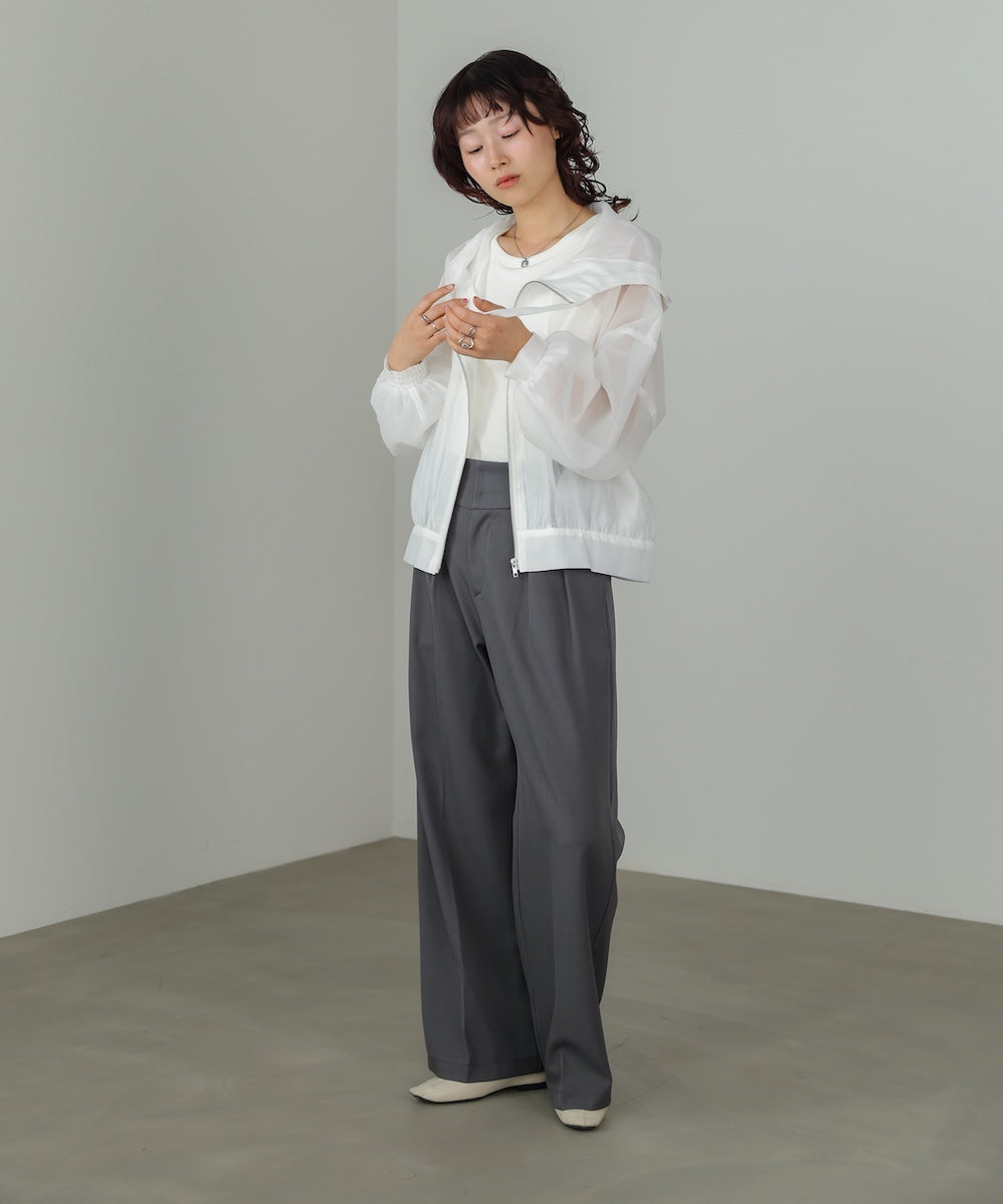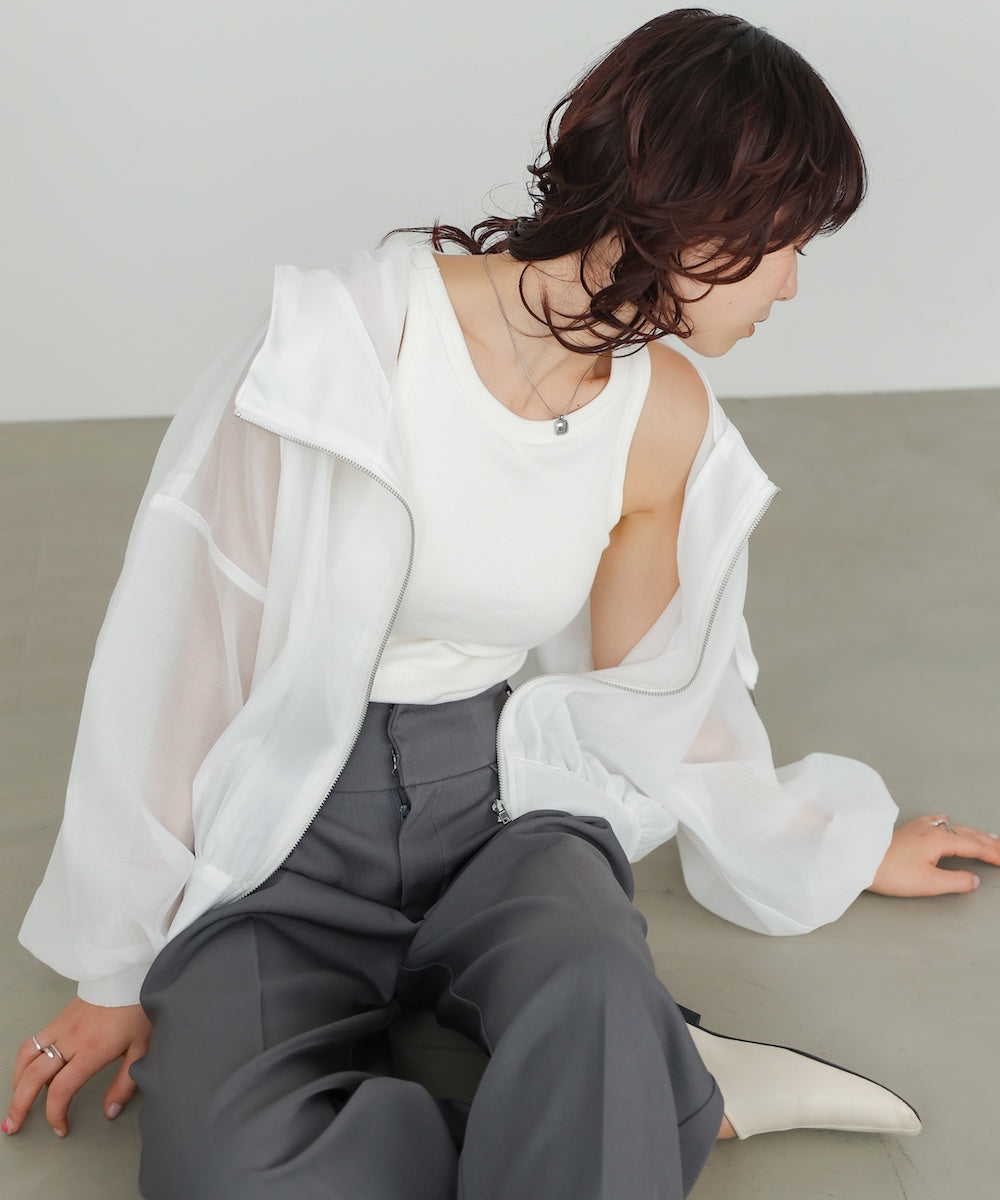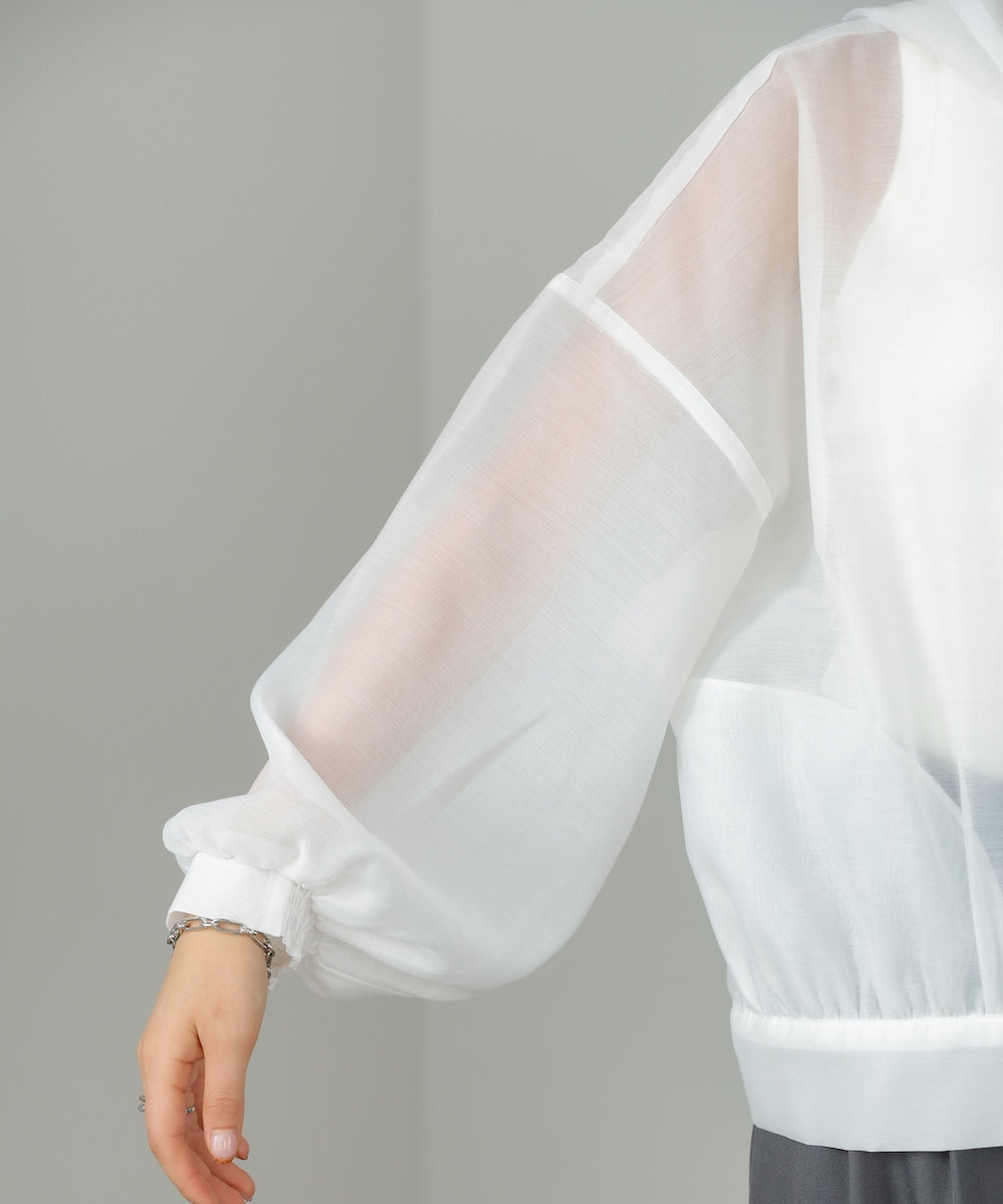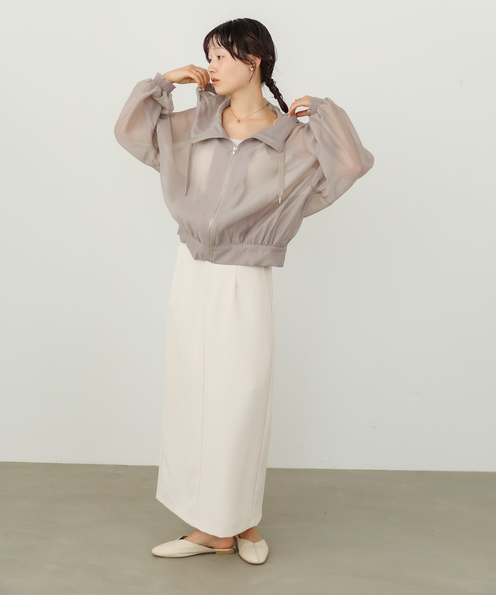 昨年春秋ともに人気だったさらっとしたマットな程よい透け感のシアーブルゾンが再登場です!ふんわりとしたボリューム袖とゆったりとしたリラックスシルエットが、中に着る物も問わずに着用いただけます。これからの季節~秋先まで活躍すること間違いなしのブルゾンです。