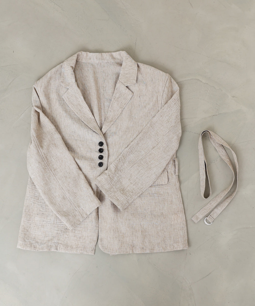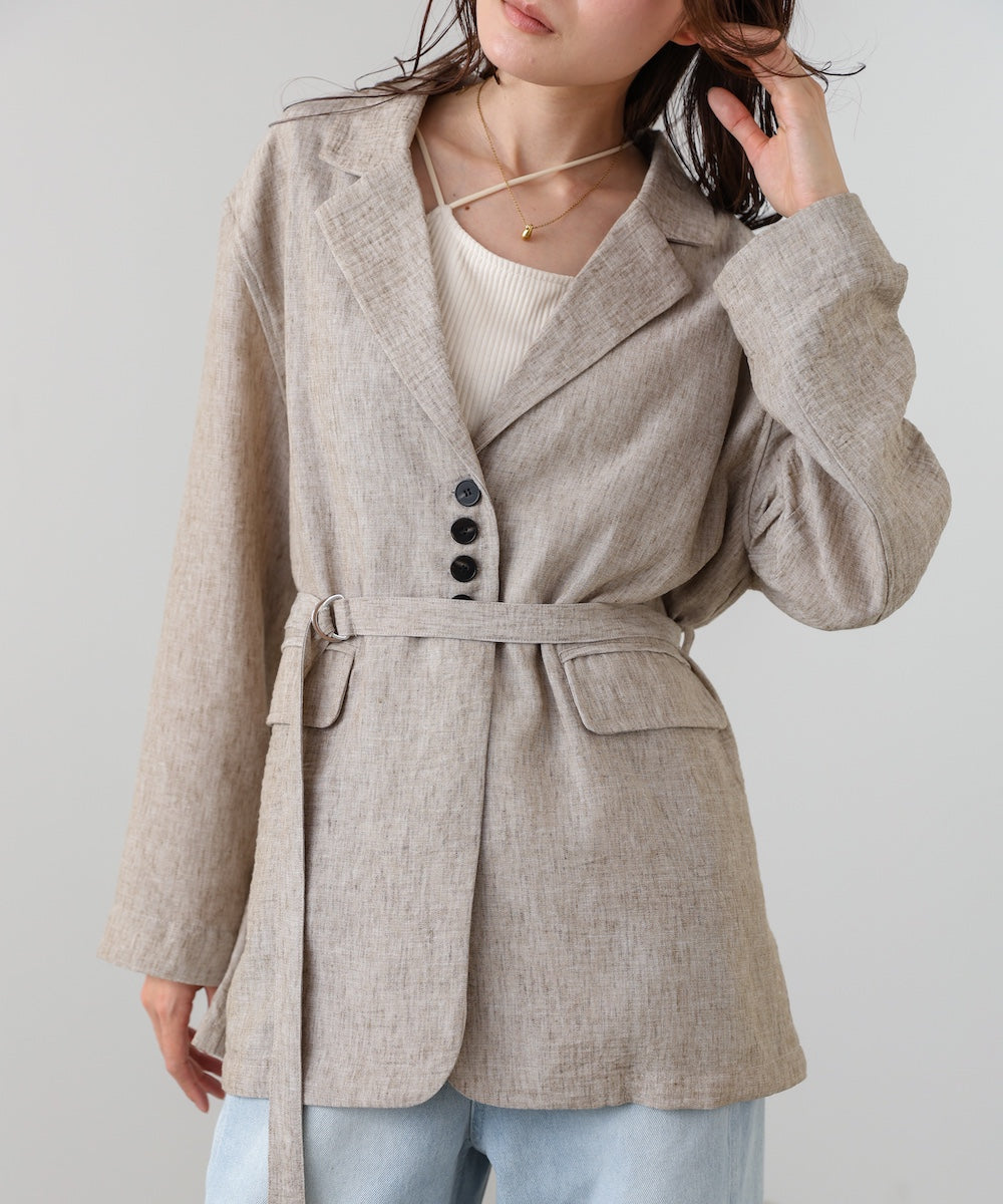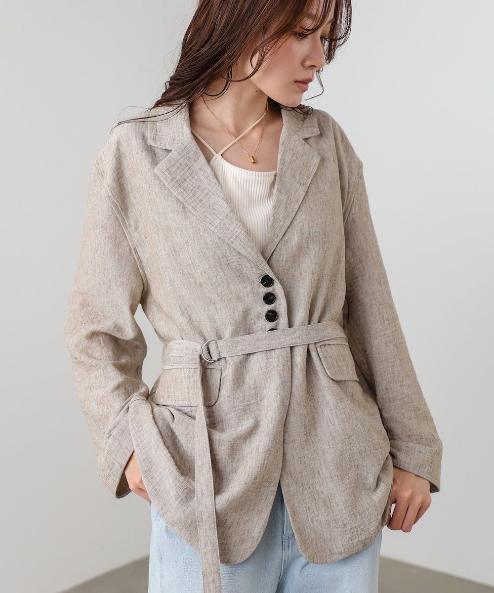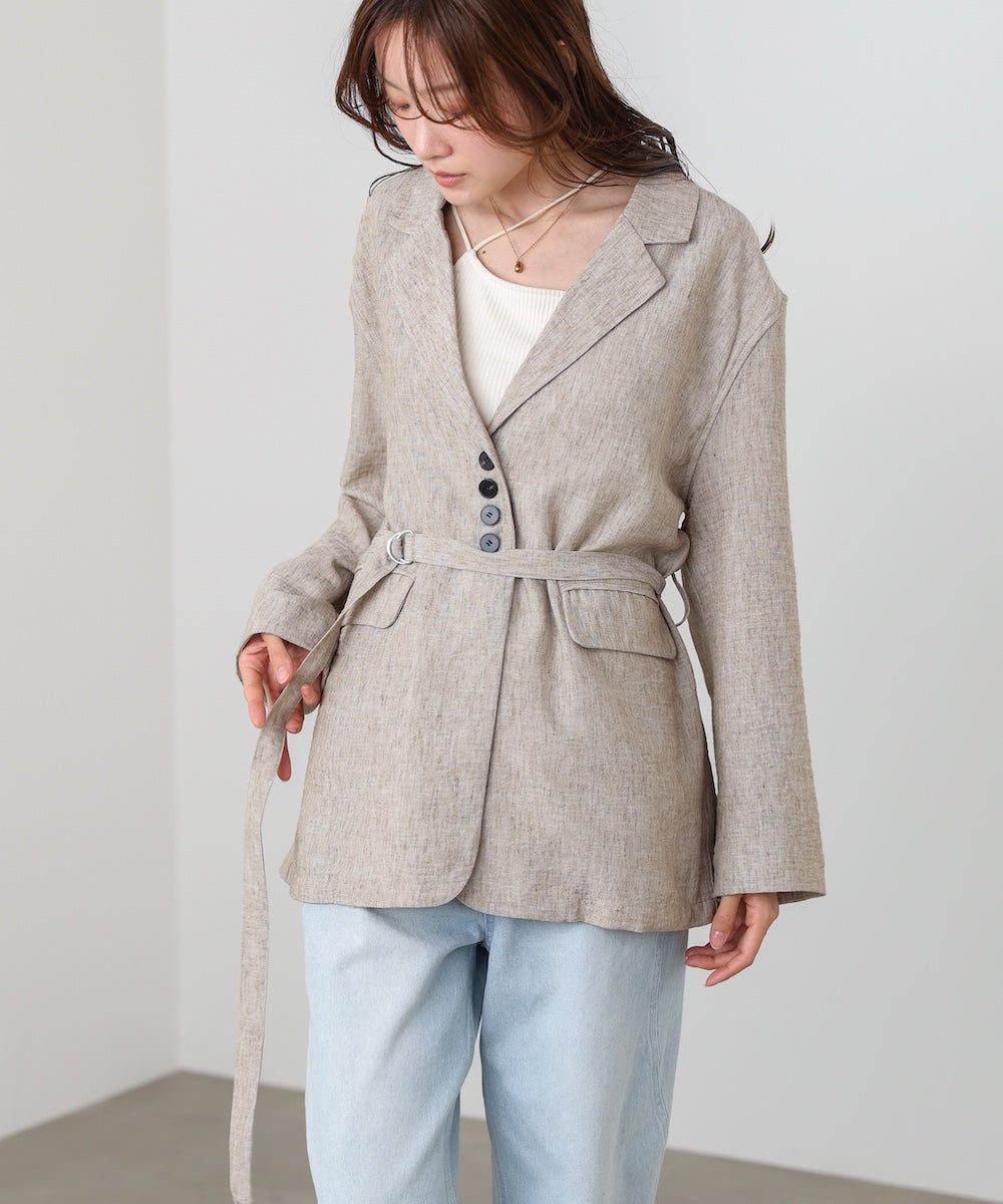 リネンライクな風合いが魅力の、ベルト付きジャケット。程よくゆとりのあるシルエットで、かっちりしすぎず抜け感のある着こなしが叶います。付属のベルトは腰に巻いてウエストマークしたり、ラフに垂らしてアクセントにしたりとアレンジ自在。羽織るだけでスタイリングが決まる、デイリーからお出かけまで活躍する一着です。