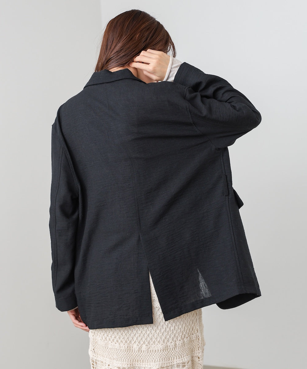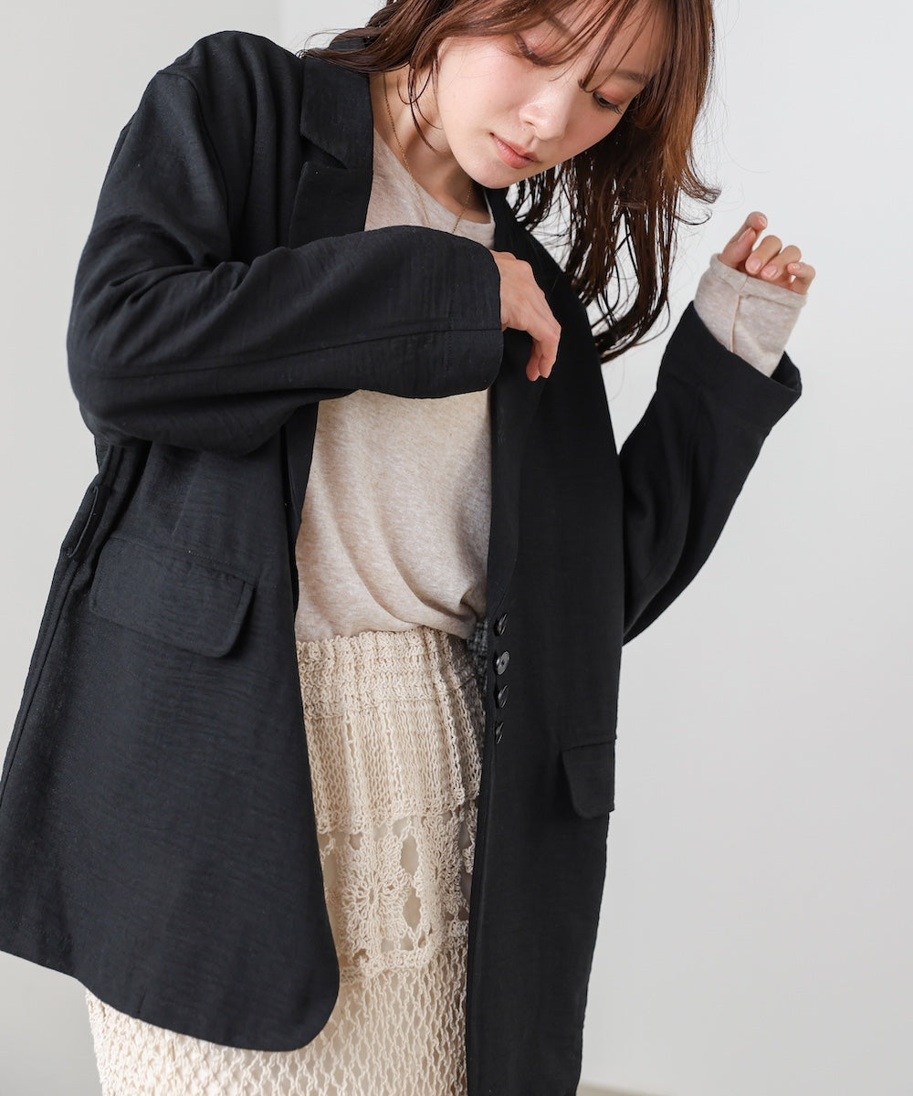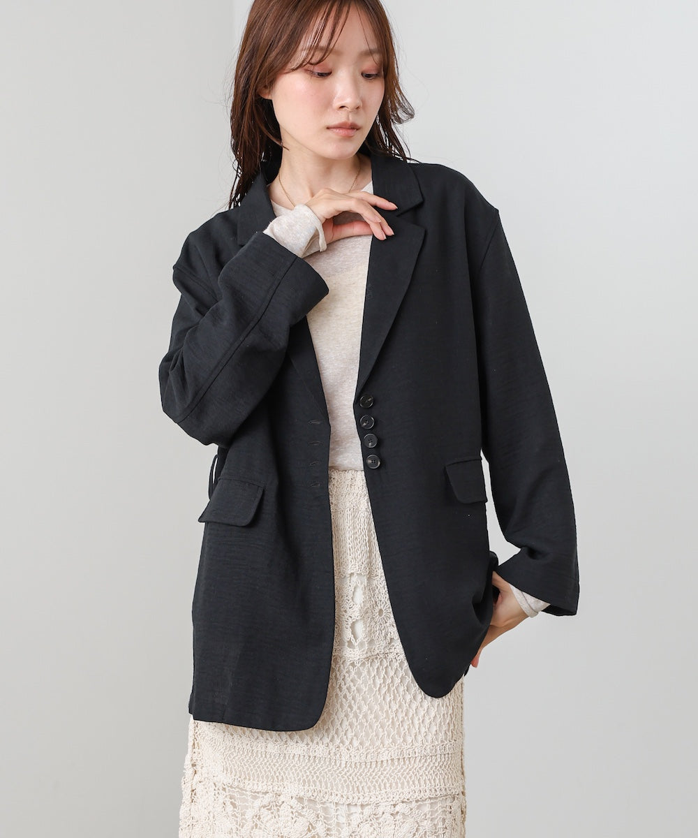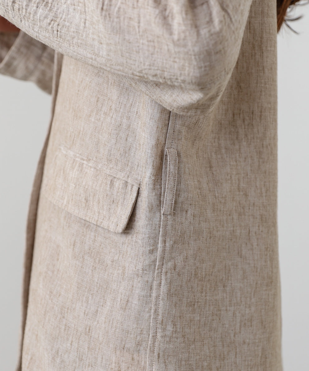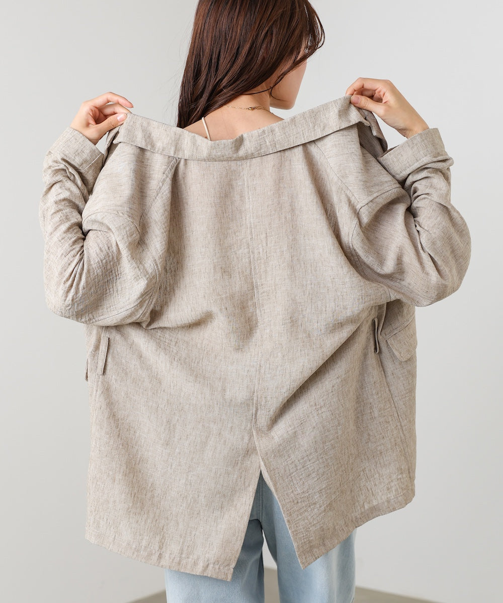 リネンライクな風合いが魅力の、ベルト付きジャケット。程よくゆとりのあるシルエットで、かっちりしすぎず抜け感のある着こなしが叶います。付属のベルトは腰に巻いてウエストマークしたり、ラフに垂らしてアクセントにしたりとアレンジ自在。羽織るだけでスタイリングが決まる、デイリーからお出かけまで活躍する一着です。