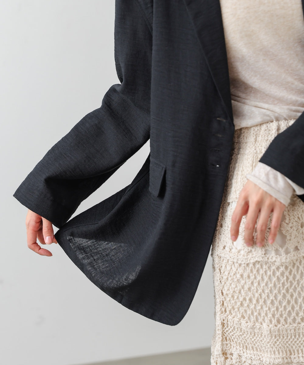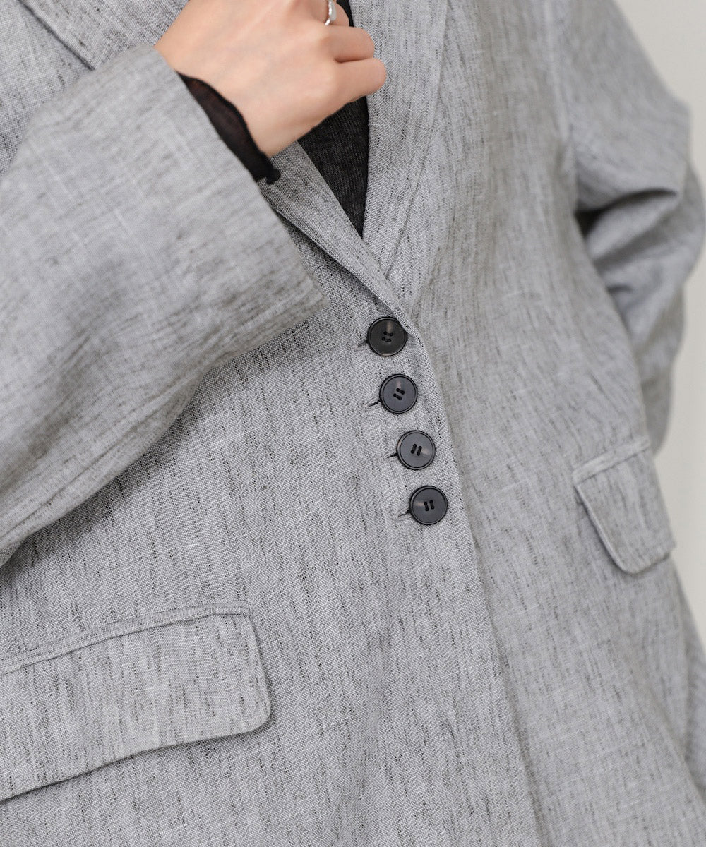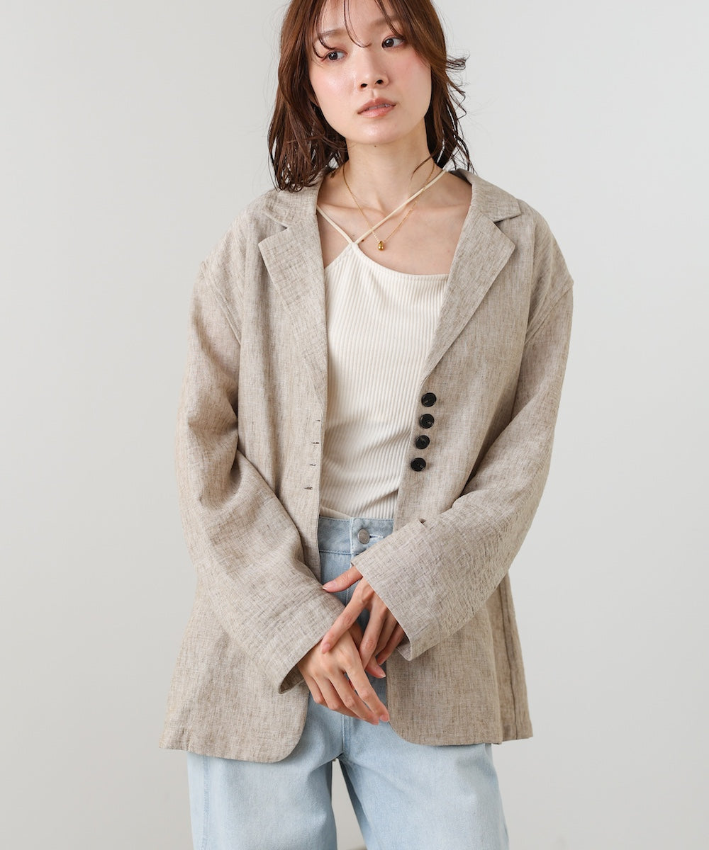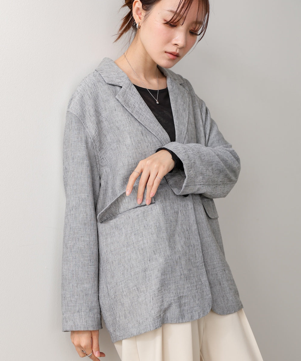 リネンライクな風合いが魅力の、ベルト付きジャケット。程よくゆとりのあるシルエットで、かっちりしすぎず抜け感のある着こなしが叶います。付属のベルトは腰に巻いてウエストマークしたり、ラフに垂らしてアクセントにしたりとアレンジ自在。羽織るだけでスタイリングが決まる、デイリーからお出かけまで活躍する一着です。