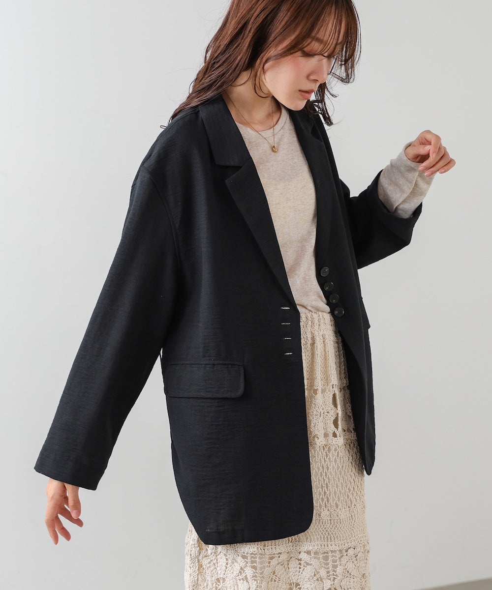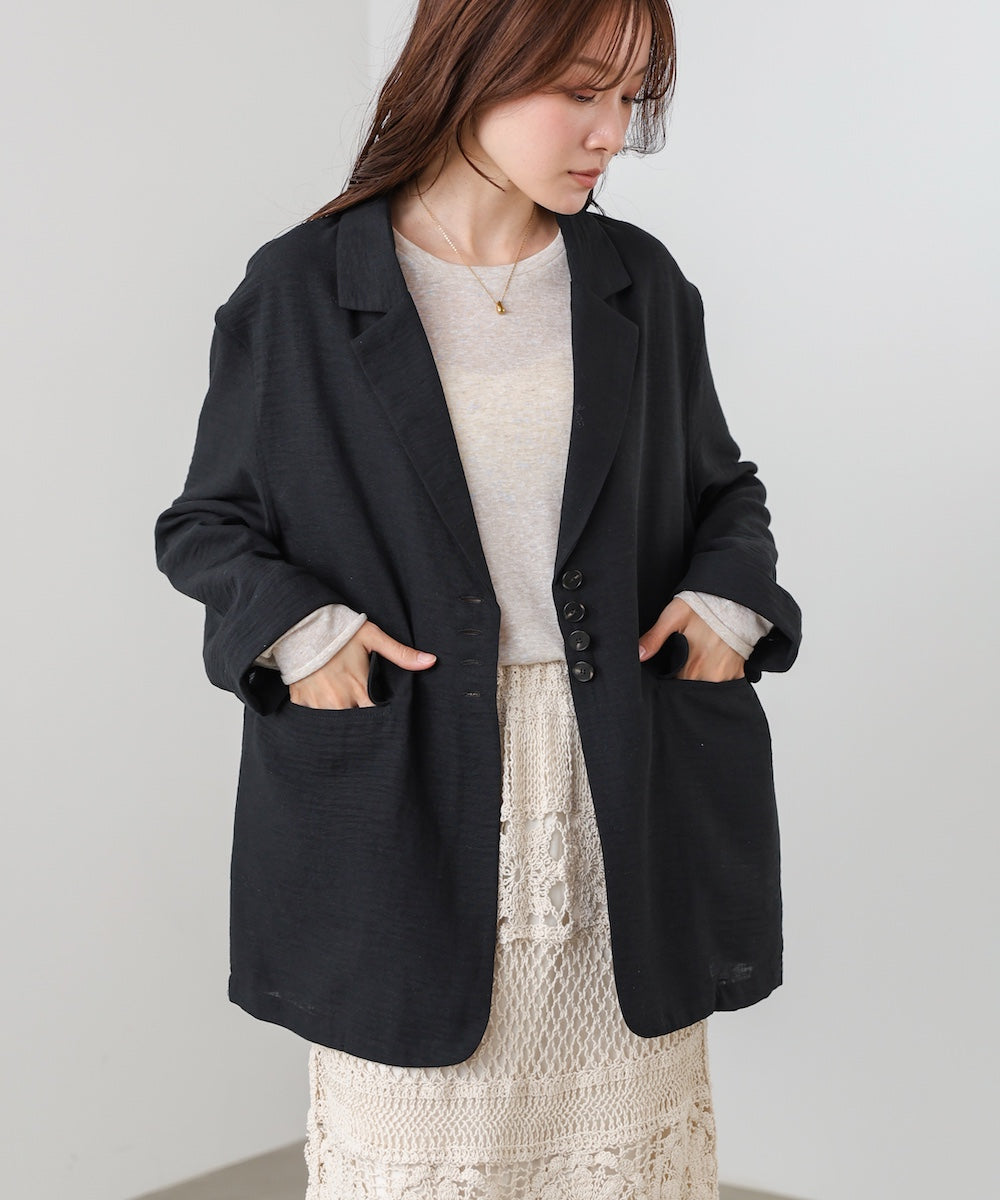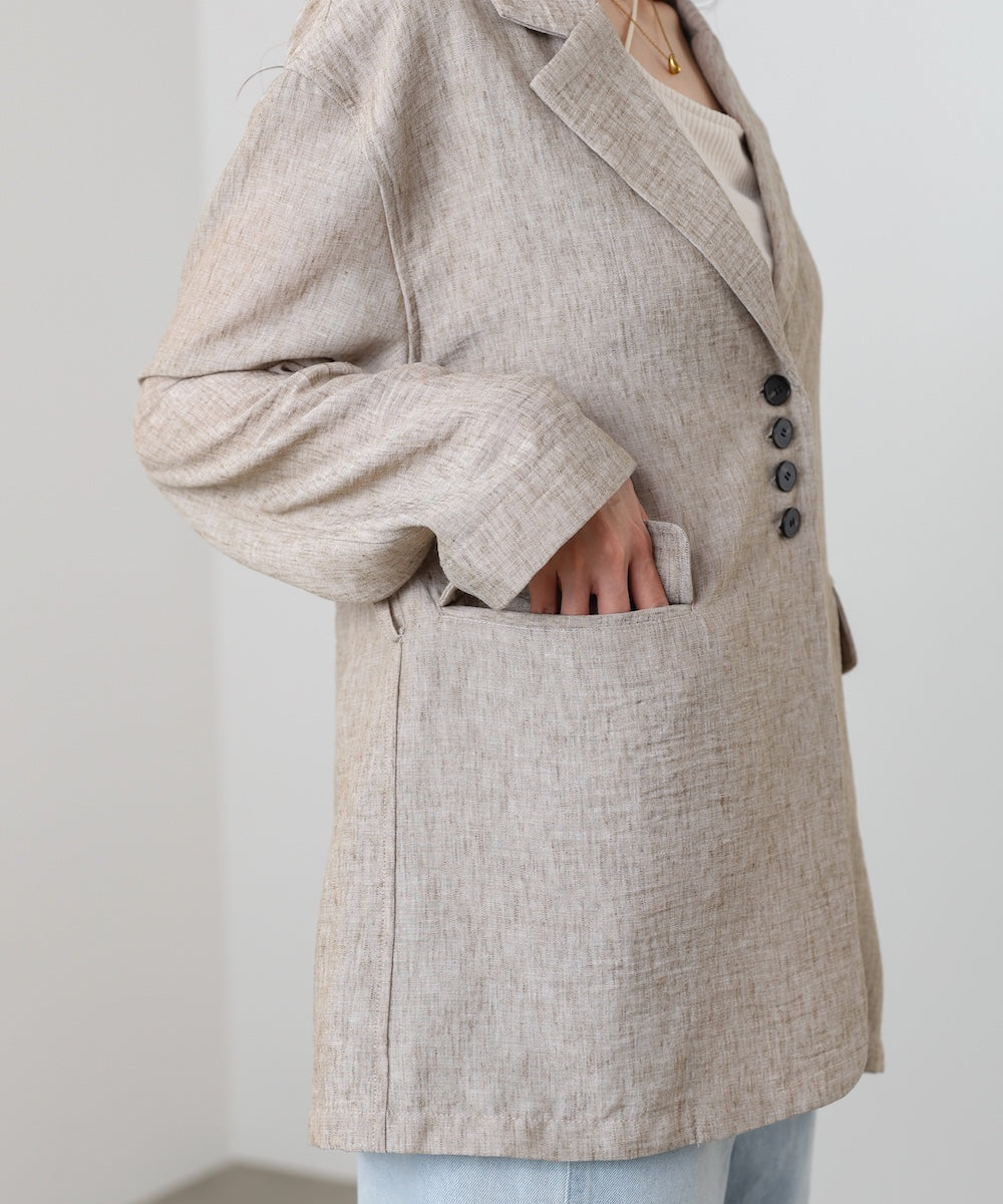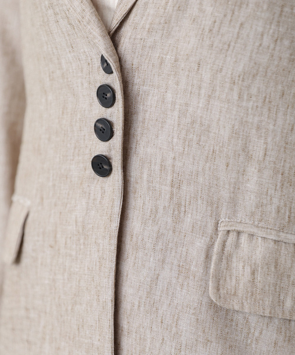 リネンライクな風合いが魅力の、ベルト付きジャケット。程よくゆとりのあるシルエットで、かっちりしすぎず抜け感のある着こなしが叶います。付属のベルトは腰に巻いてウエストマークしたり、ラフに垂らしてアクセントにしたりとアレンジ自在。羽織るだけでスタイリングが決まる、デイリーからお出かけまで活躍する一着です。