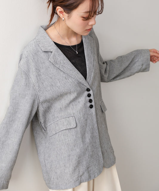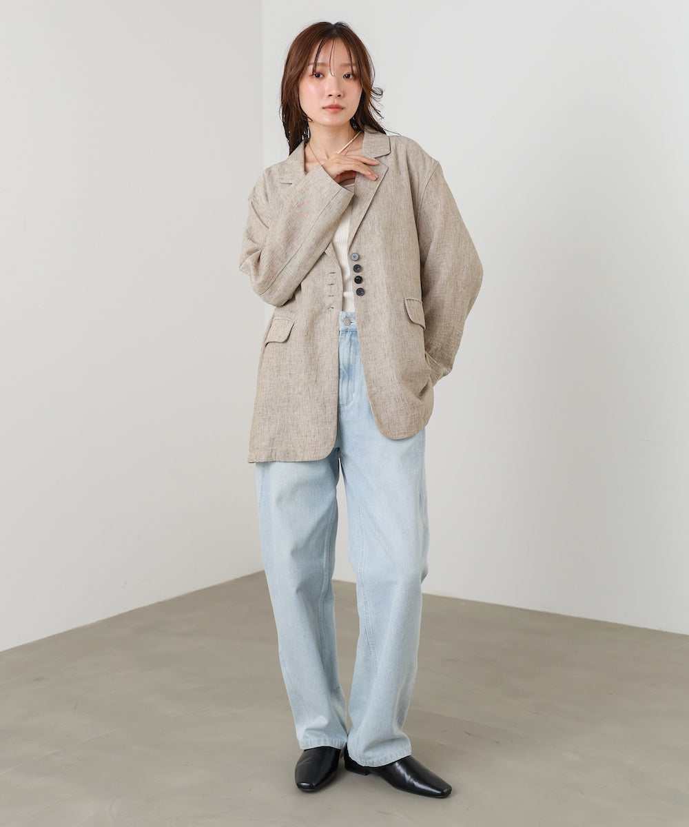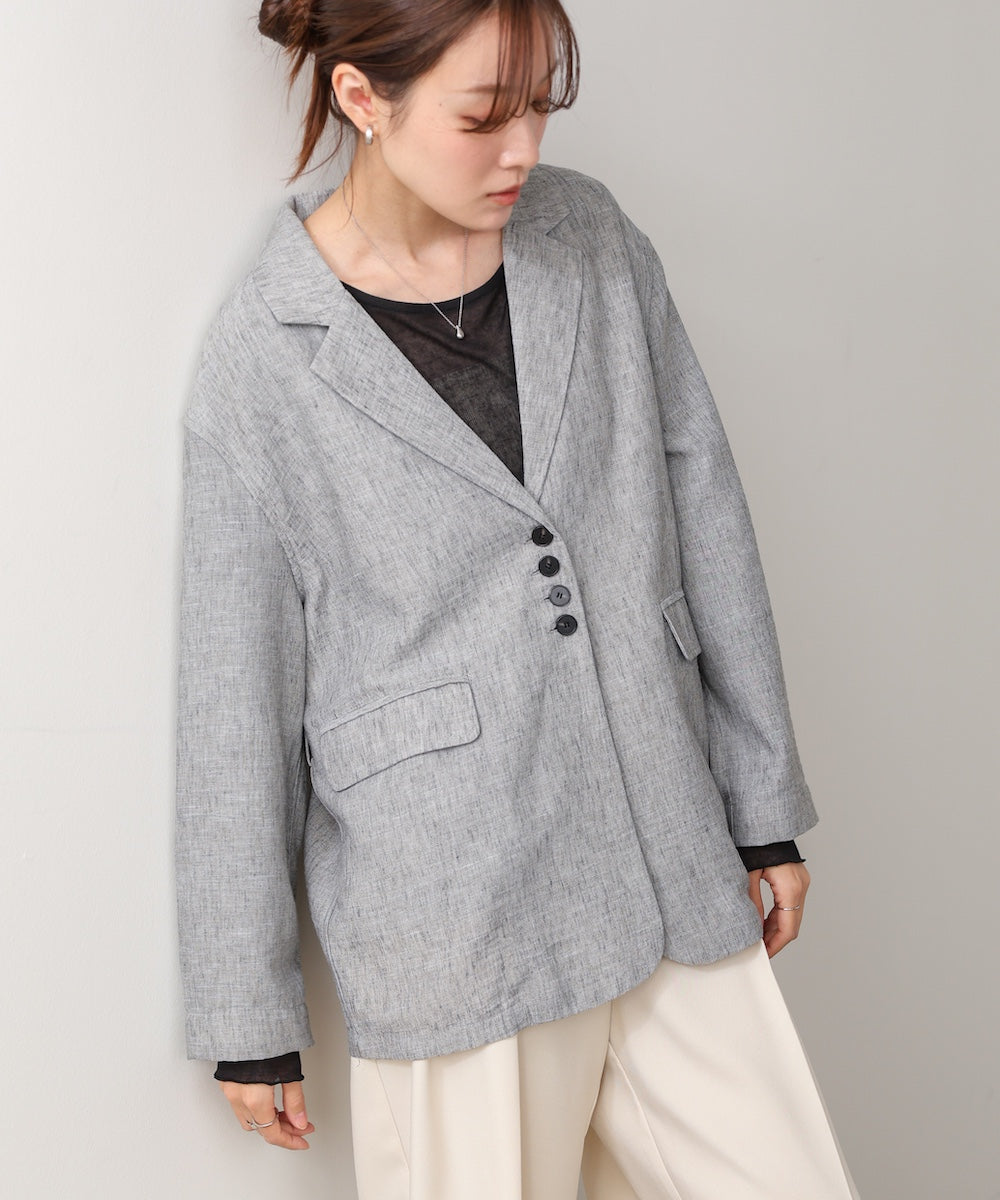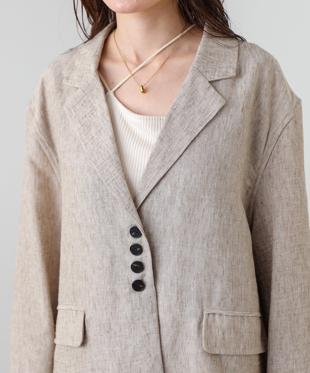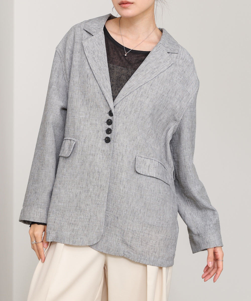 リネンライクな風合いが魅力の、ベルト付きジャケット。程よくゆとりのあるシルエットで、かっちりしすぎず抜け感のある着こなしが叶います。付属のベルトは腰に巻いてウエストマークしたり、ラフに垂らしてアクセントにしたりとアレンジ自在。羽織るだけでスタイリングが決まる、デイリーからお出かけまで活躍する一着です。
