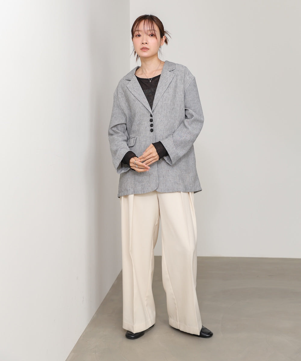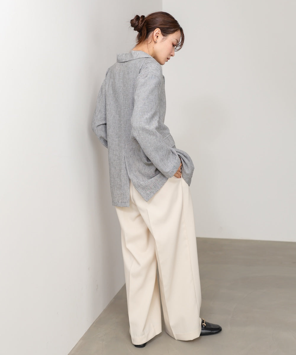 軽やかでシワになりにくく、リネンのようなナチュラルな表情を楽しめます。ロングシーズン着用しやすく、デイリー使いにもおすすめです。