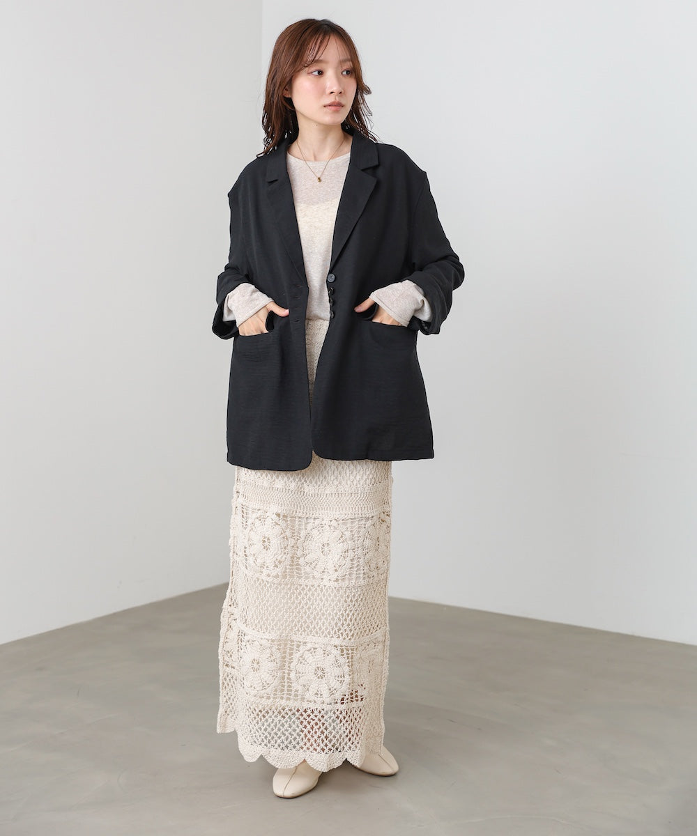 スラックスやタイトスカートと合わせて、ベルトを巻いたきれいめスタイルがおすすめ。デニムやロゴTの上からさらっと羽織れば、こなれ感のある大人カジュアルに。ワンピースの上に羽織って、ベルトでシルエットにメリハリをつけるのも◎