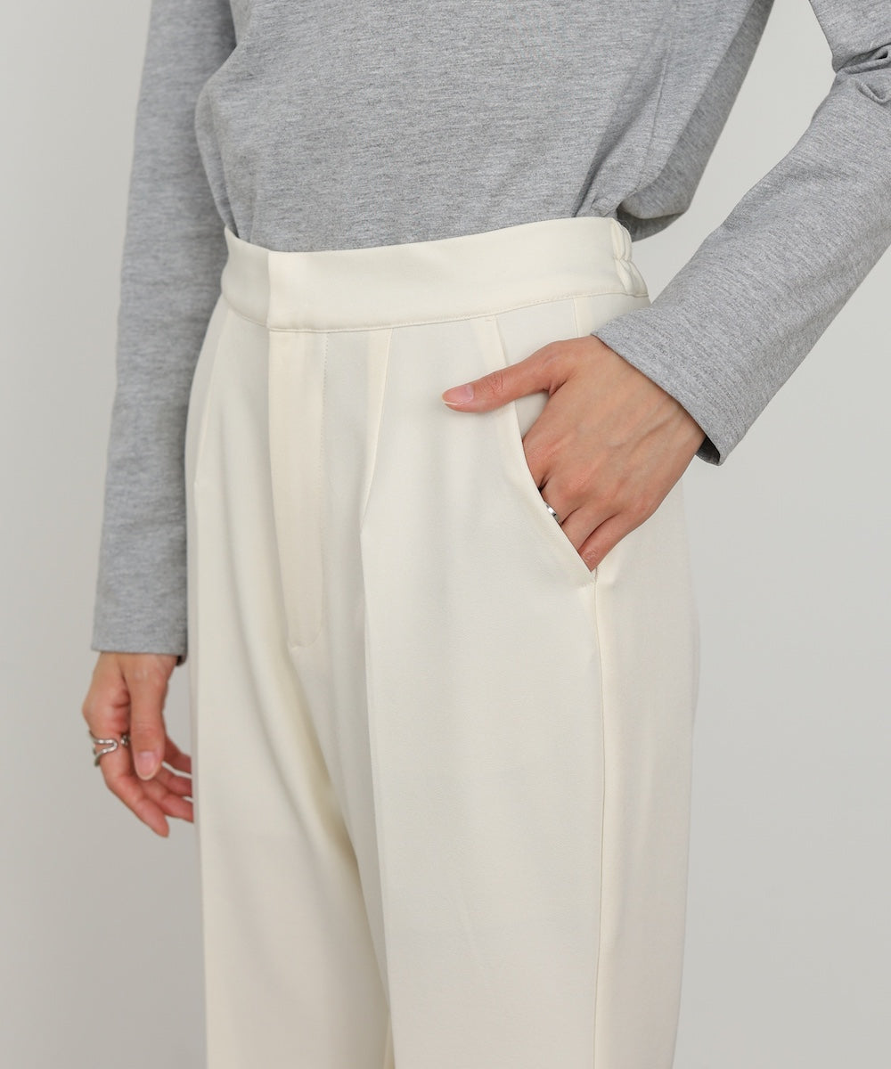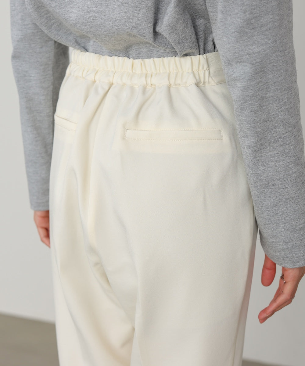 程よくハリ感のあるストレッチツイル素材を使用。ポリエステルベースでシワになりにくく、ポリウレタン混でしっかり伸びるため動きやすさも◎アイボリーのみ裏地付きなので、透け感を気にせず安心して着用いただけます。ロングシーズン活躍する、扱いやすい素材感です。