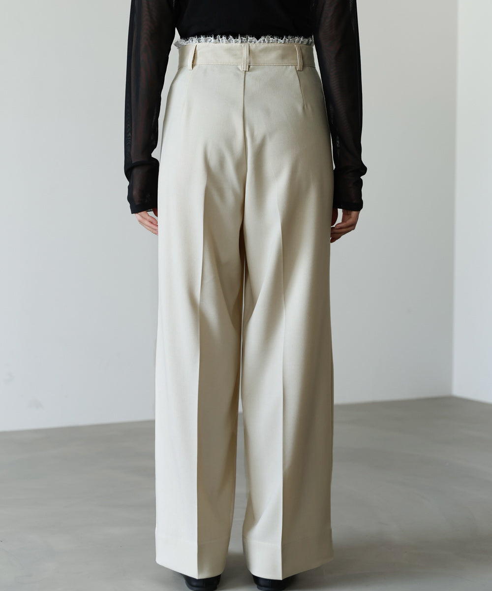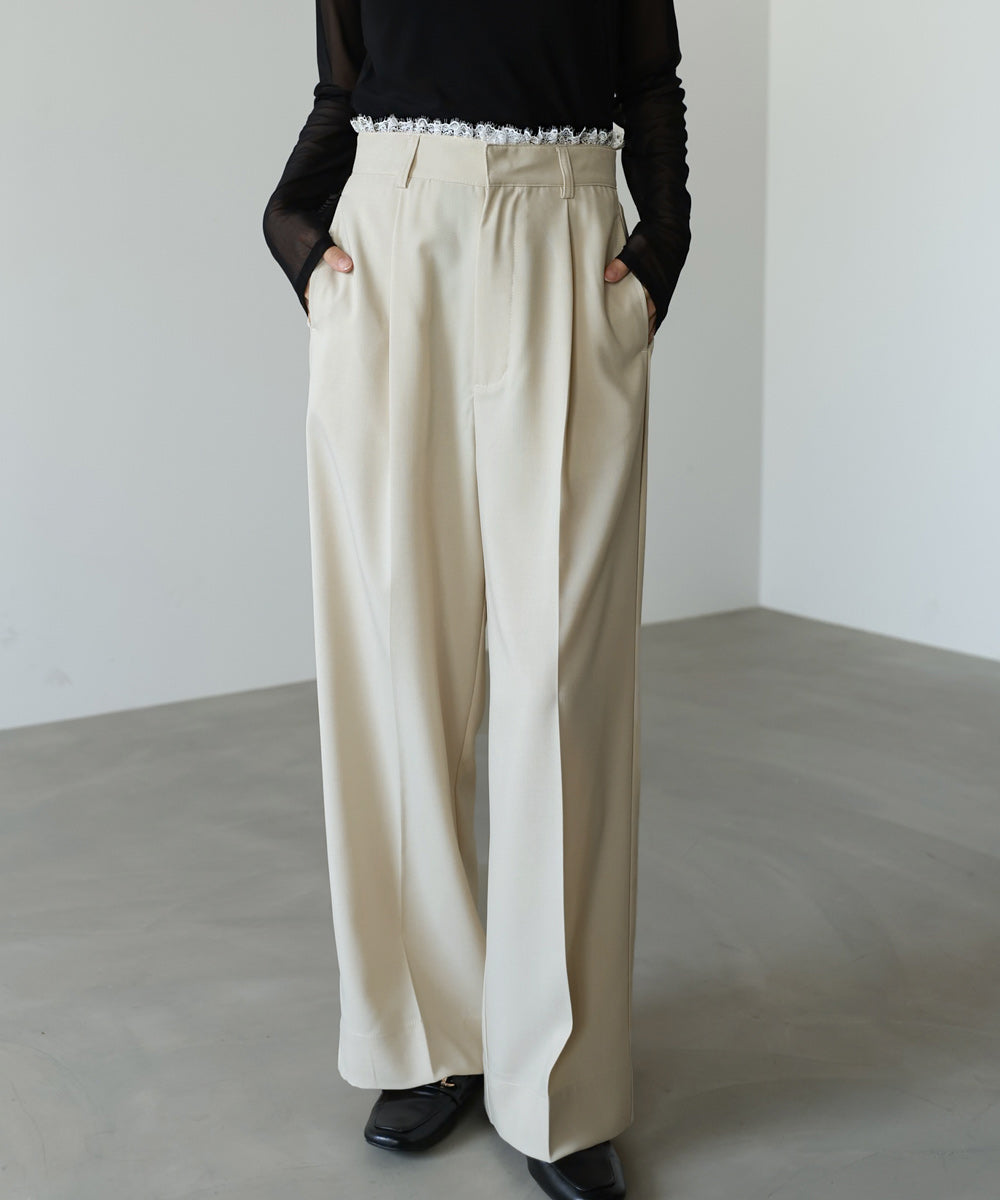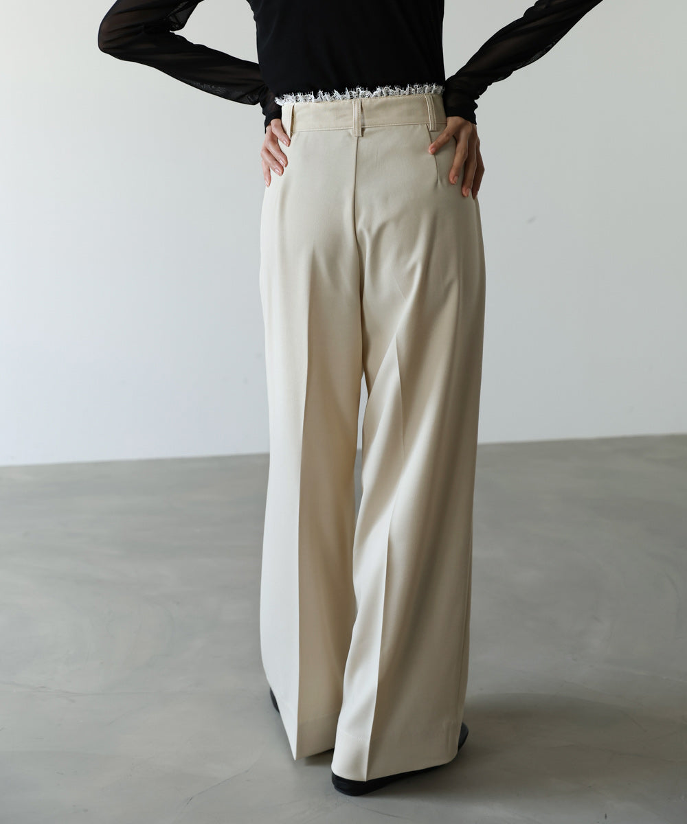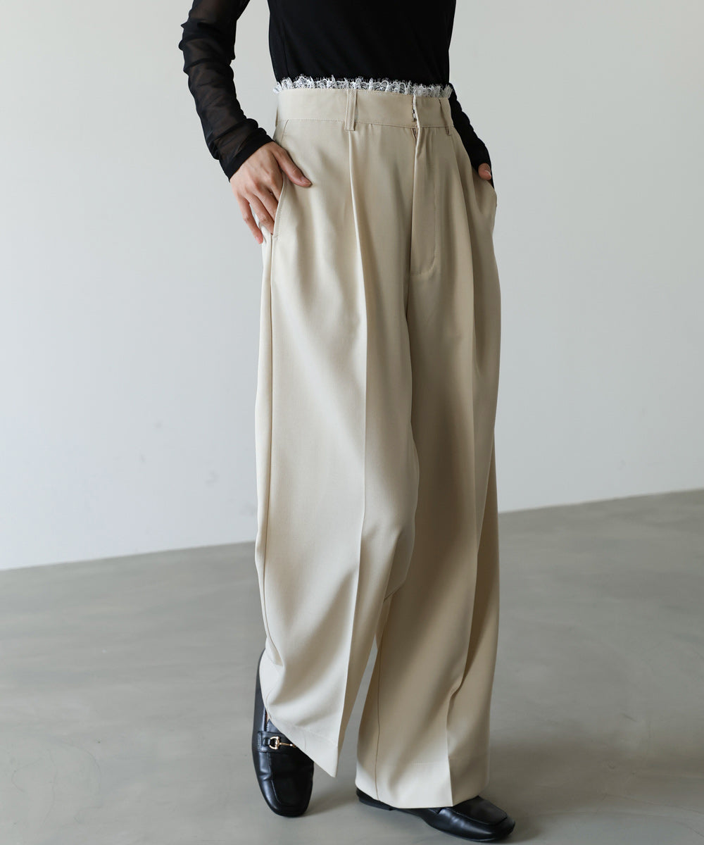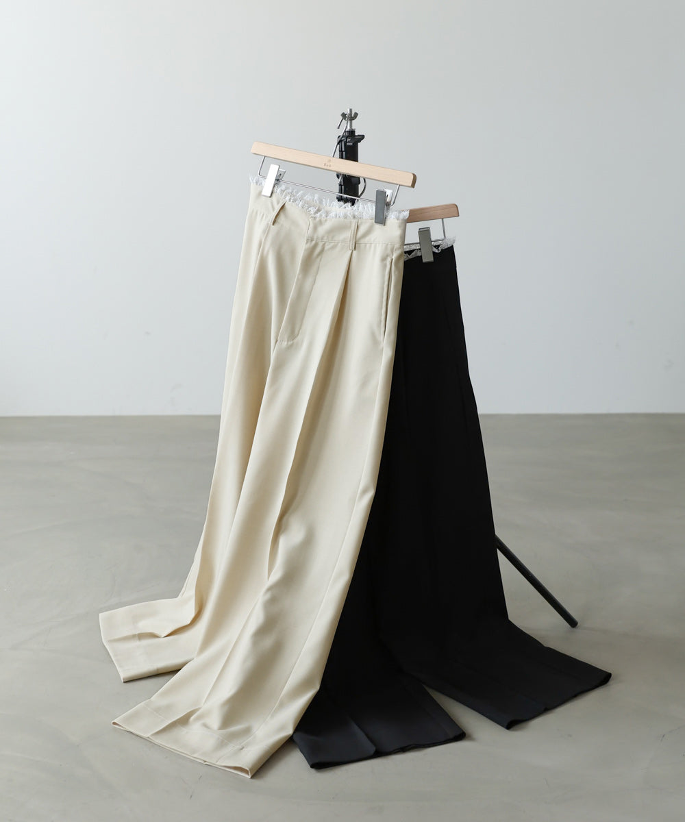 ウエストのレースフリルが目を惹く、上品さと華やかさを兼ね備えたパンツ。シンプルなシルエットに繊細なディテールをプラスすることで、さりげなく女性らしさを引き立ててくれます。トップスをインした際に映えるデザインで、スタイリングにアクセントを添えてくれる一着。サイズ展開も豊富で、自分に合ったシルエットを選べるのも嬉しいポイントです。