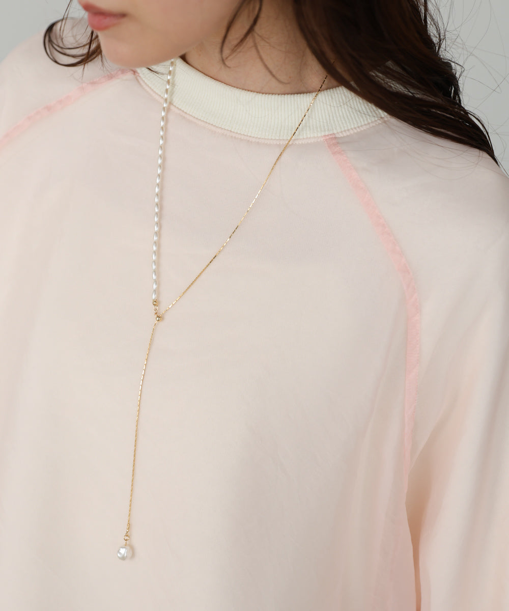 変形パール×ロングチェーンネックレス