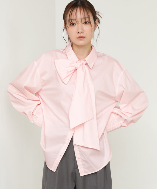 袖タックボウタイリボン付ブラウス