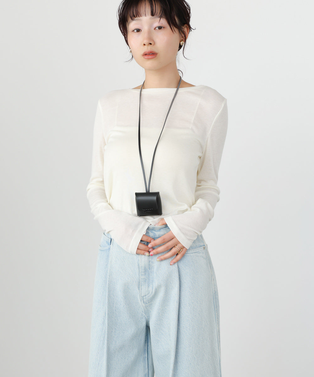 ミニマルなスクエアポーチが目を惹く、ポーチ付きネックレス。華奢なコードにコンパクトなポーチを合わせたデザインで、スタイリングにさりげないモード感をプラスしてくれます。無駄を削ぎ落としたシンプルさが、大人カジュアルにちょうどいいバランス。Tシャツやワンピースに合わせるだけで、コーデがぐっと今っぽい印象に仕上がります。アクセサリー感覚で取り入れられる、旬なプラスワンアイテムです。