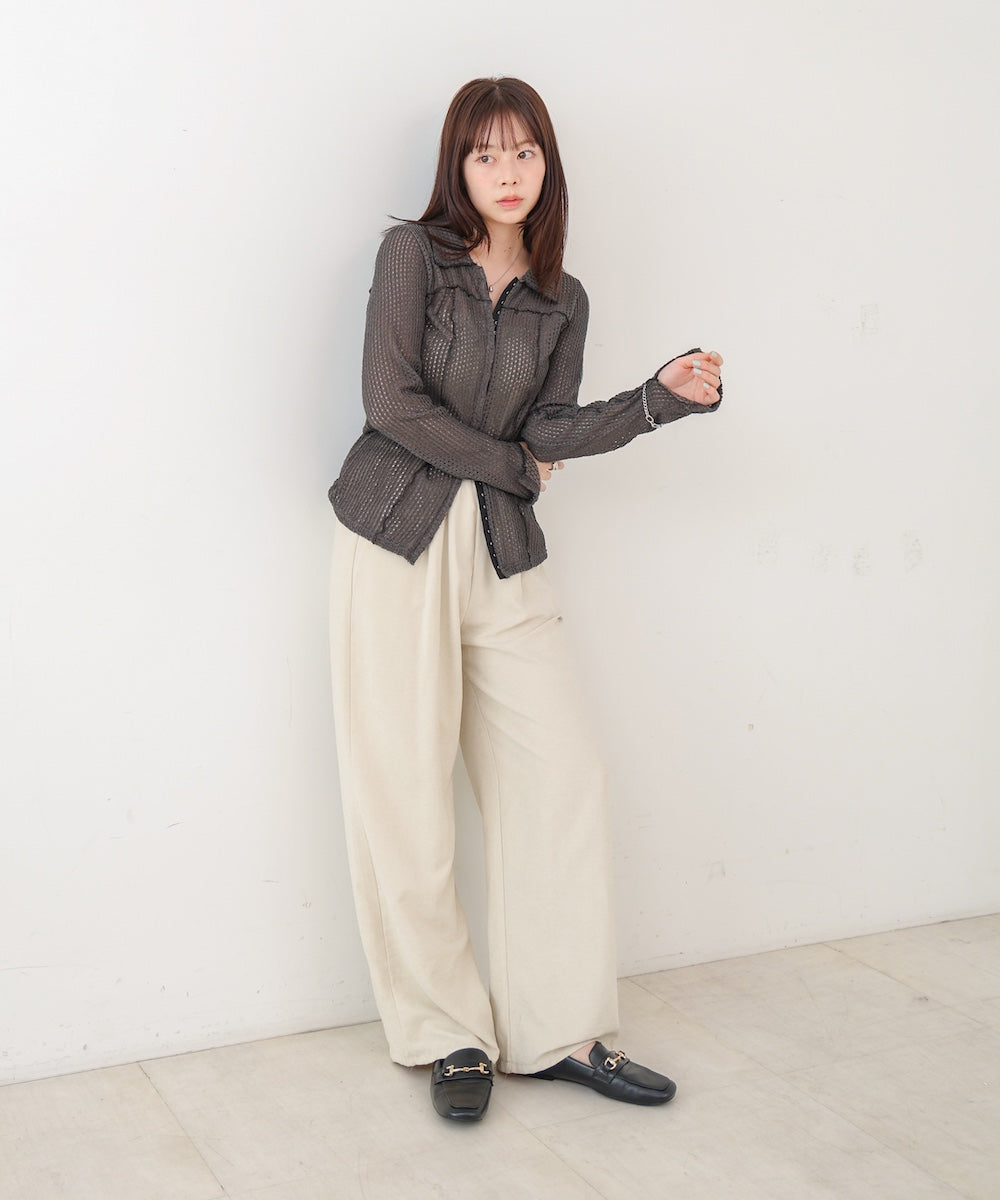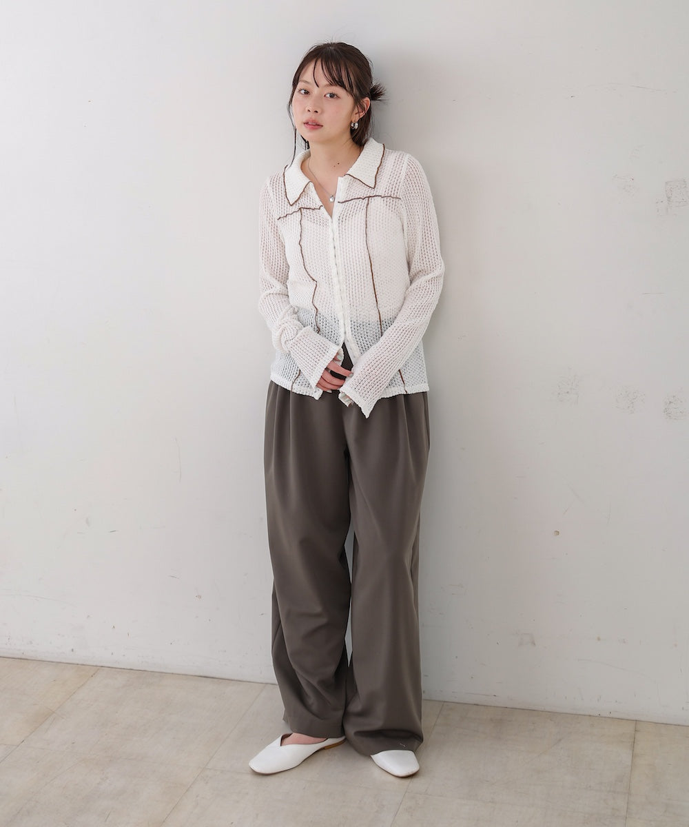 スラックスなどと合わせてオフィスカジュアルっぽいスタイリングがおすすめです。あえてリラックスパンツと合わせても楽ちんだけどしっかり感はあるコーデが仕上がります。