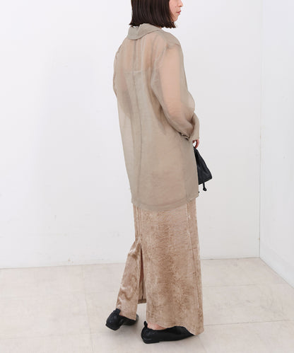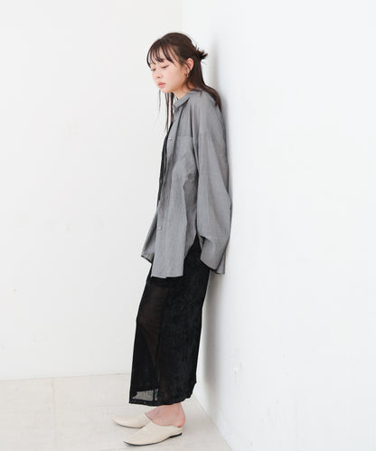 Mサイズを着用しました。くるぶし下までのベーシックなロング丈です!裾に少し透け感があるので、ロングたけでも重くならず抜け感が出ました。シンプルで重ね着がしやすく重宝しそうです!