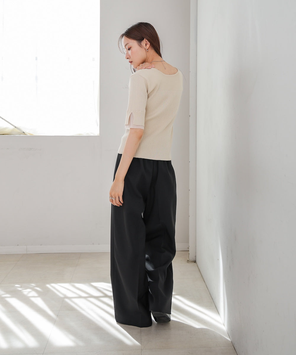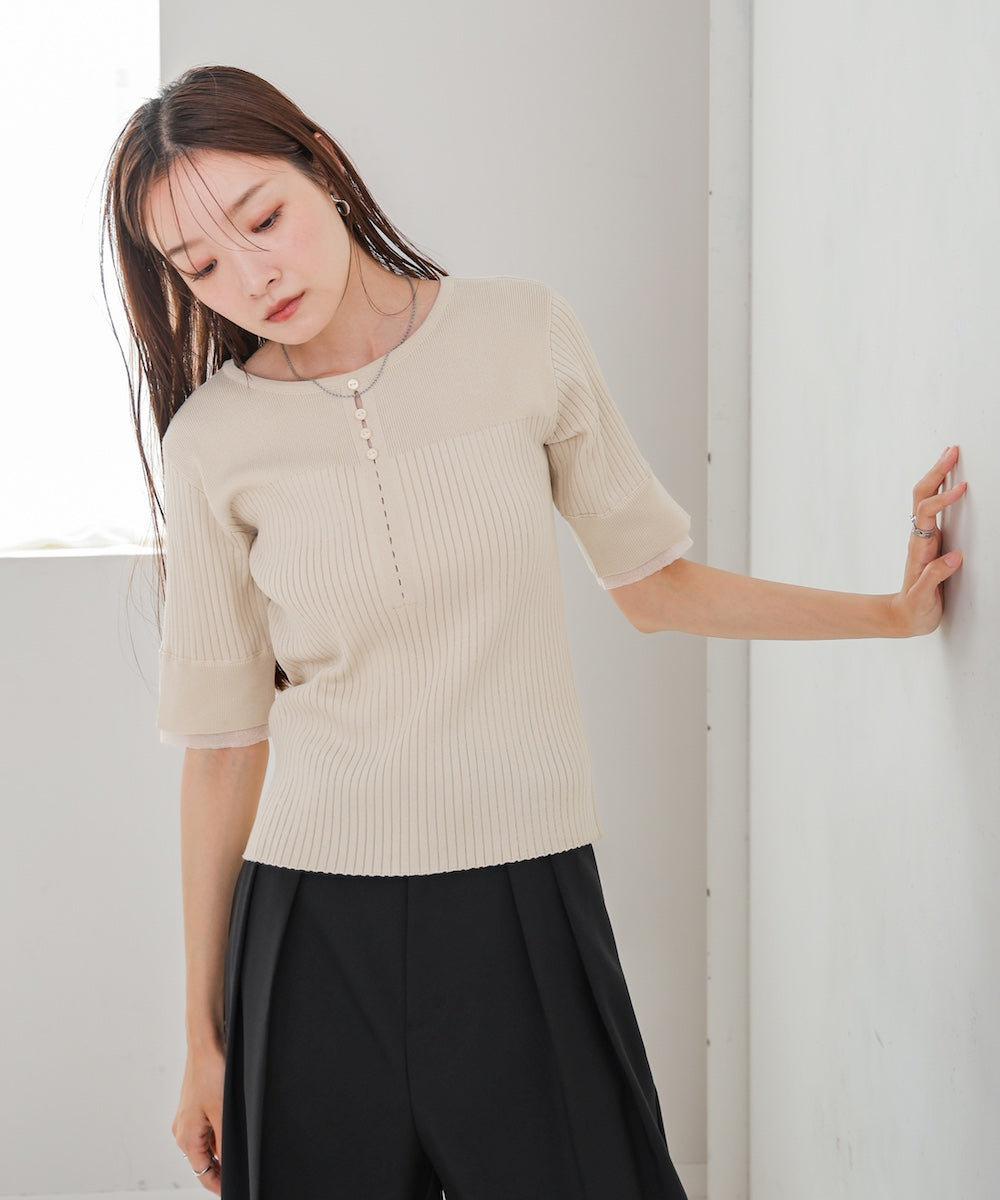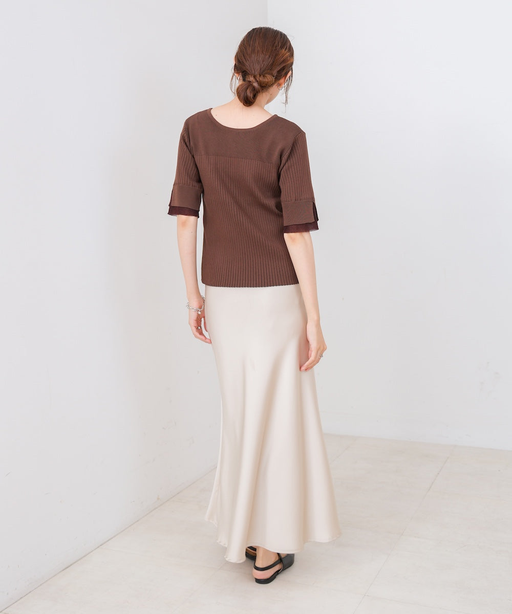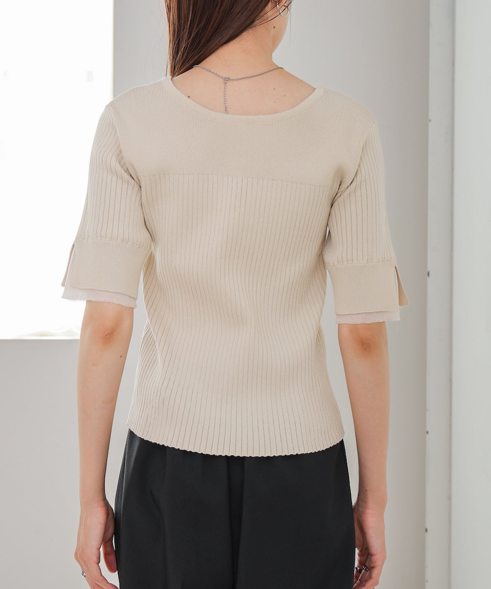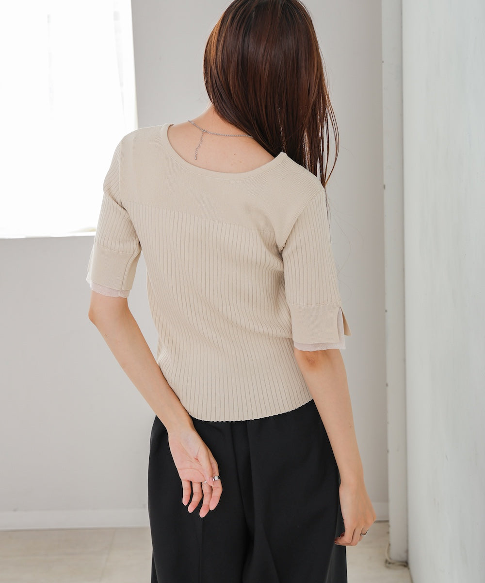 【選べるネック】チュールレイヤードリブニット