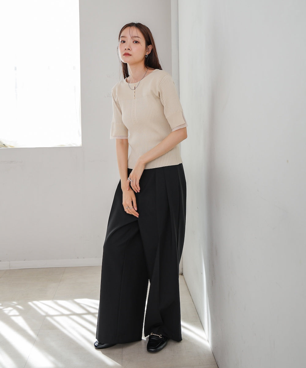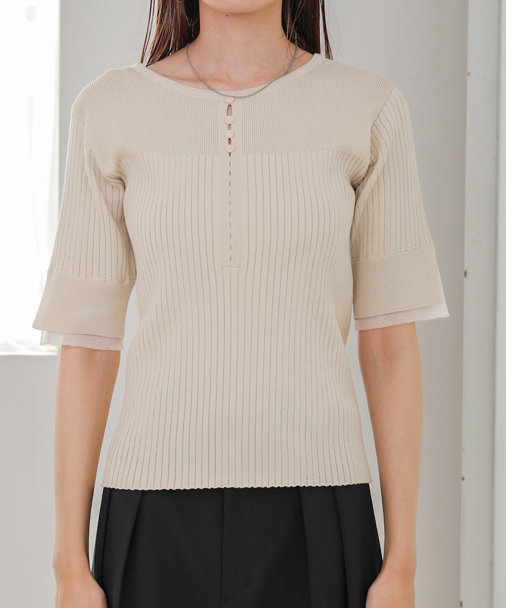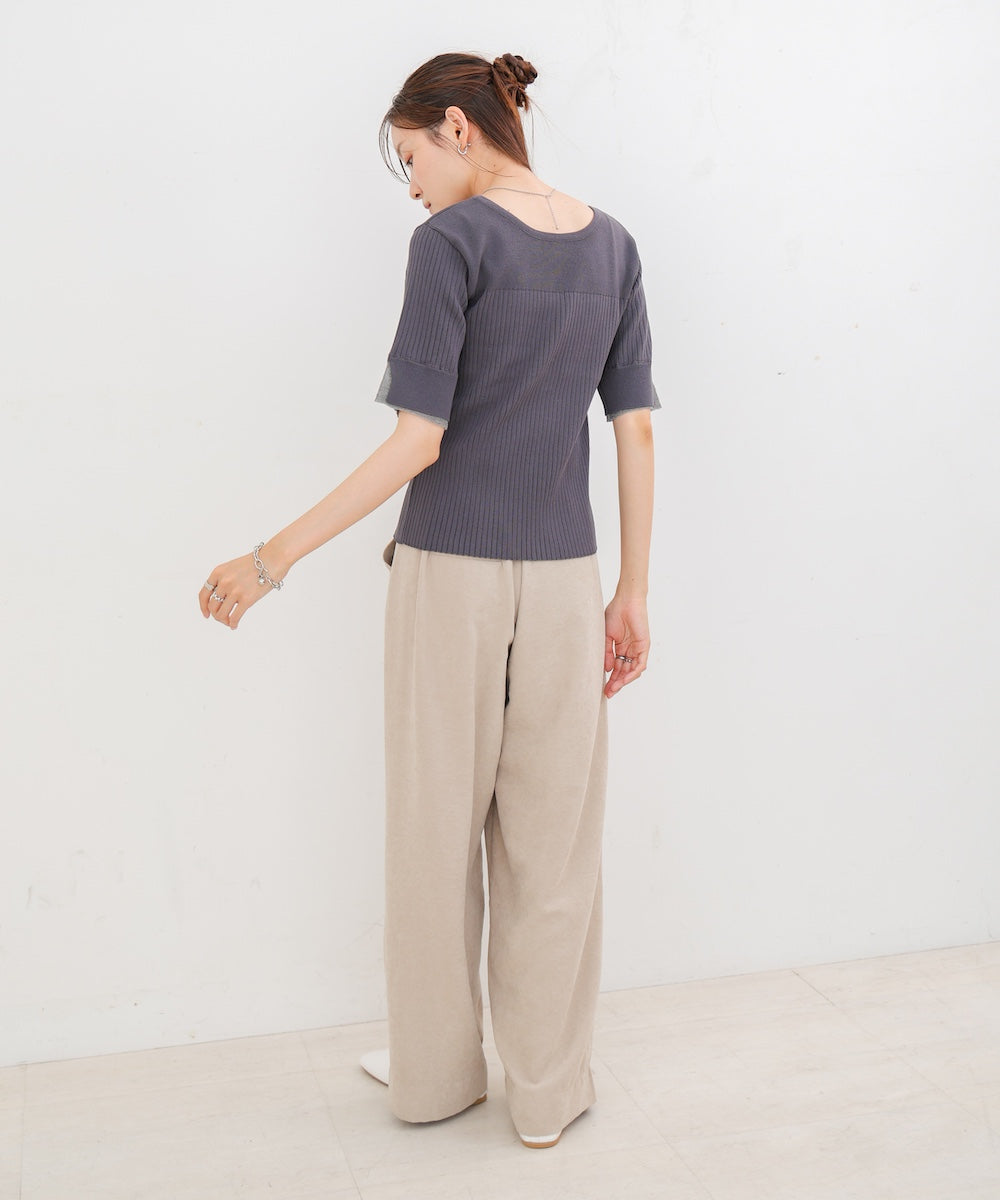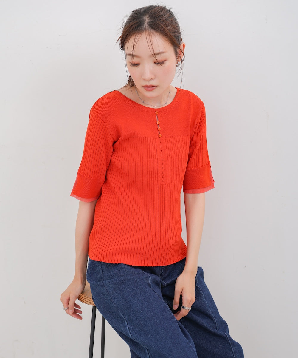 【選べるネック】チュールレイヤードリブニット