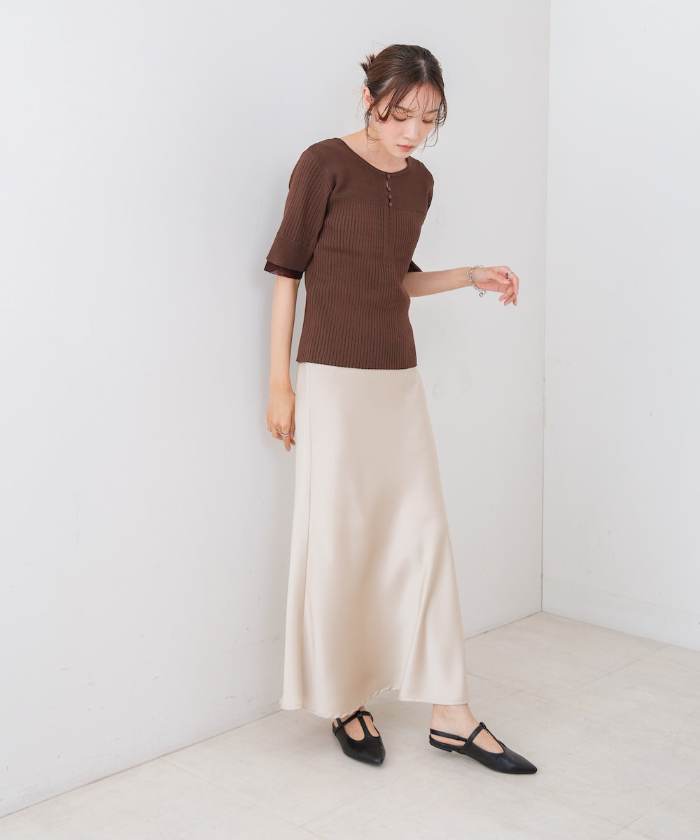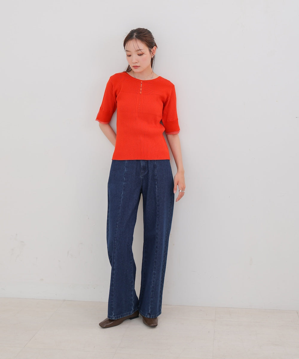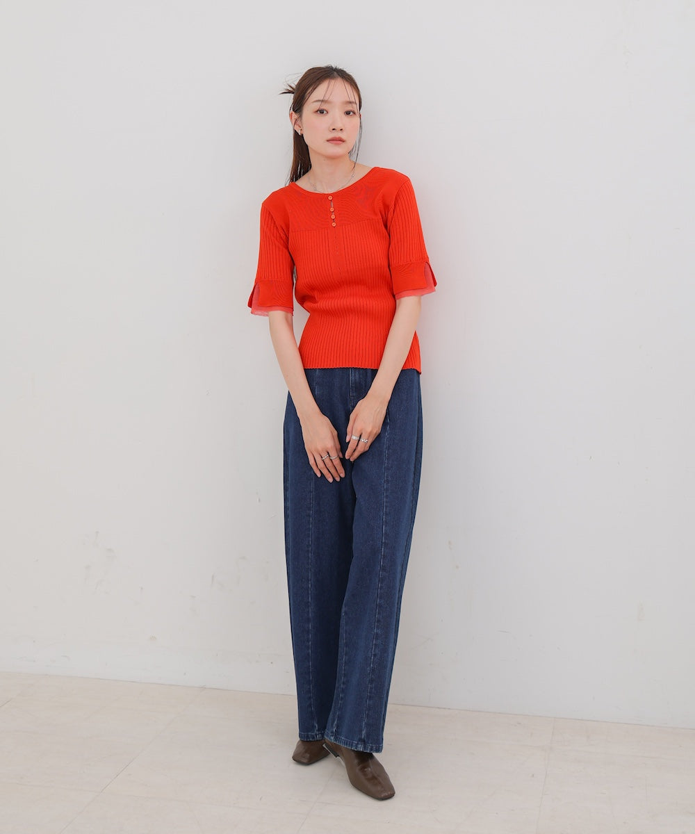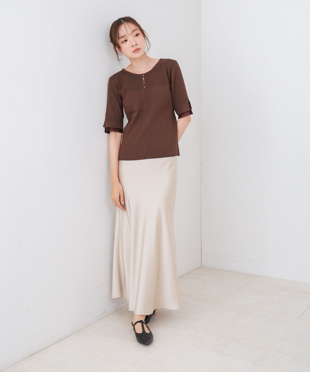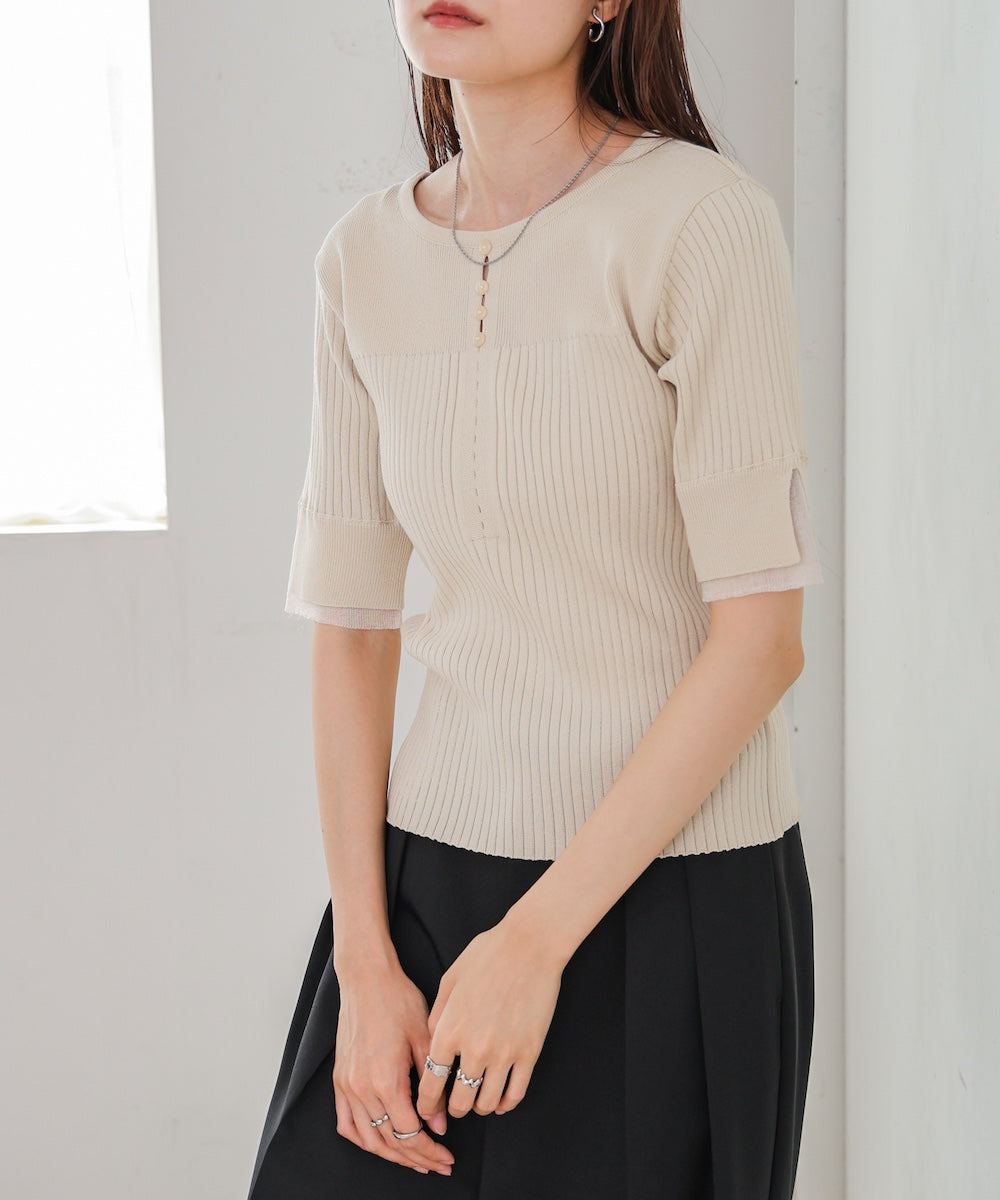 【選べるネック】チュールレイヤードリブニット