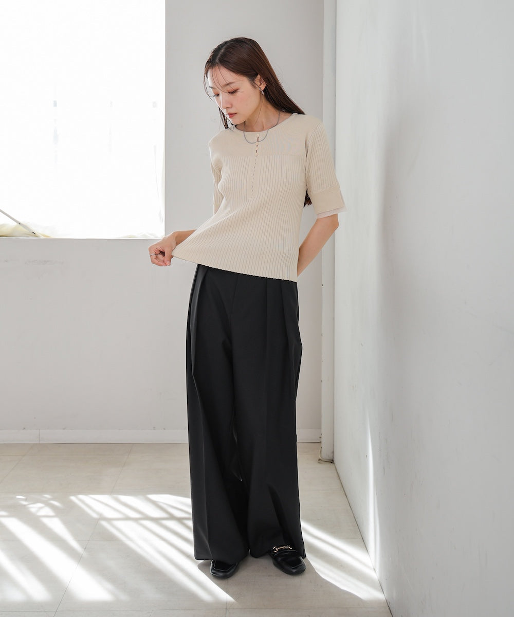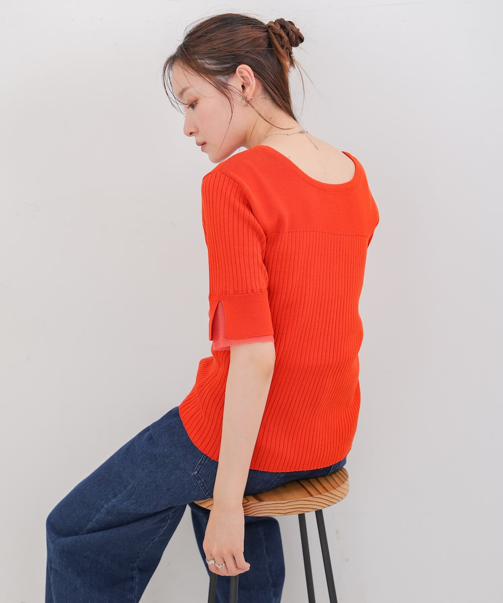 襟付きリブ切替サイドドロストニットトップス
