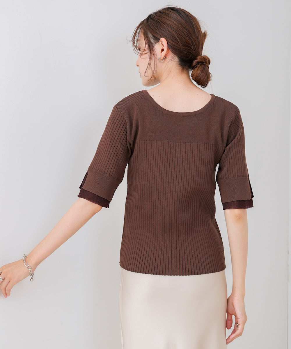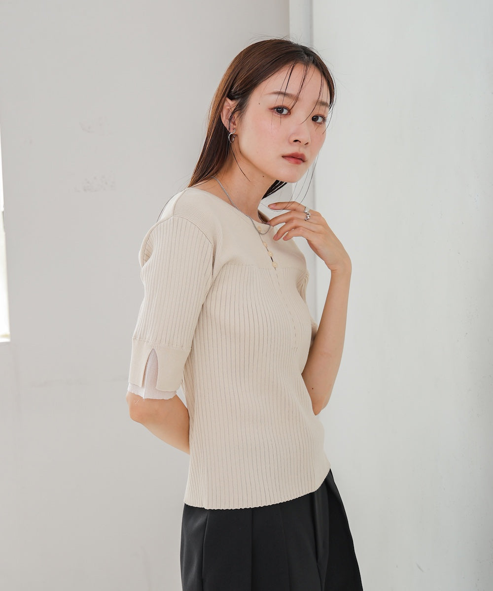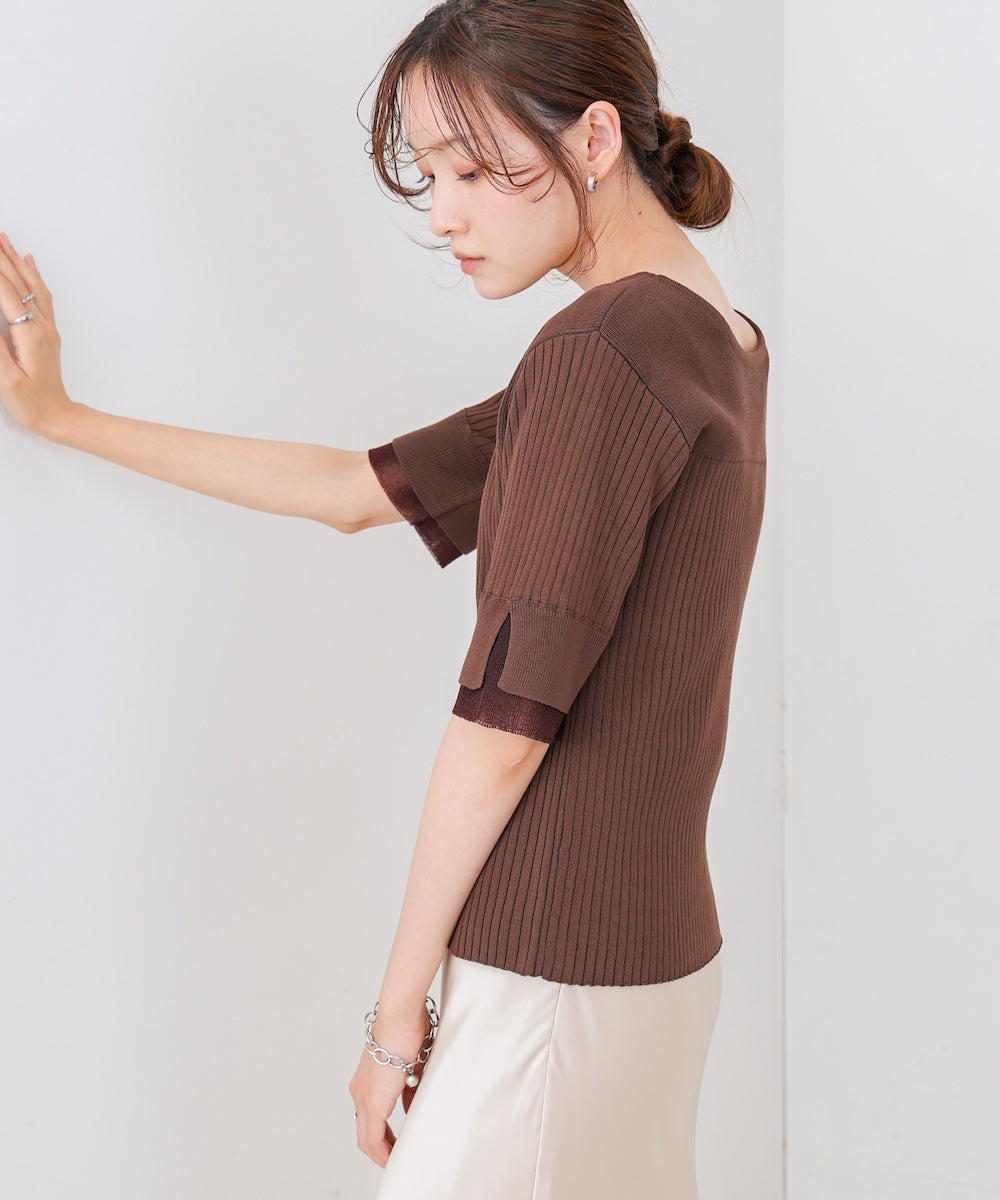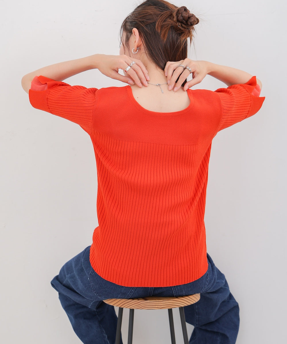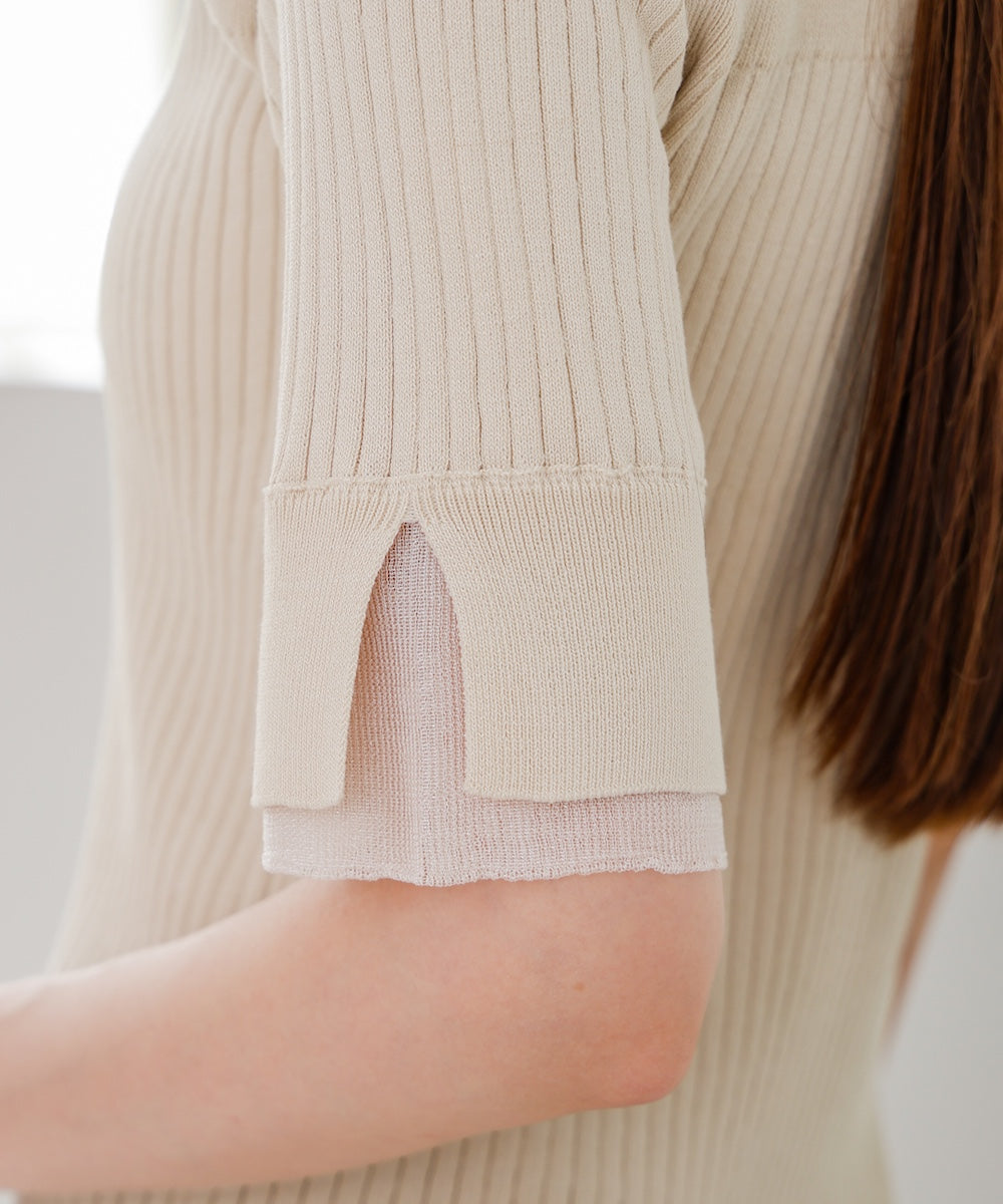 【選べるネック】シアー使いリブニットトップス