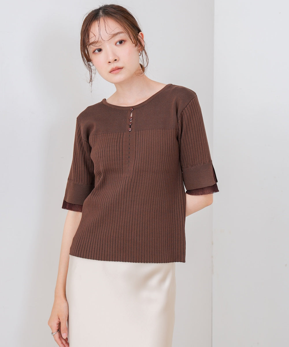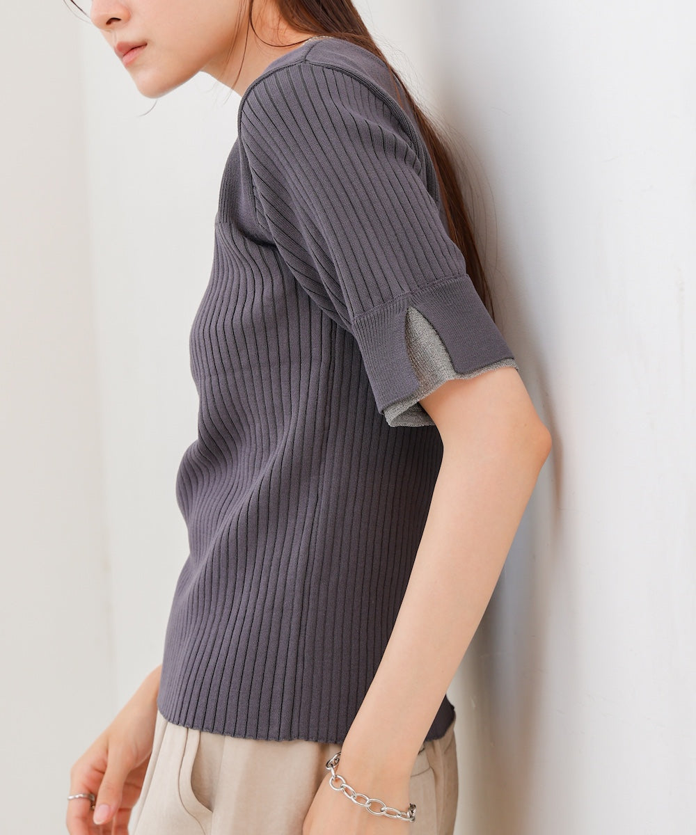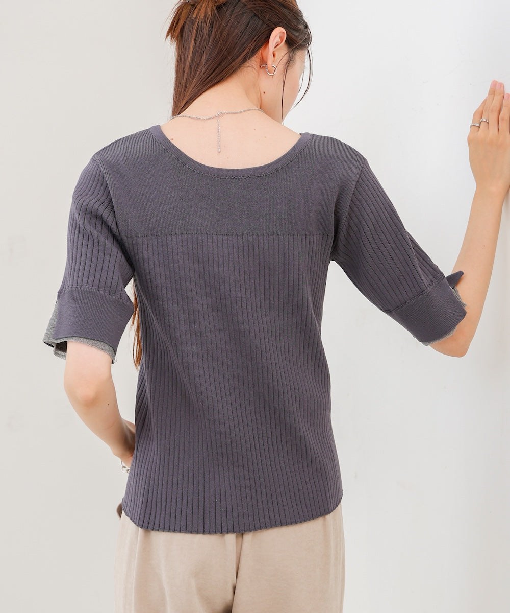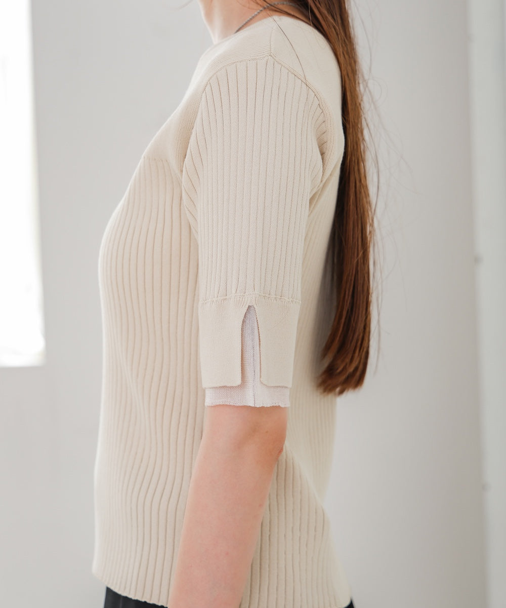 【選べるネック】シアー使いリブニットトップス