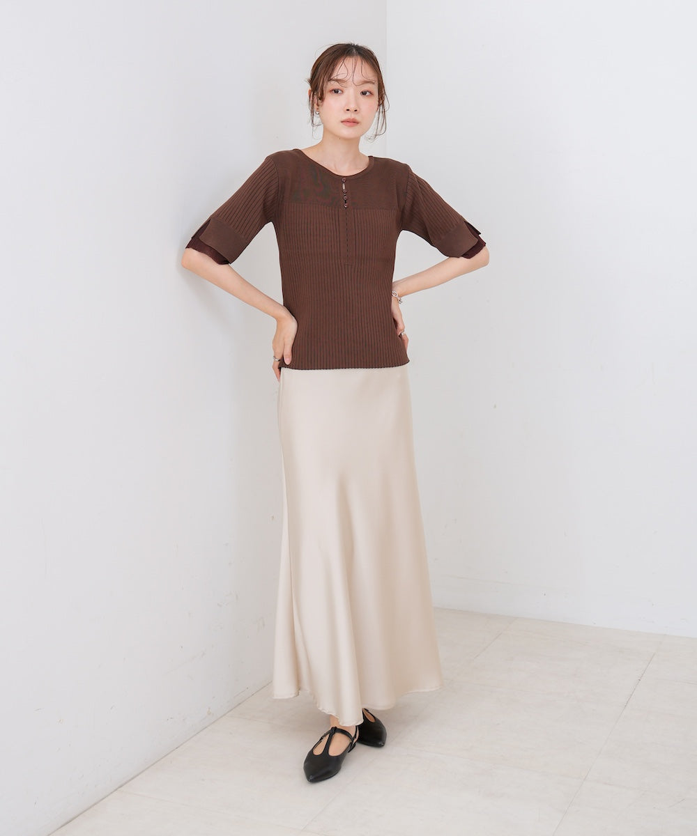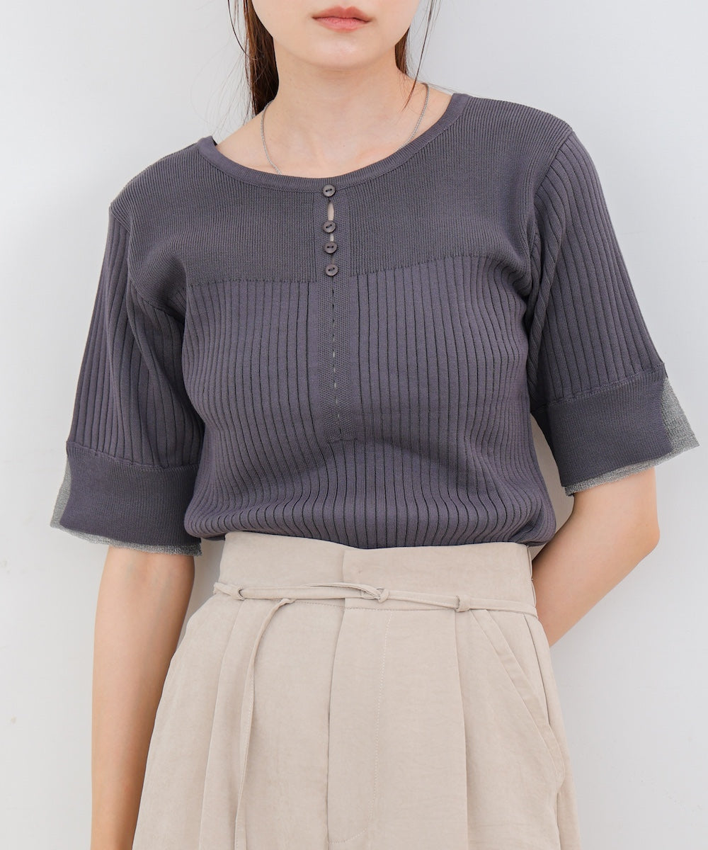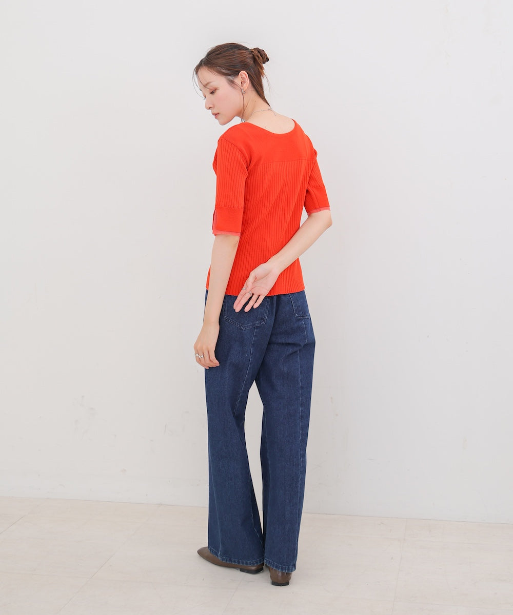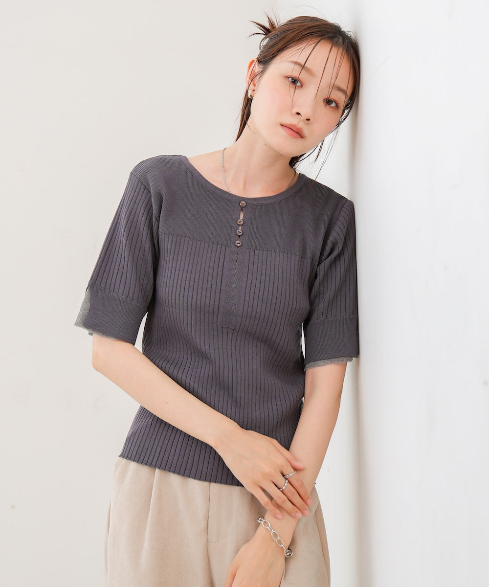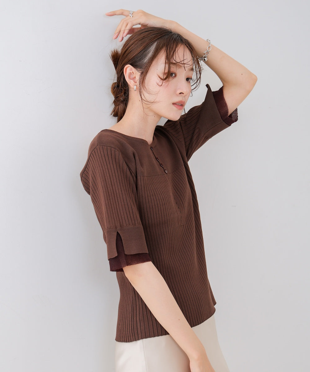 【選べるネック】シアー使いリブニットトップス