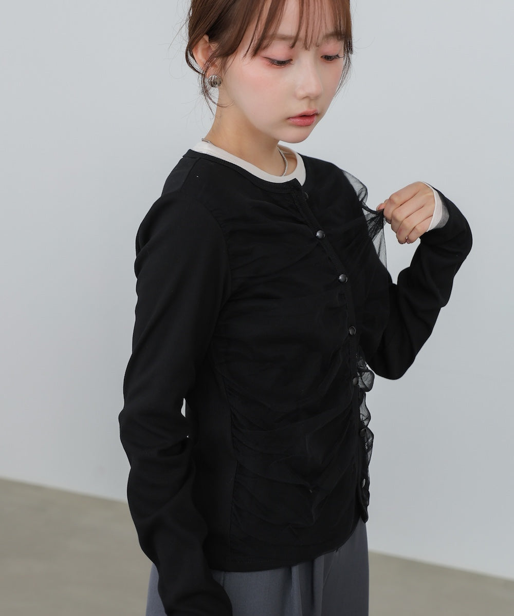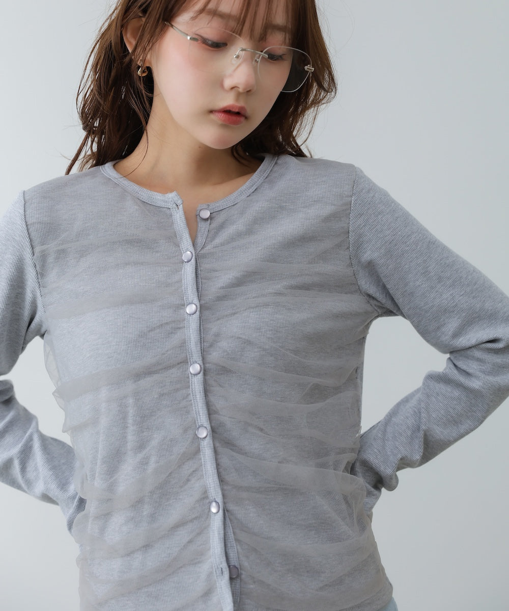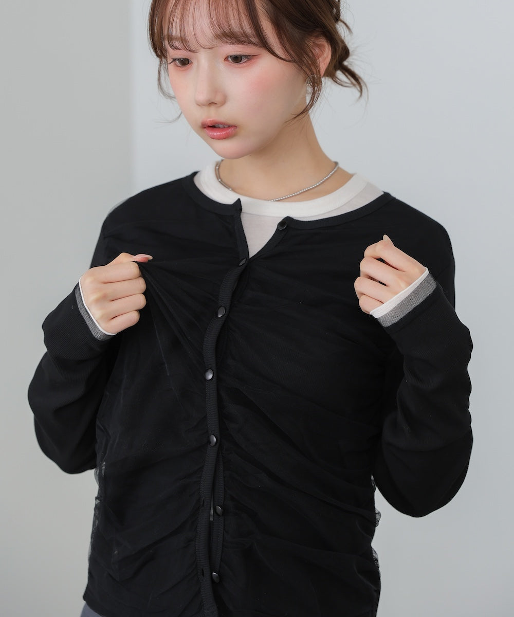 チュールギャザーカーディガン