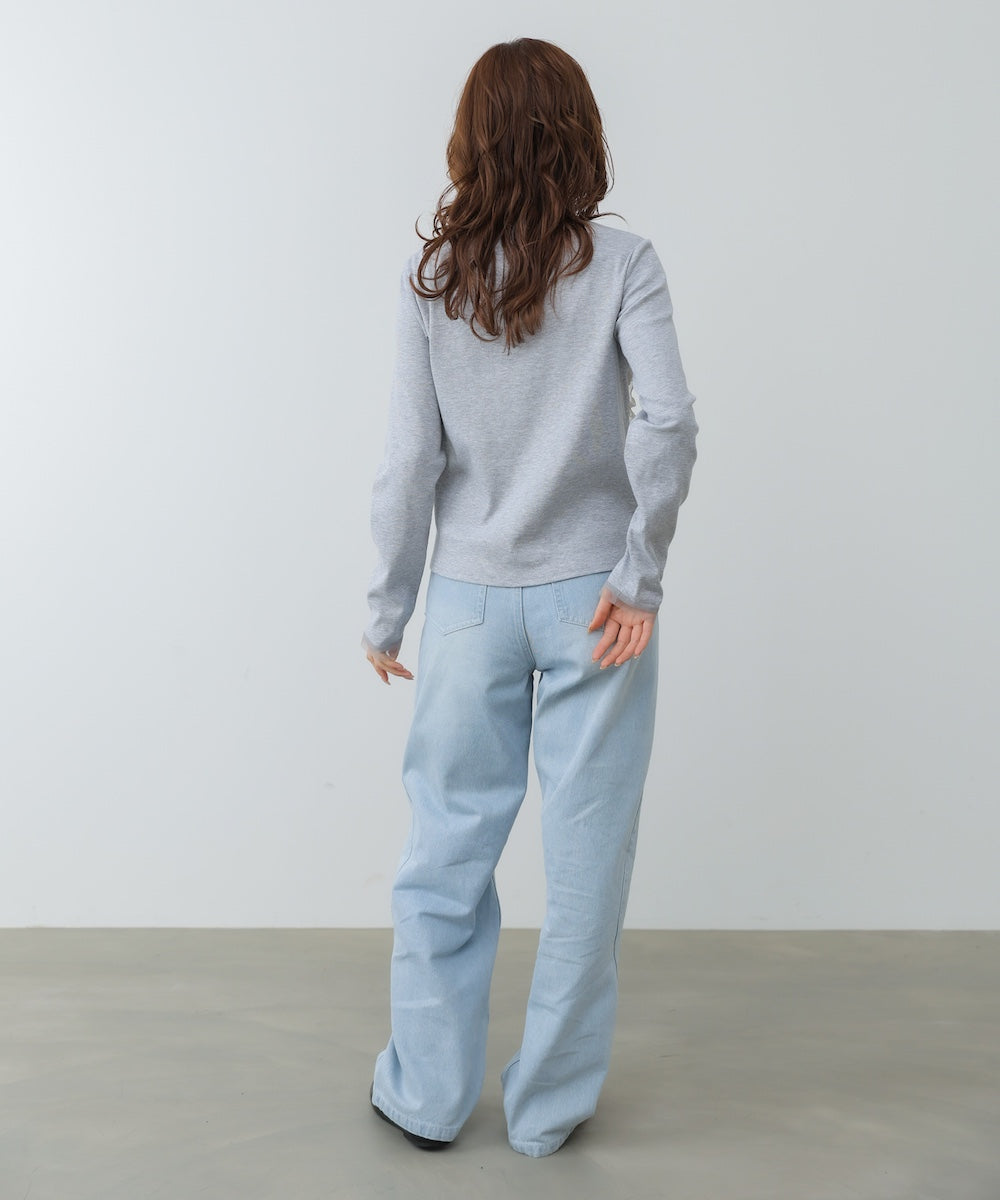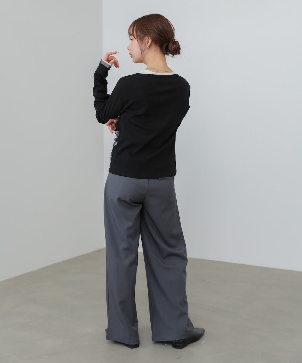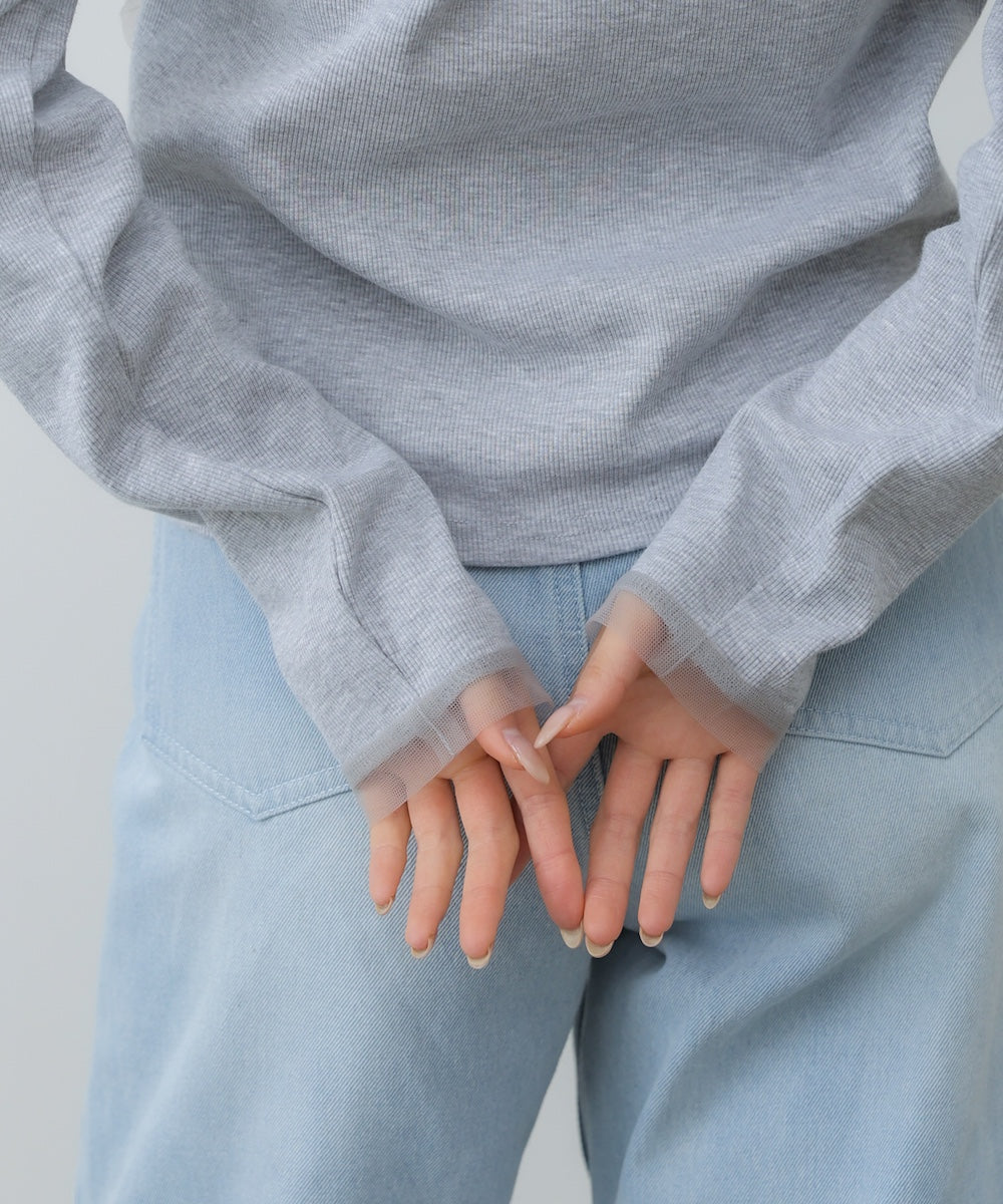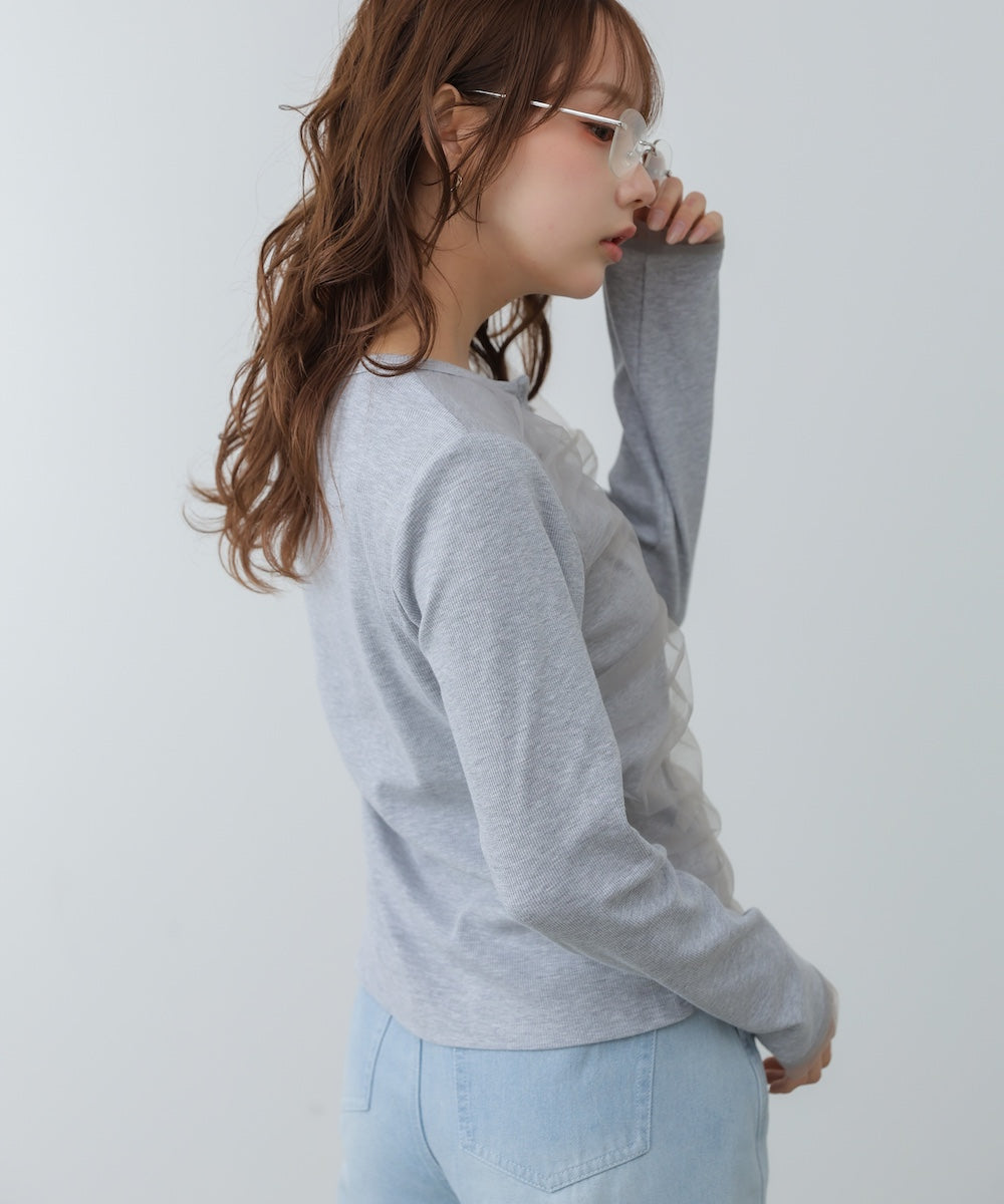 【選べるネック】チュールレイヤードリブニット
