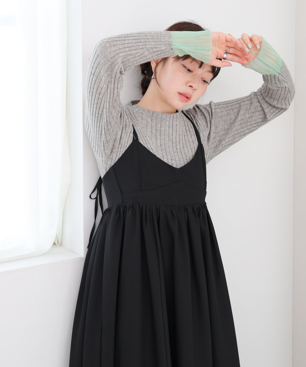 【S・Mサイズ展開】前後2WAYニットカーディガン+ニットキャミワンピース